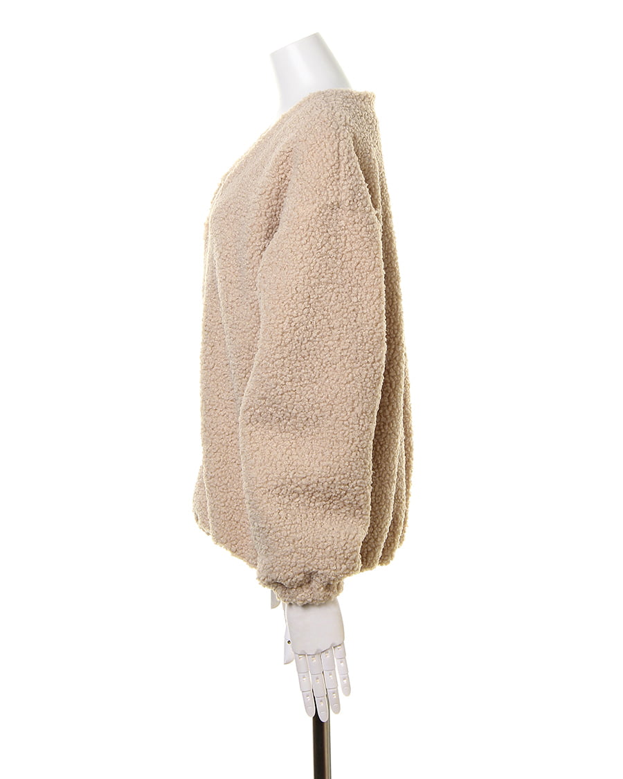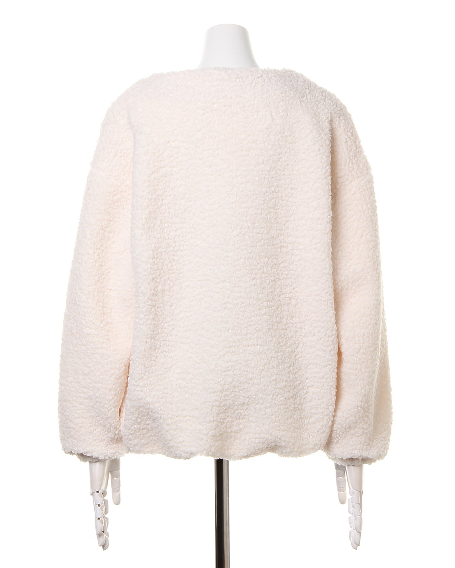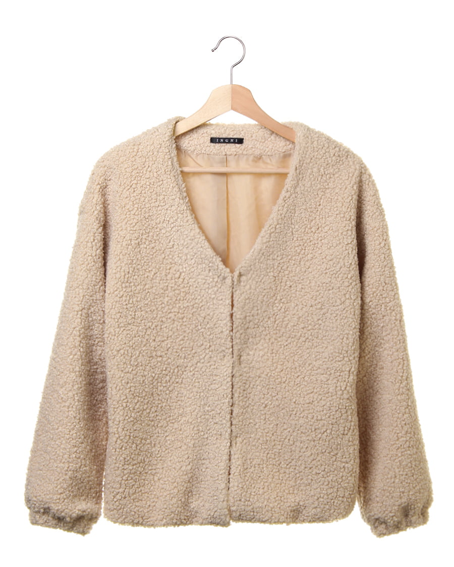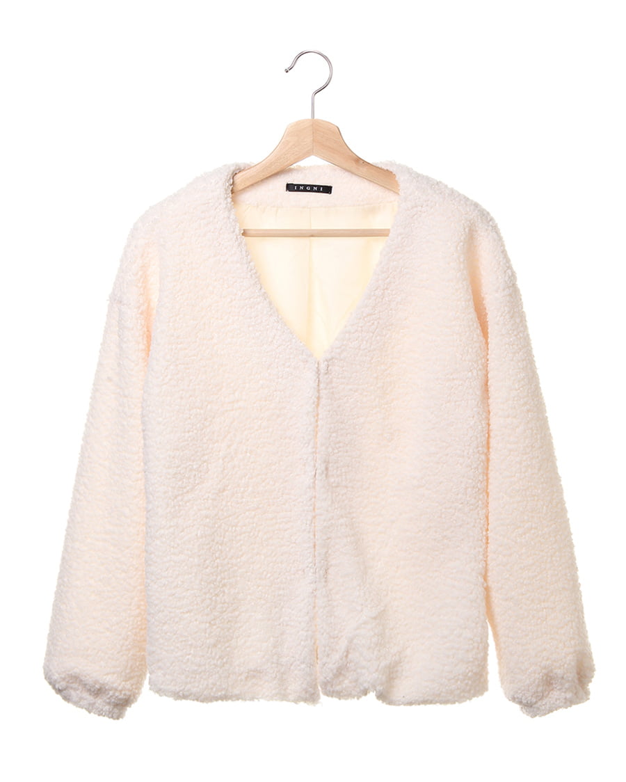 思わず触りたくなるような、ふわもこのボア素材のカーデ。見た目も暖かく、シーズンムードをあおる主役級アイテム。シンプルなコーデにプラスすれば、旬のコーデにスタイルアップします。コンパクトに設定した丈感は、ボリュームあるボトムスとも好バランスに。ボタンレスでフックタイプのフロントも魅力的。滑らかな裏地付きなのも魅力的です。