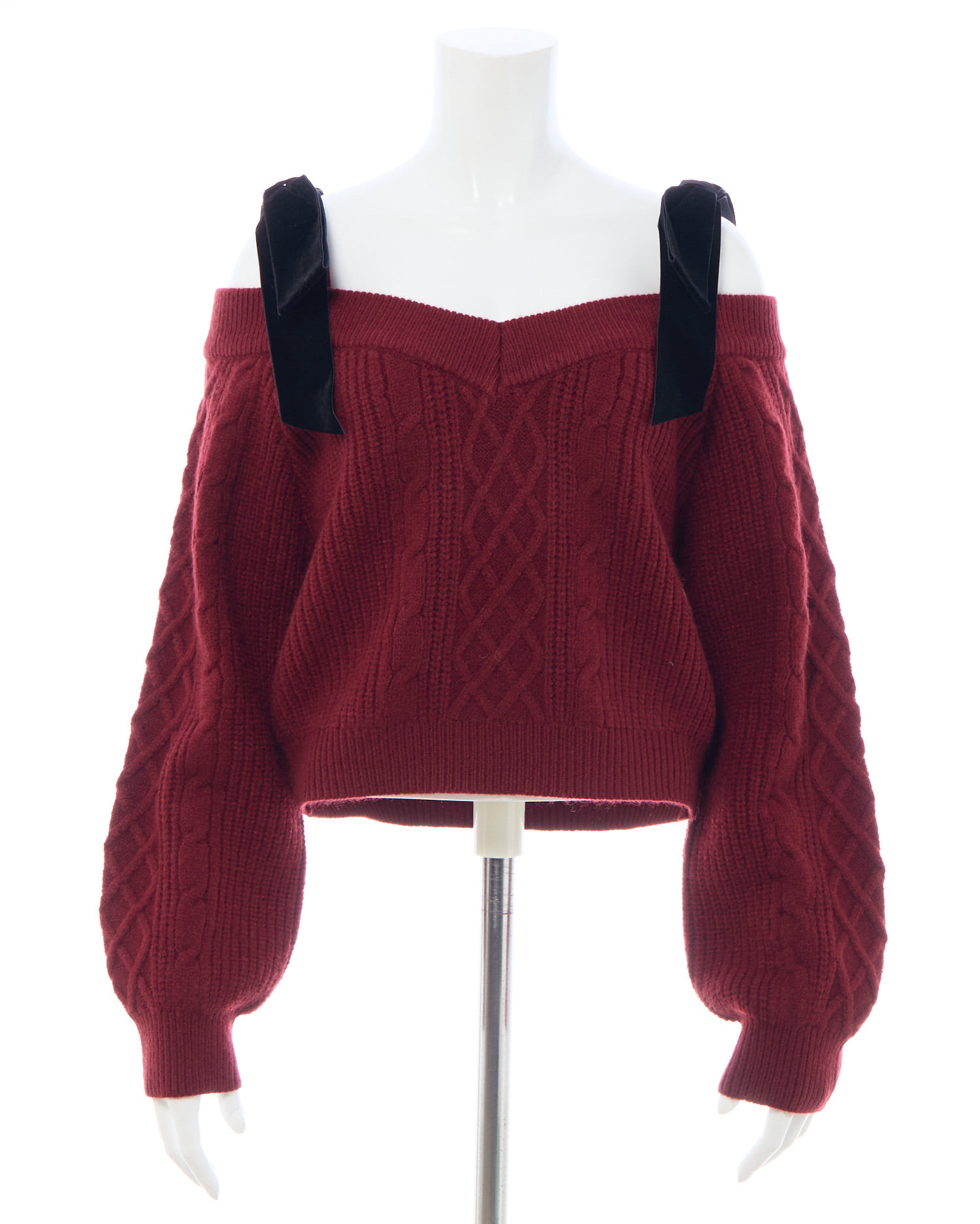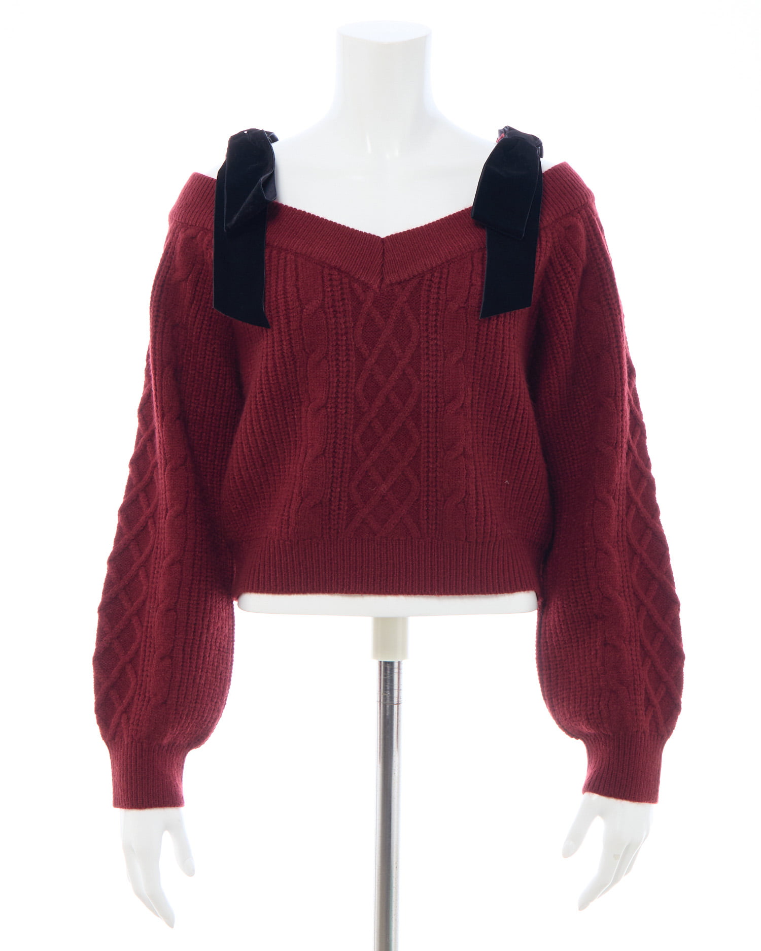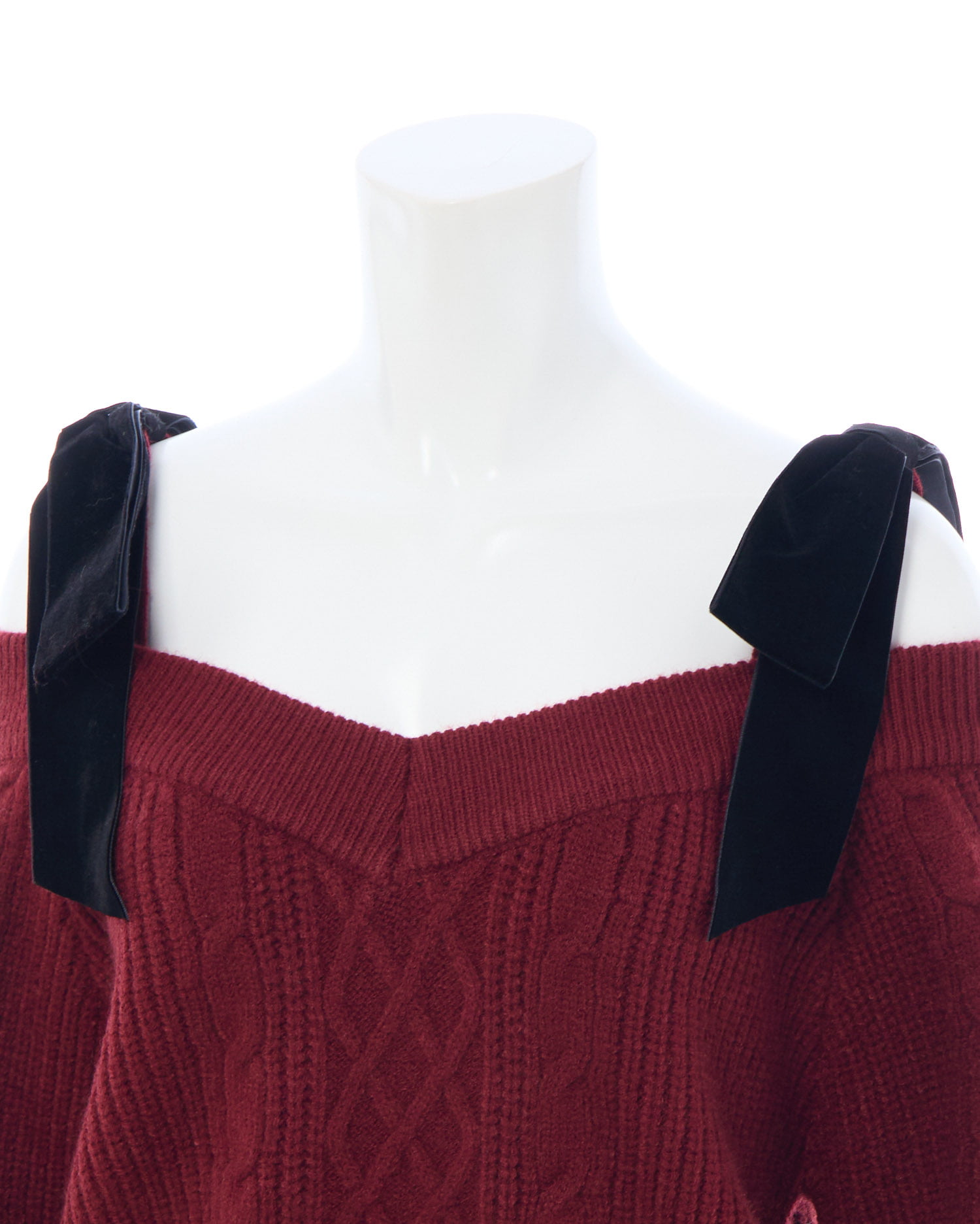 【ベロアリボン×ケーブルオフショル!この冬イチ押しあざとニット♡】