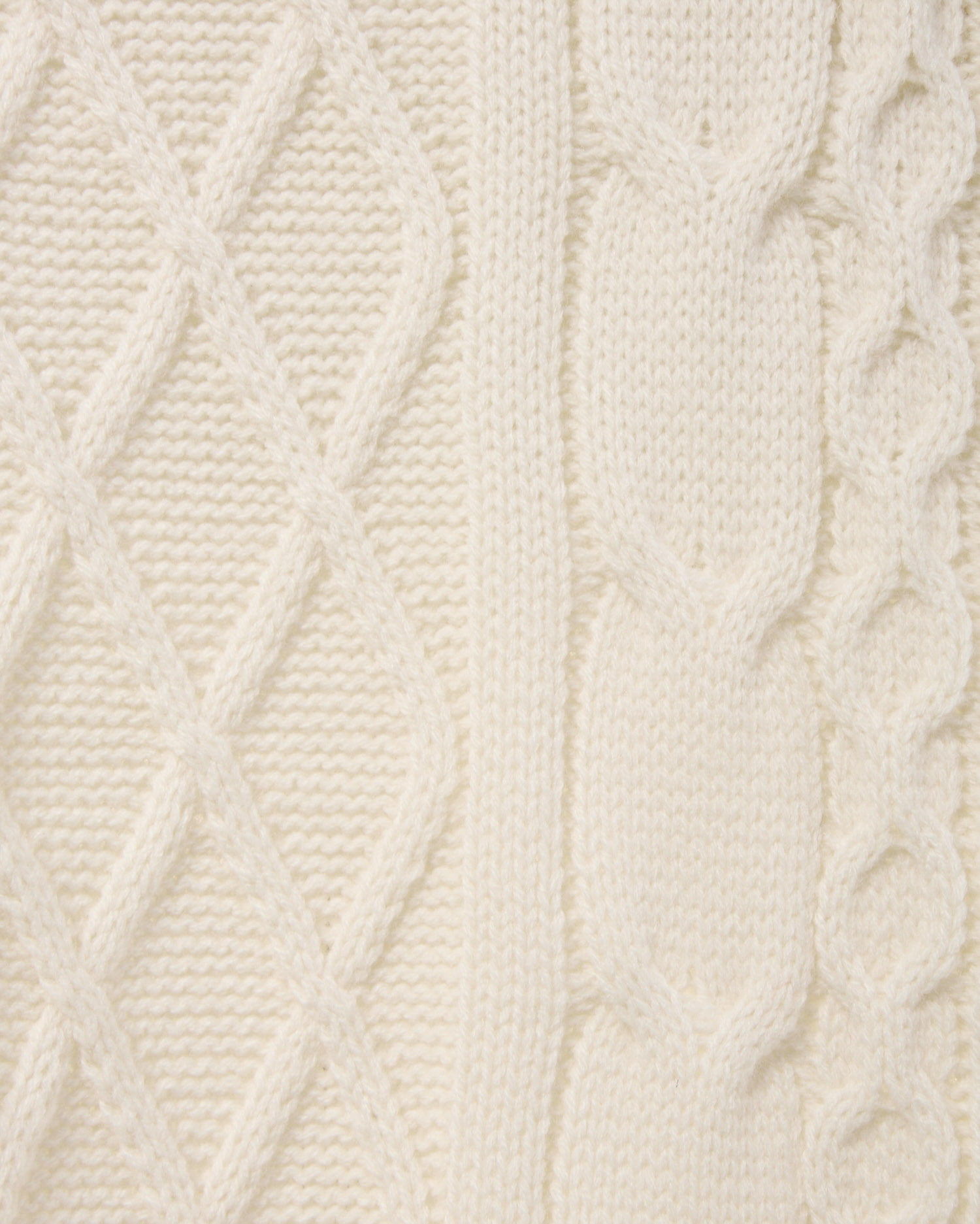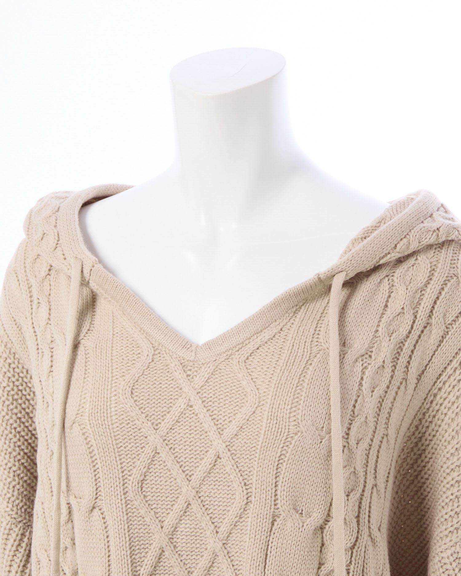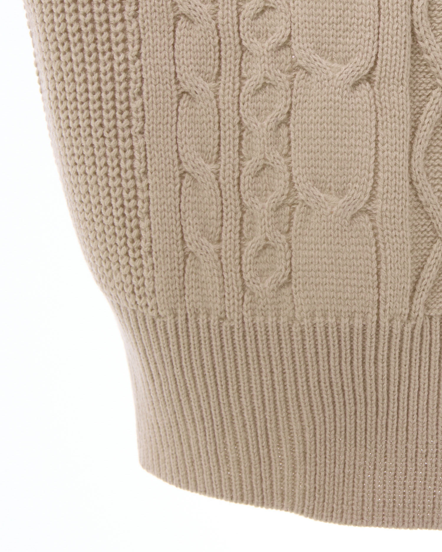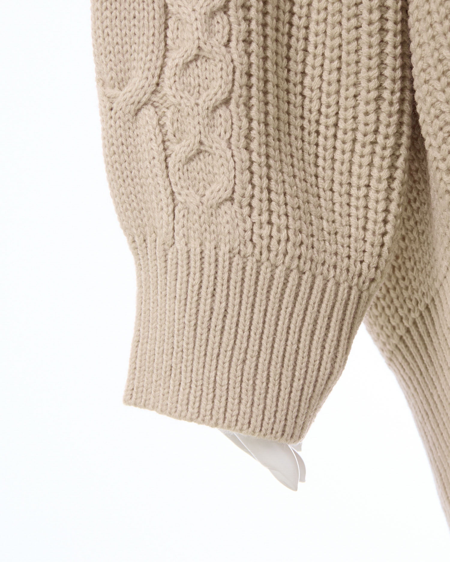 シンプルながらも存在感のあるケーブル編みが、コーデのアクセントに。
