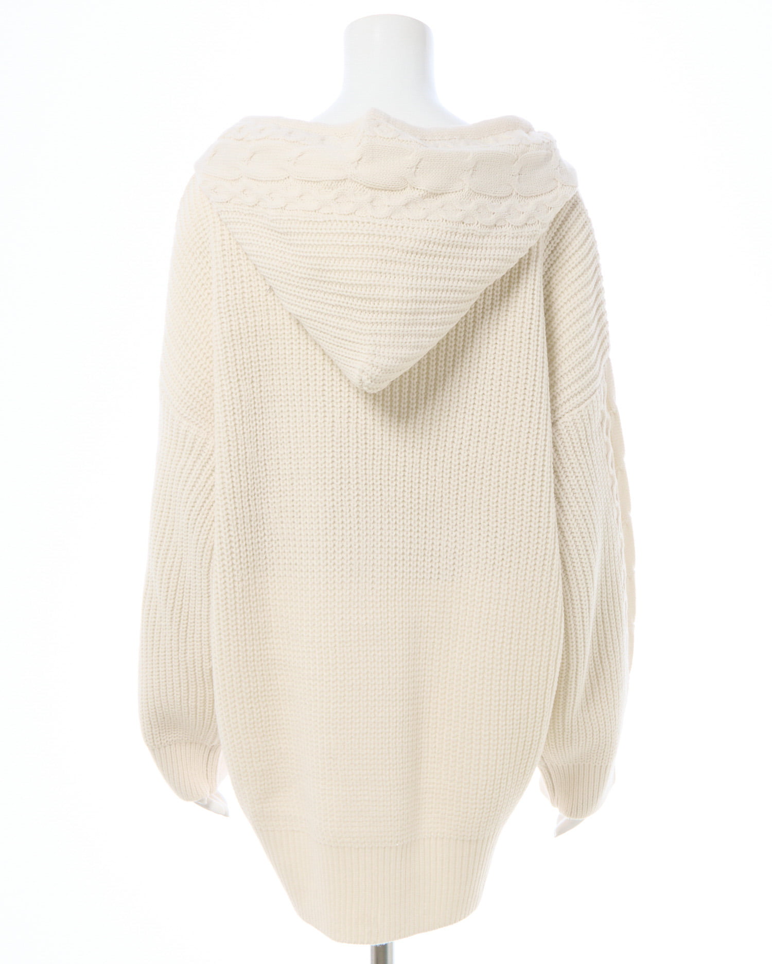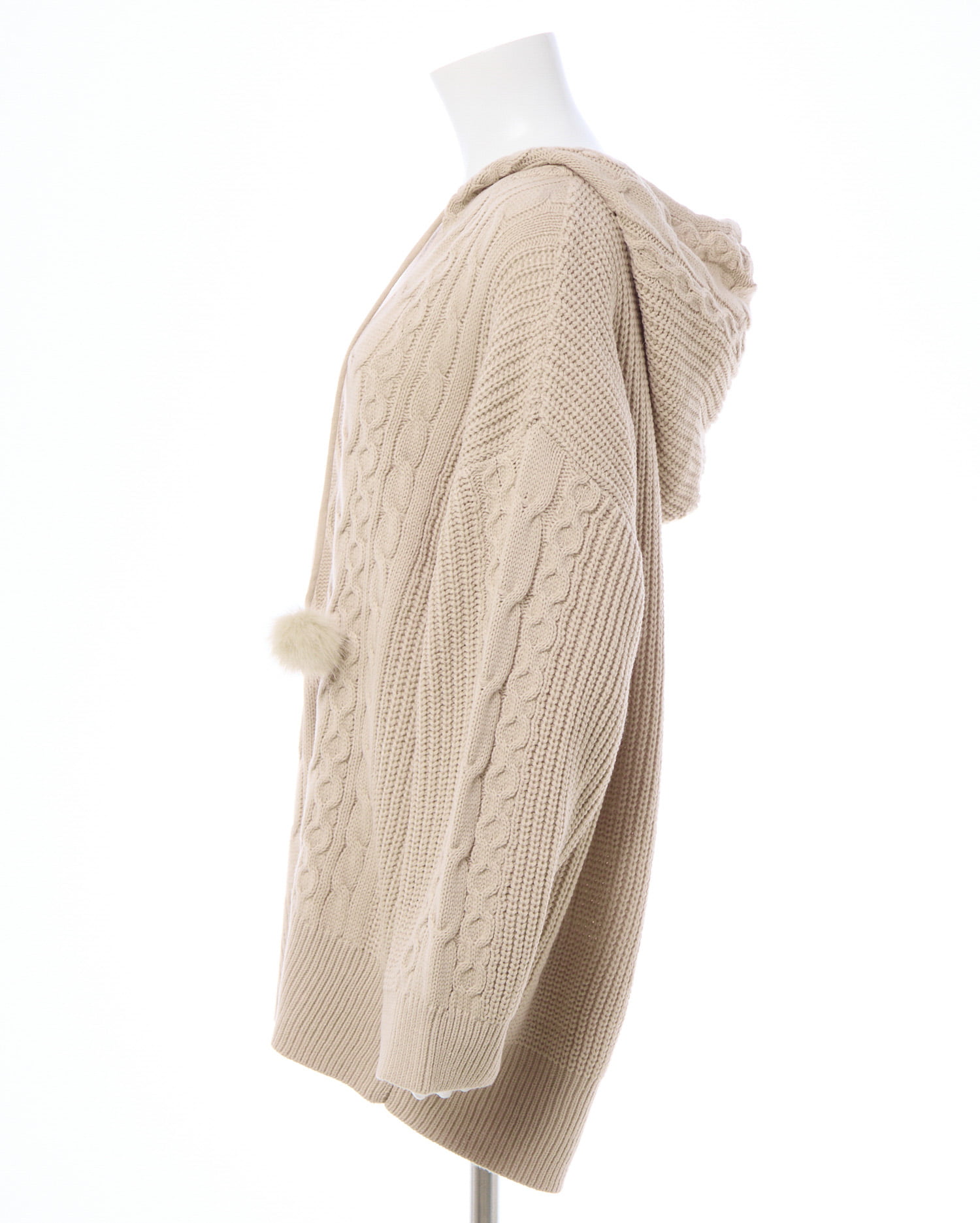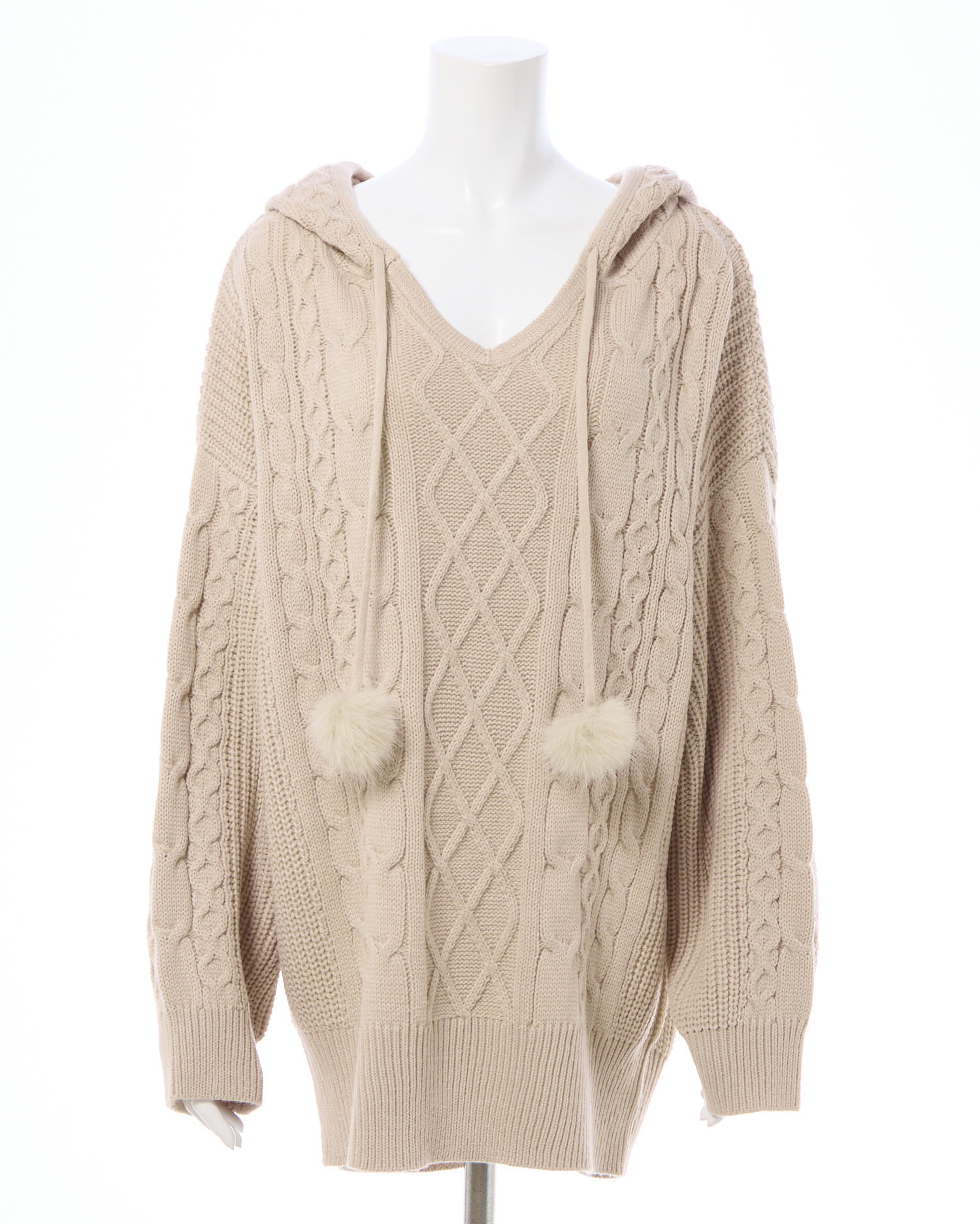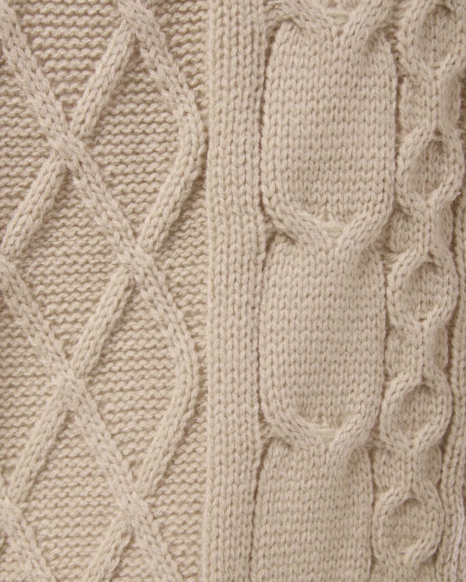 シンプルながらも存在感のあるケーブル編みが、コーデのアクセントに。
