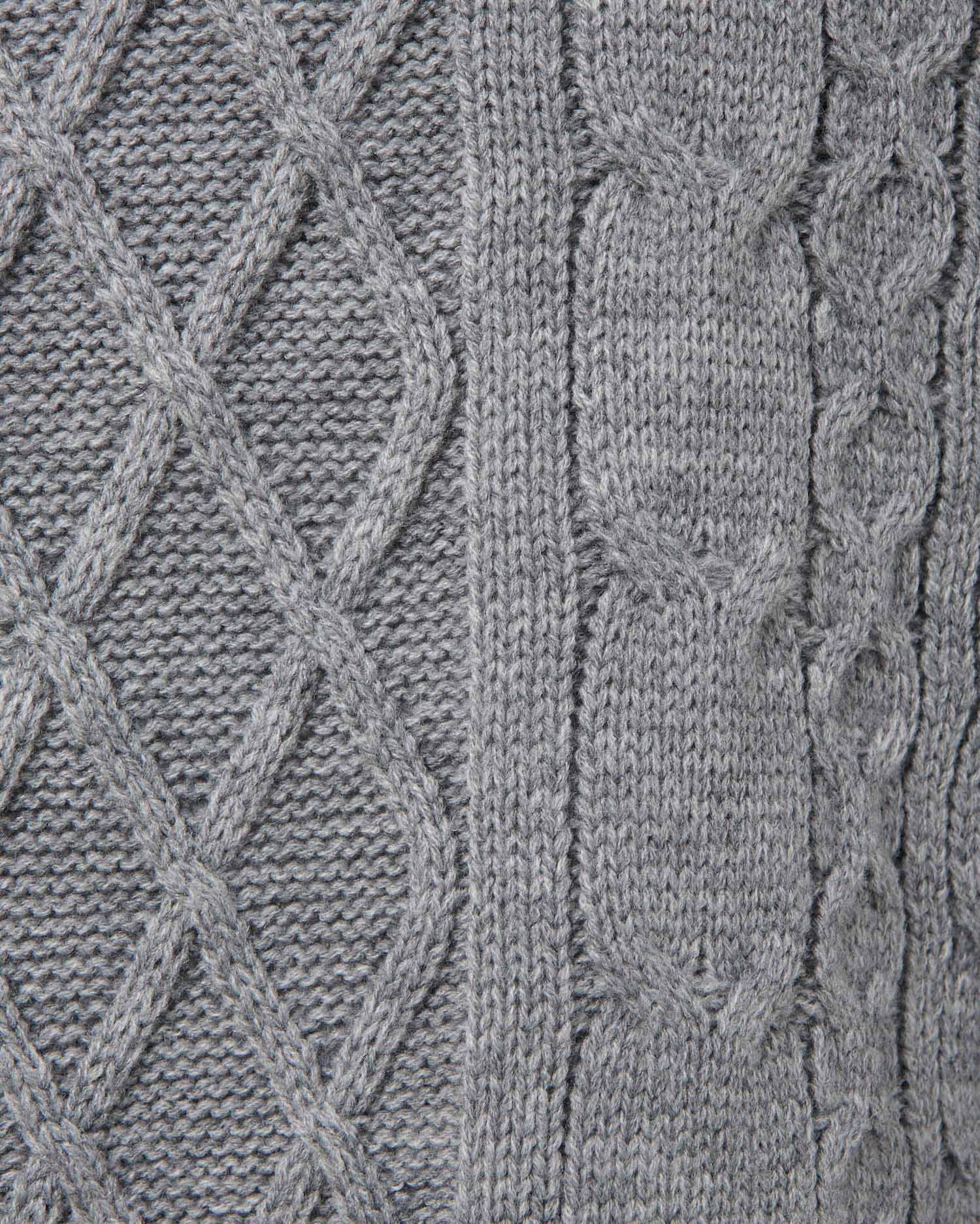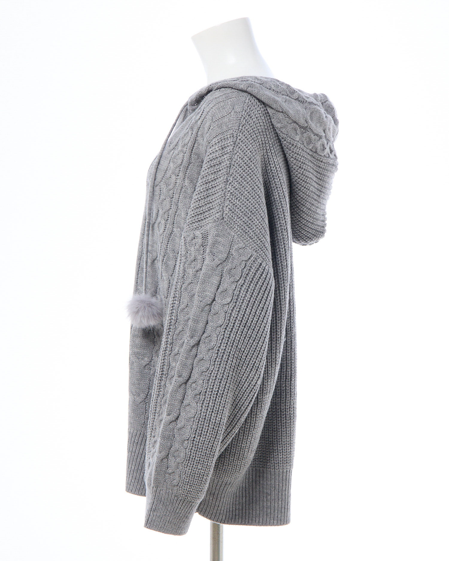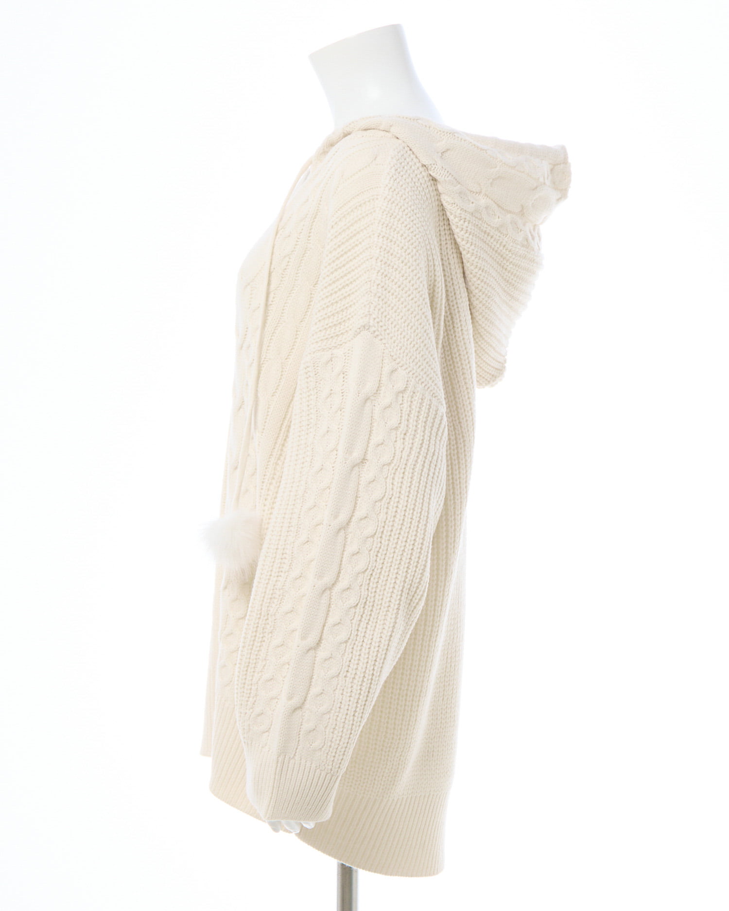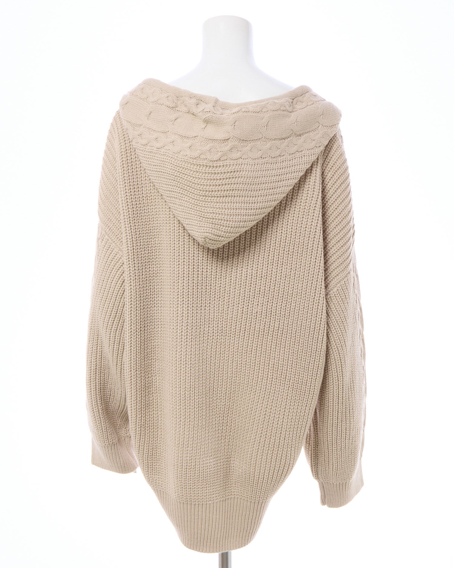 シンプルながらも存在感のあるケーブル編みが、コーデのアクセントに。