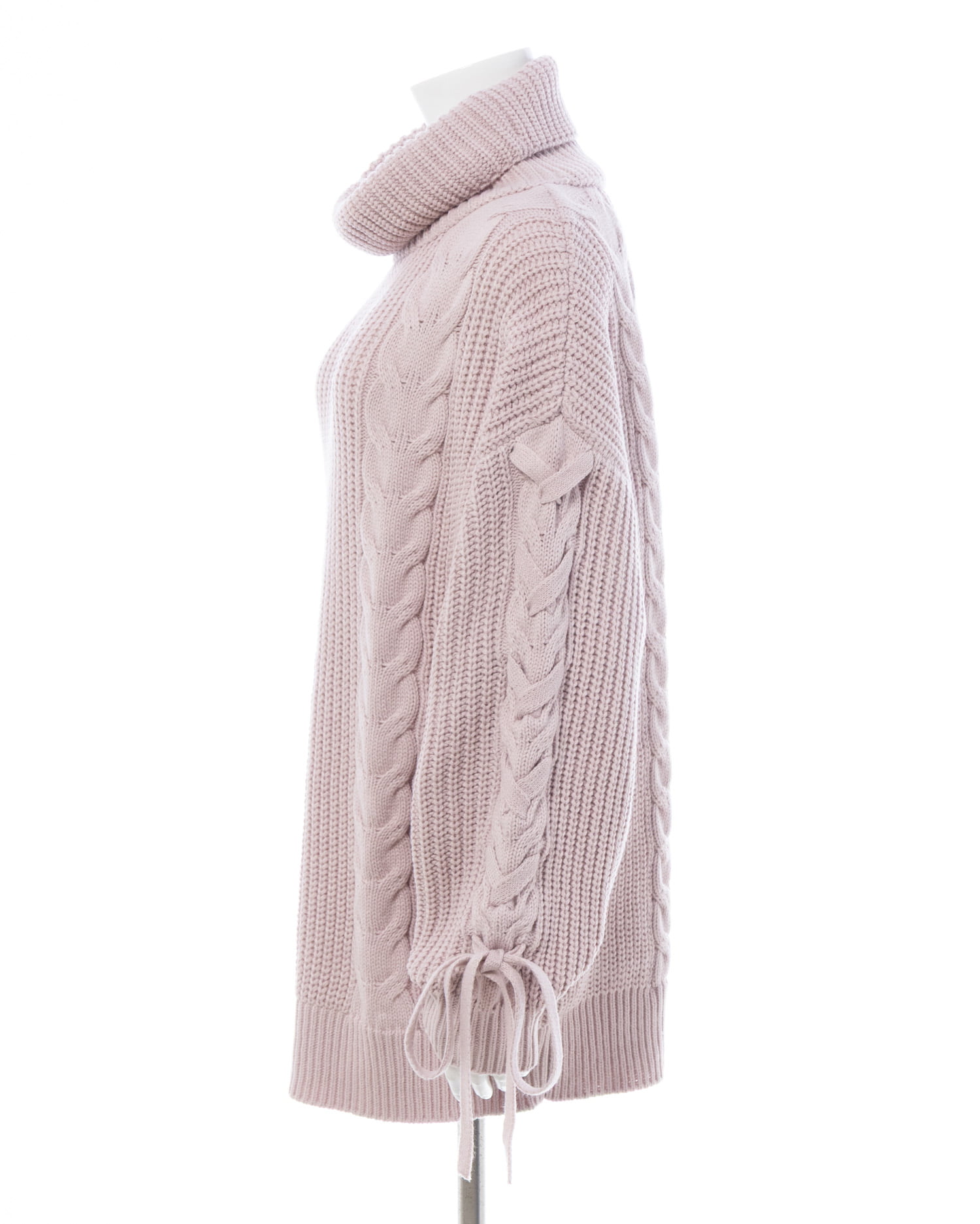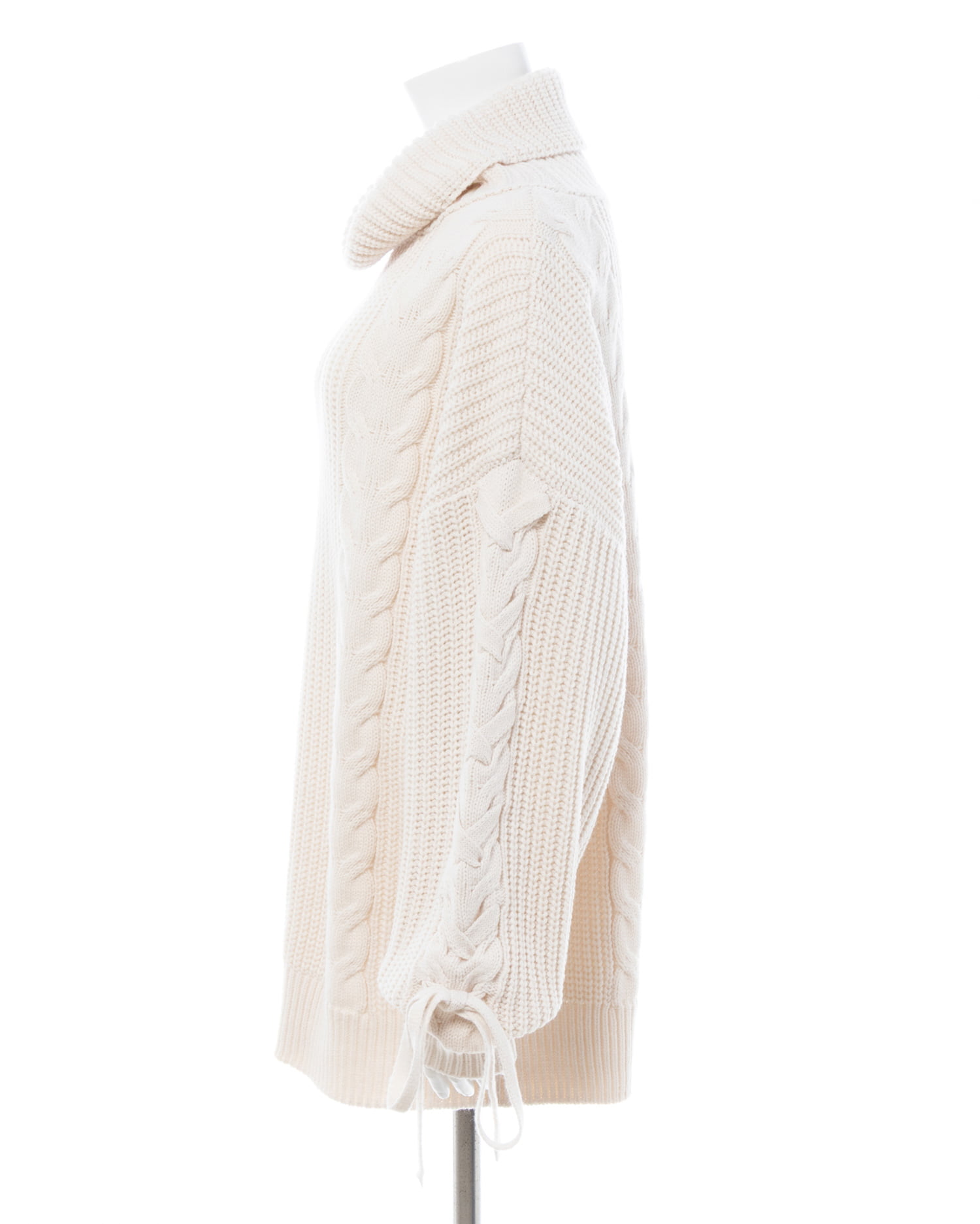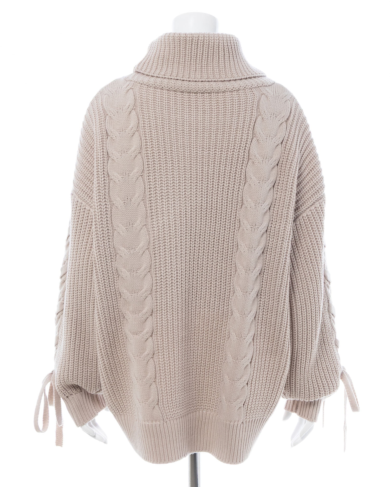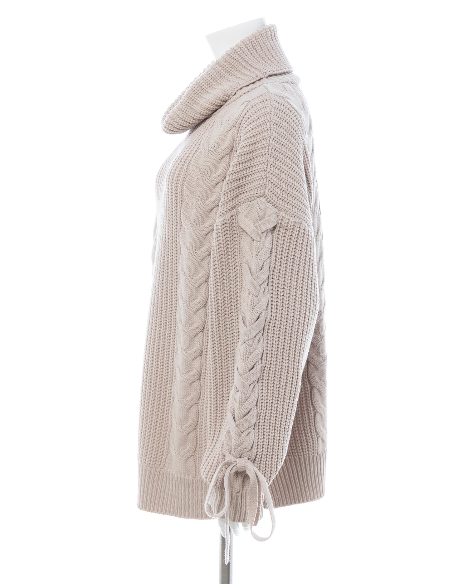 ざっくりとした編み目に袖のケーブル柄がアクセントのチュニックニット。