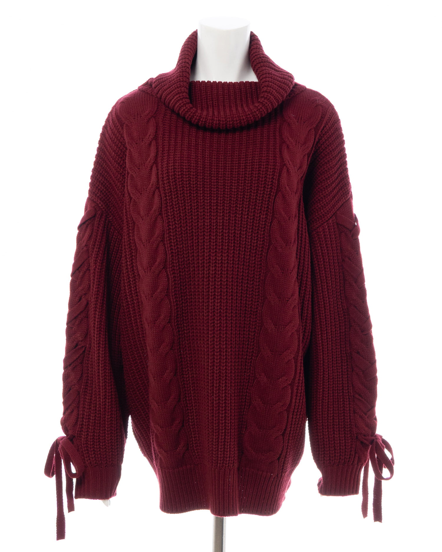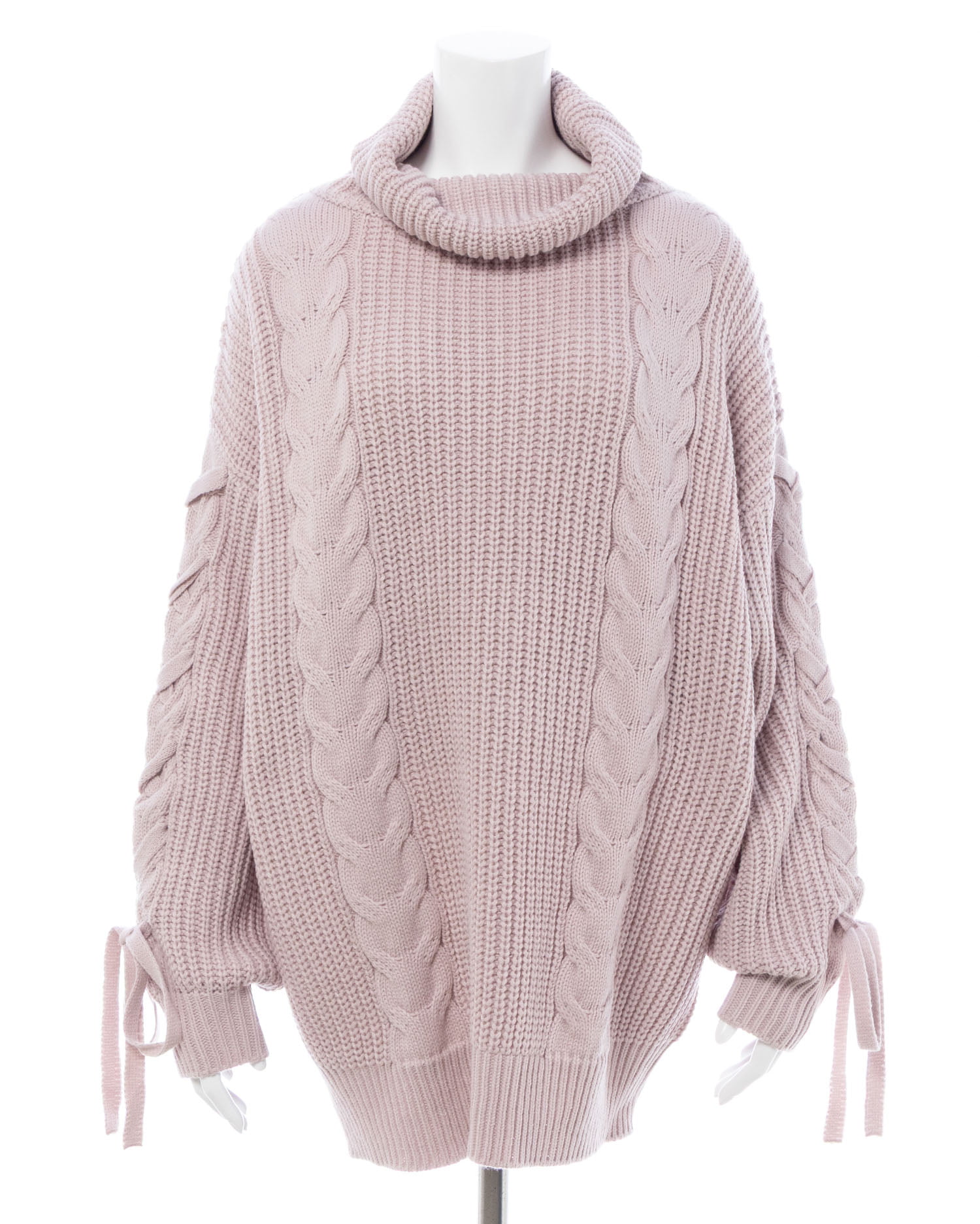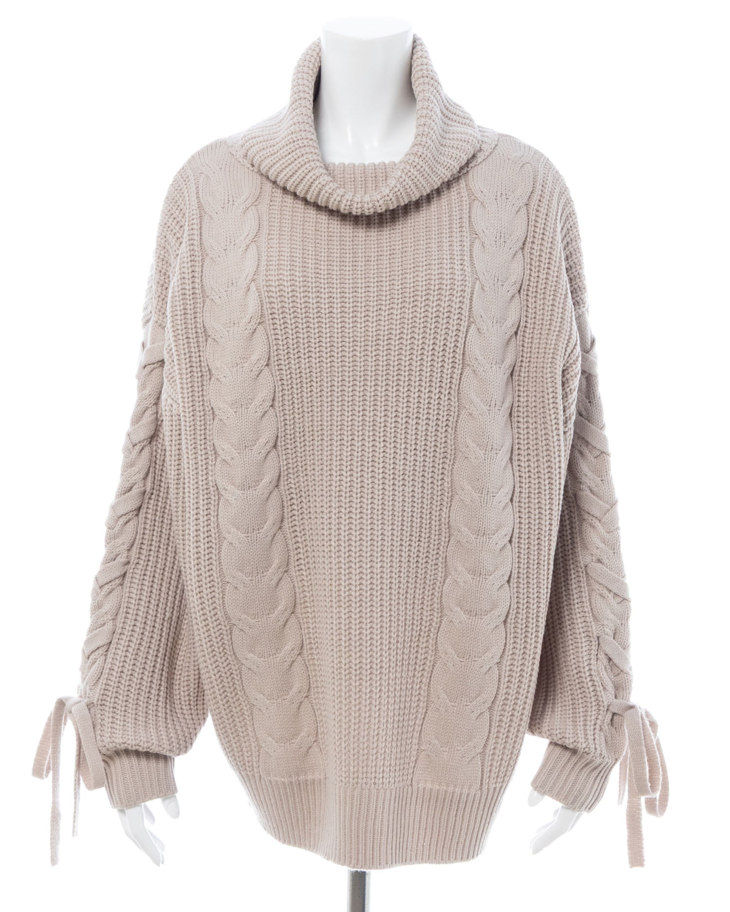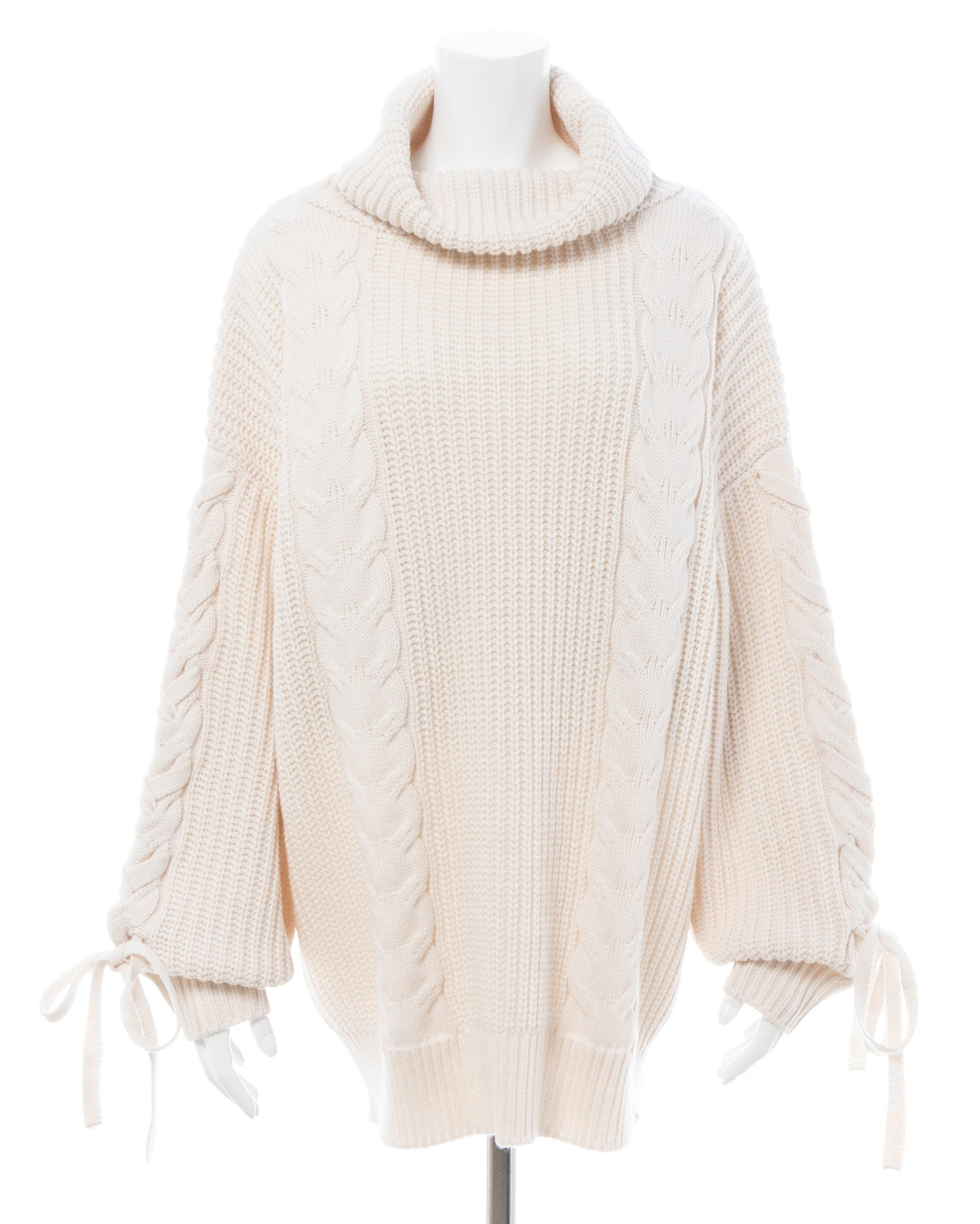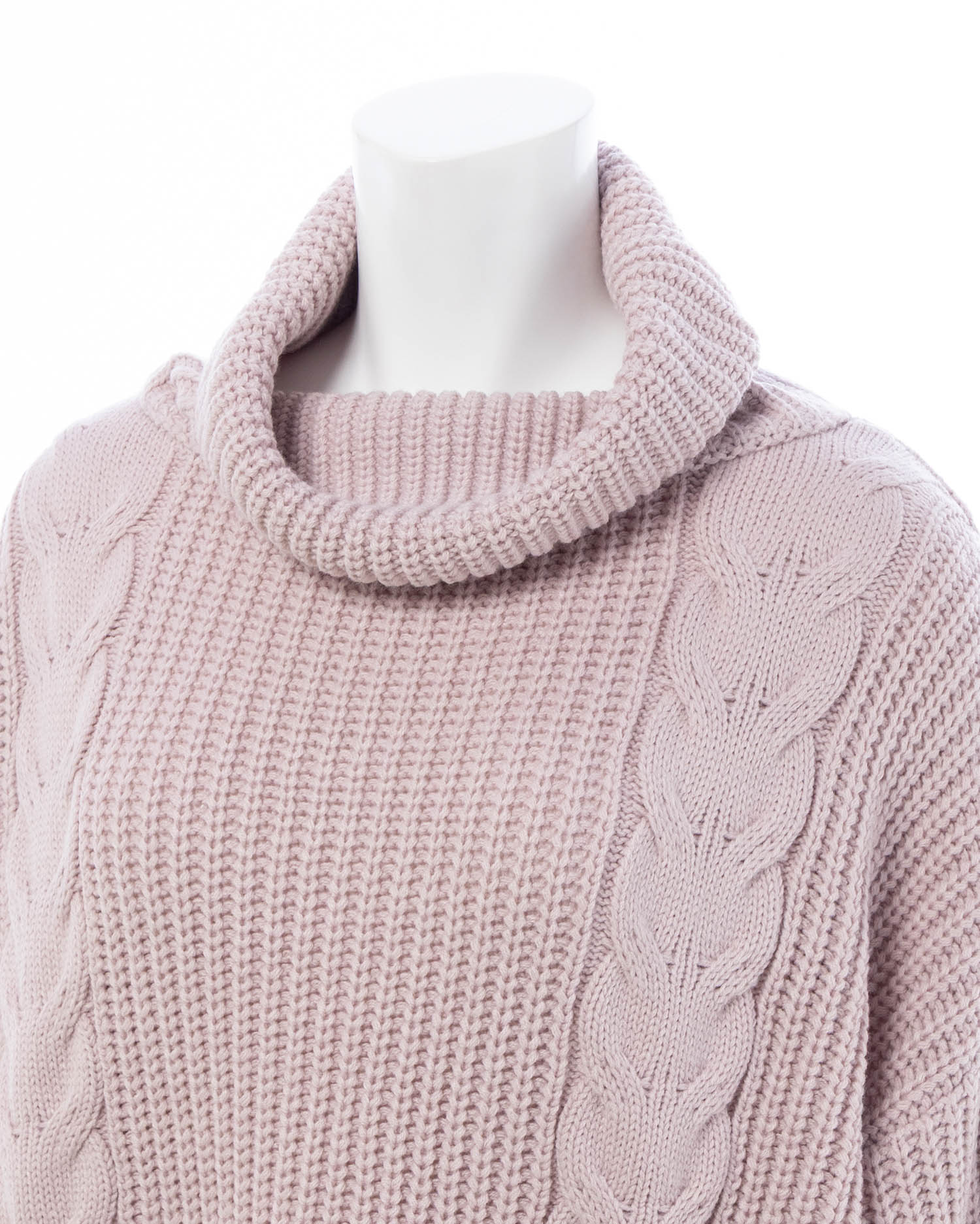 ざっくりとした編み目に袖のケーブル柄がアクセントのチュニックニット。