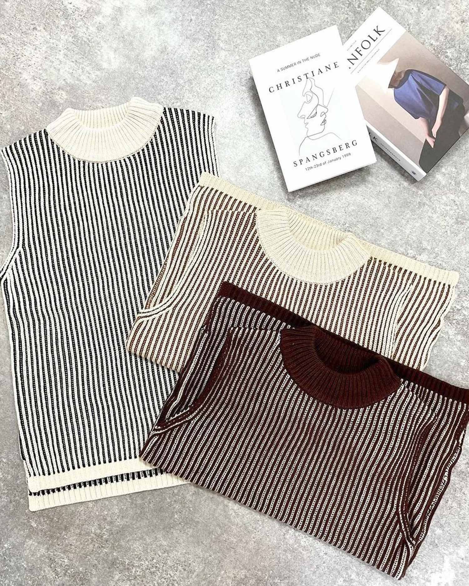 レトロなストライプがシンプルコーデのアクセントにぴったりです。