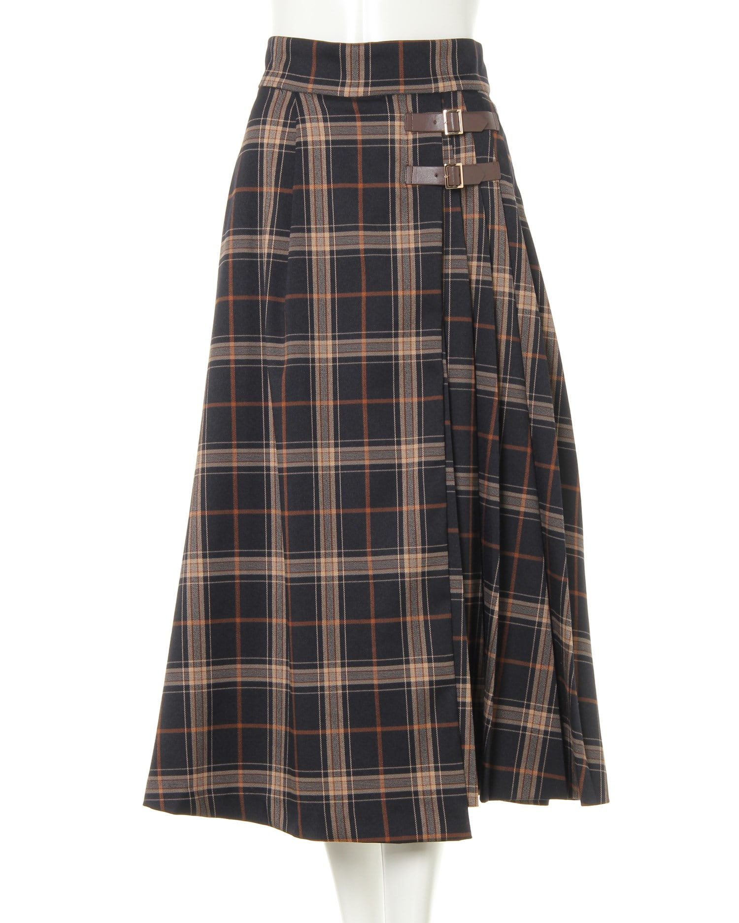 ラメモックネックニットとサイドベルトチェック柄ミディ/スカートのSET☆