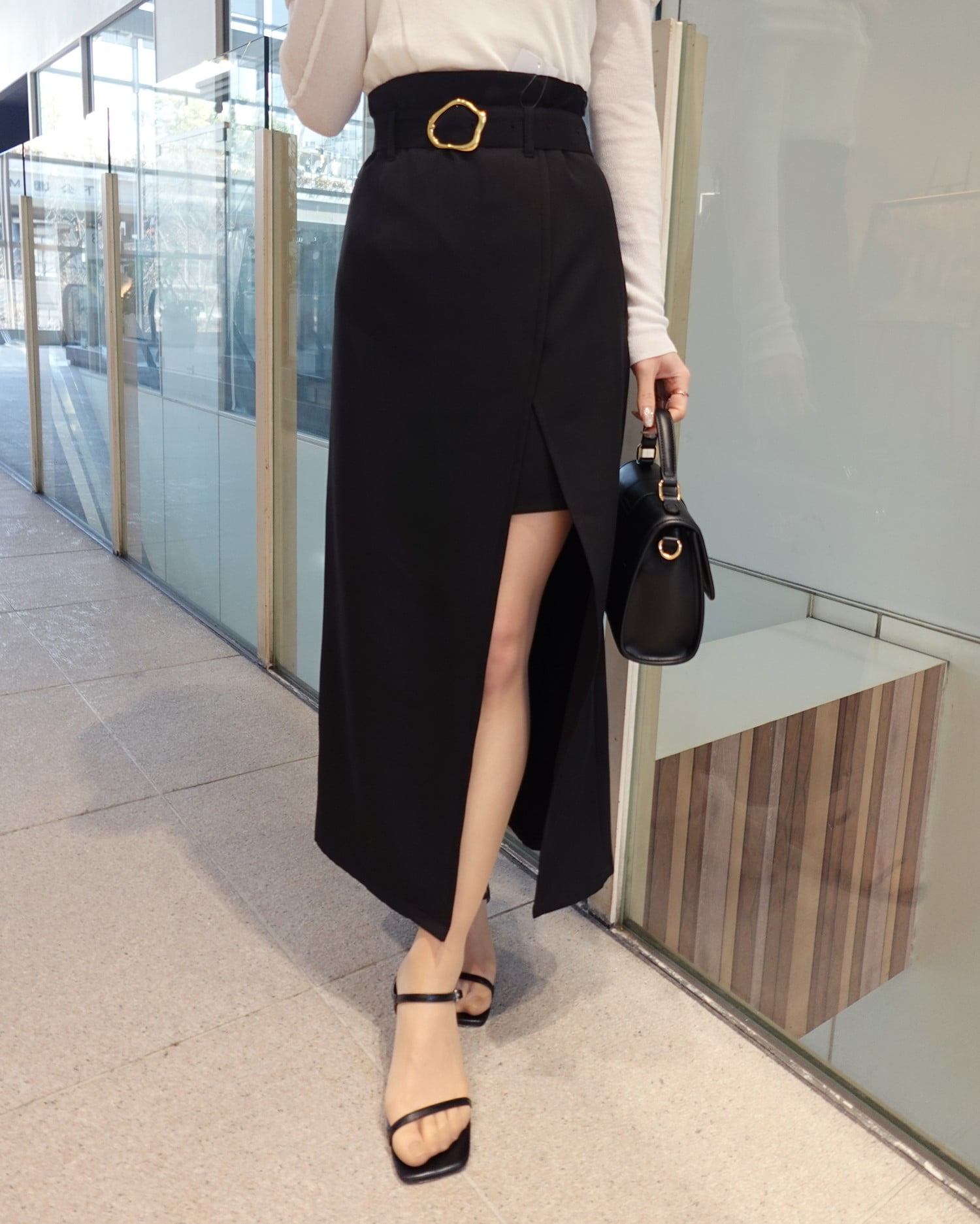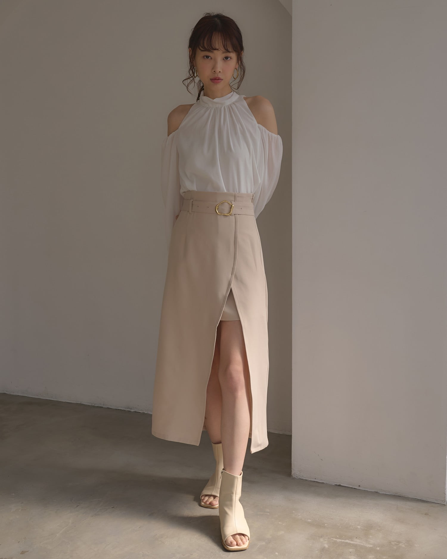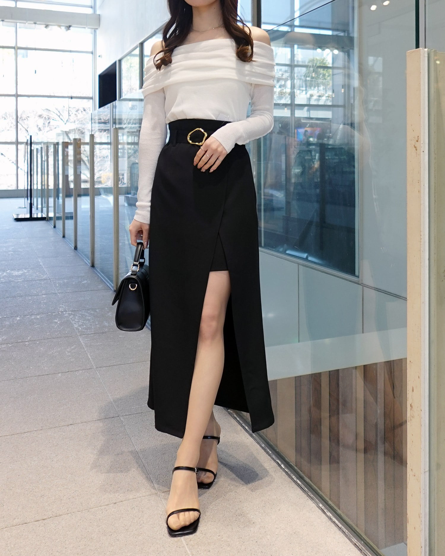脚長効果抜群のハイウエストデザインは