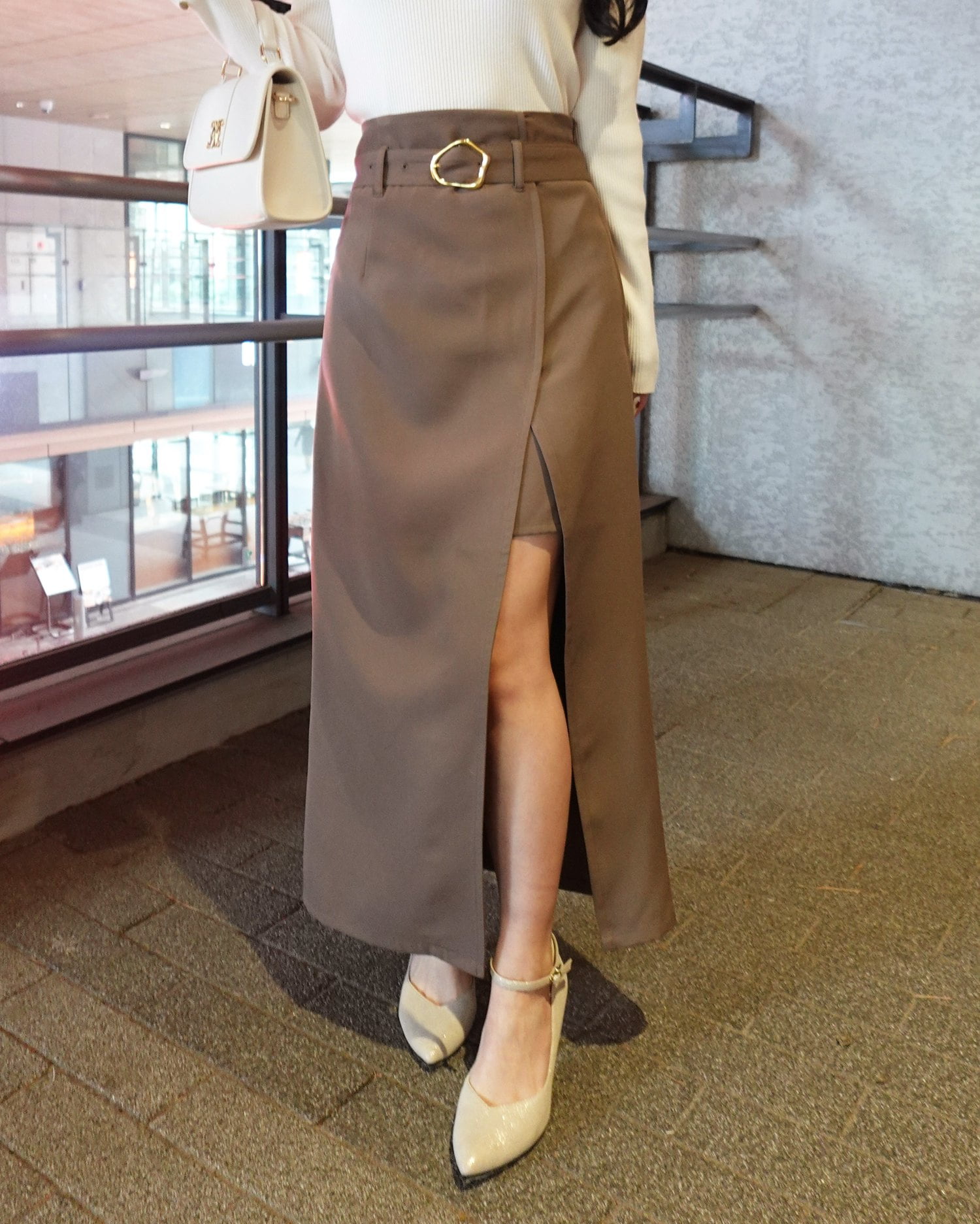 縦長のIラインでスタイルアップを狙えるロングスカート。