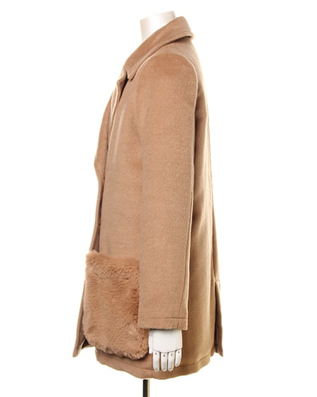 トラッドな雰囲気のPコートは、長く愛用できるベーシックなデザインが◎。かっちりめのフォルムに、ポケットのファーをアクセントにした1枚です。裏地はキルティングになっていて、着易いのもポイント。パンツにもスカートにも合わせやすい丈感で、今すぐワードローブに追加決定です。
