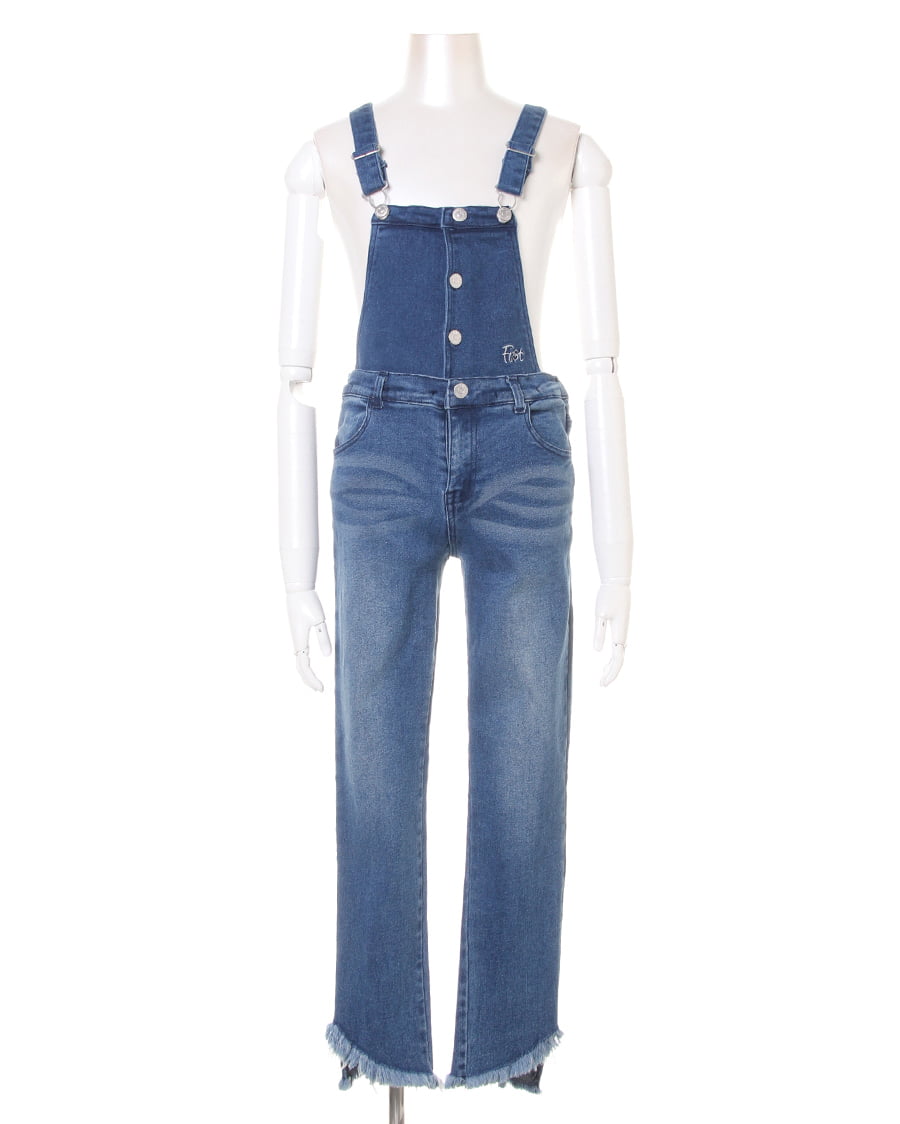 スキニーデニムをサロペットに落とし込んだシルエットが大人っぽいベーシックアイテム。一枚あると着回しに重宝する万能アイテム。前立てを外してパンツとしても使えるのも魅力的。パンツはレッグラインにキレイに沿うスリムタイプで伸縮性も高く着心地抜群です。プレーンなデザインでインナーやアウターを変えれば印象が様変わりするのも嬉しいポイント。