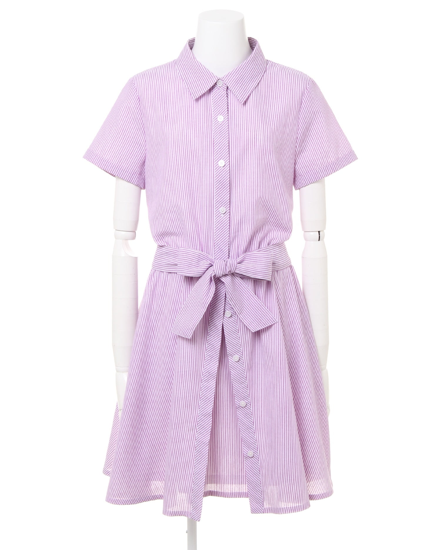 大人っぽく着こなせるシャツワンピースはワードローブに揃えておきたいアイテム。かっちりとしたシャツデザインはオンオフ問わずに着回せます。ウエスト部分のリボンで1枚でもメリハリのある着こなしが可能。バックウエストはゴムになっているので、着心地も快適です。ストライプやギンガムチェックなど、バリエーションも豊富なので自分らしいカラーが見つかります。
