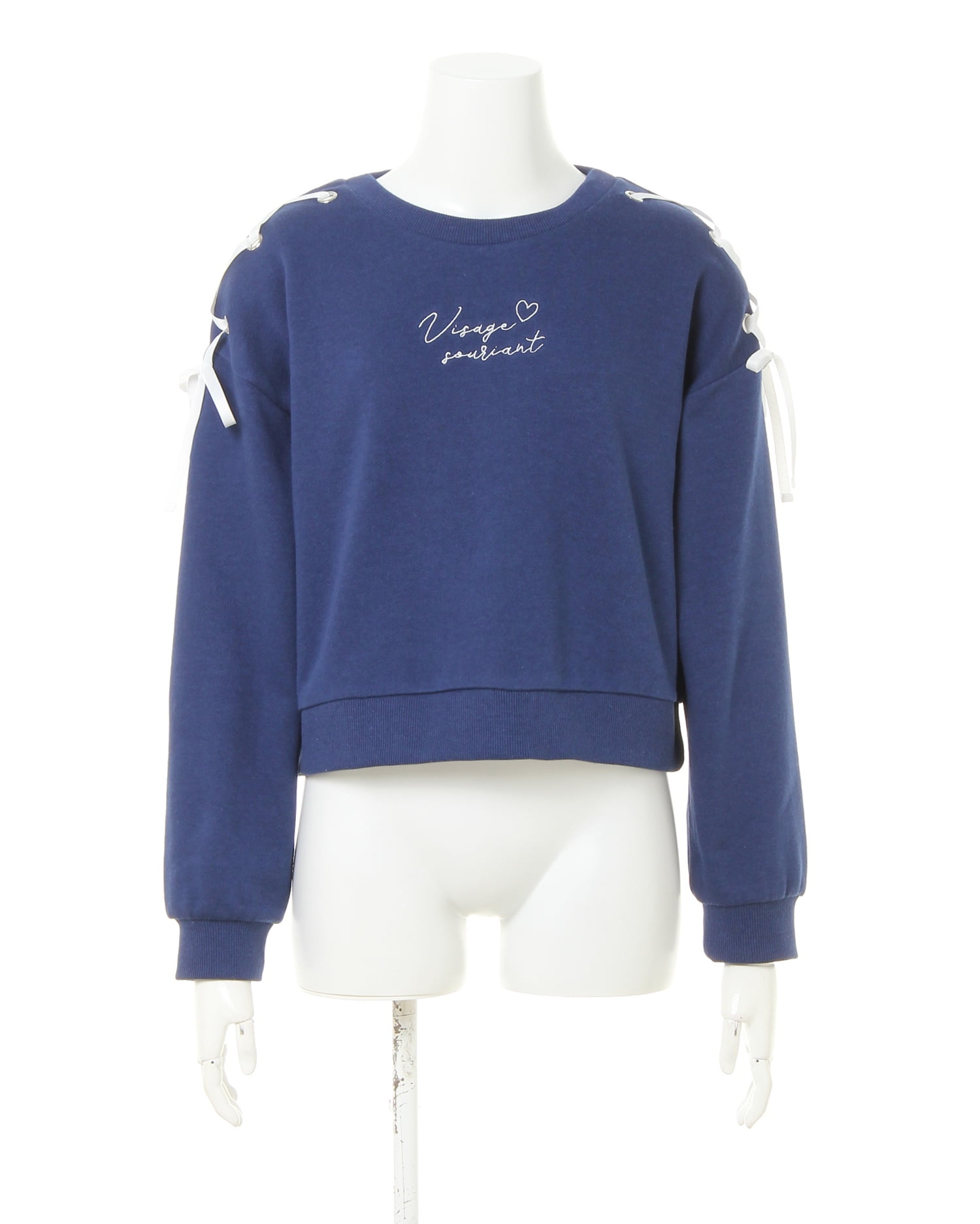 ゆったりめのシルエットで今年らしい着こなしが叶うスウェットトップス。程よい厚みで伸縮性のある生地はシーズン長く活躍するおすすめのアイテムです。ドロップショルダーと短めの裾丈でバランス良く着られるのもポイント。ショルダー部分のレースアップデザインとフロントの刺しゅうロゴがキュートなアクセントになっています。