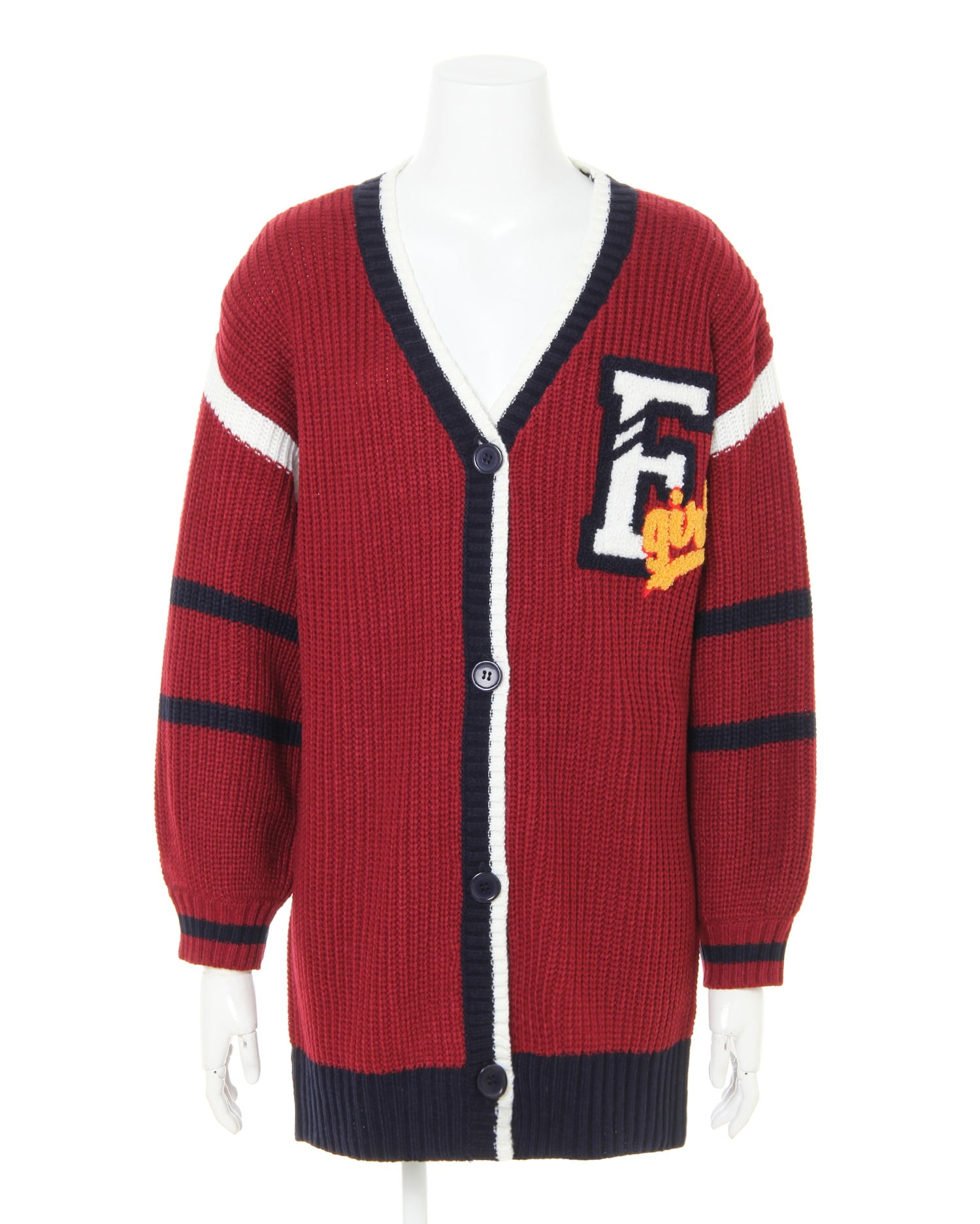 エッジの効いた配色ラインで存在感のあるカーディガンは季節の変わり目に活躍します。伸縮性のある柔らかな素材で肌馴染みも良く優しい着心地。程よくゆとりのあるシルエットでリラックス感漂うこなれた着こなしに導きます。大きく開いたVネックが顔周りをすっきりみせ小顔効果も期待。胸元にはロゴが浮き出ているような風合いが特徴のサガラ刺しゅうをオン。レトロなアクセントになっています。