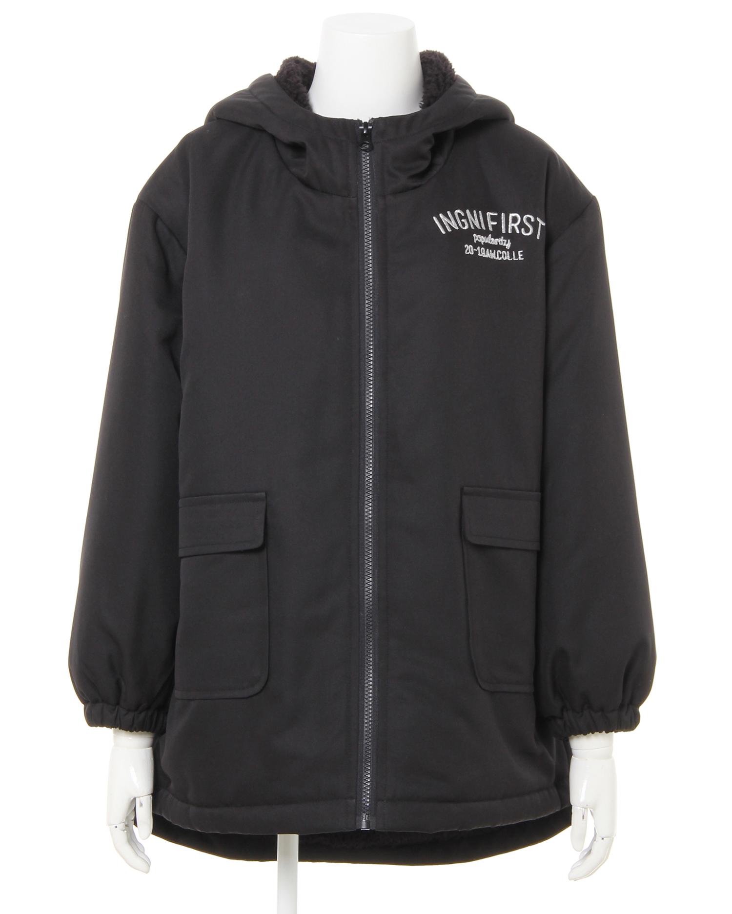 季節の変わり目からロングシーズン活躍するコートは大きなフラップポケットが今年らしい1枚。シャカシャカとした光沢のある素材は汚れがつきにくくお手入れも楽チン、普段使いに重宝します。裏地にもこもこのボアを貼っているので防寒性も抜群。暖かく柔らかな肌触りで着心地も快適です。後ろ下がりのデザインでメリハリのあるシルエットに導きスタイリッシュな雰囲気に。シンプルなワンカラーに胸元の刺しゅうロゴがクラス感をプラスします。