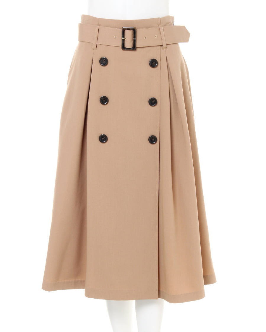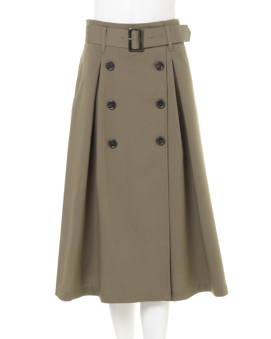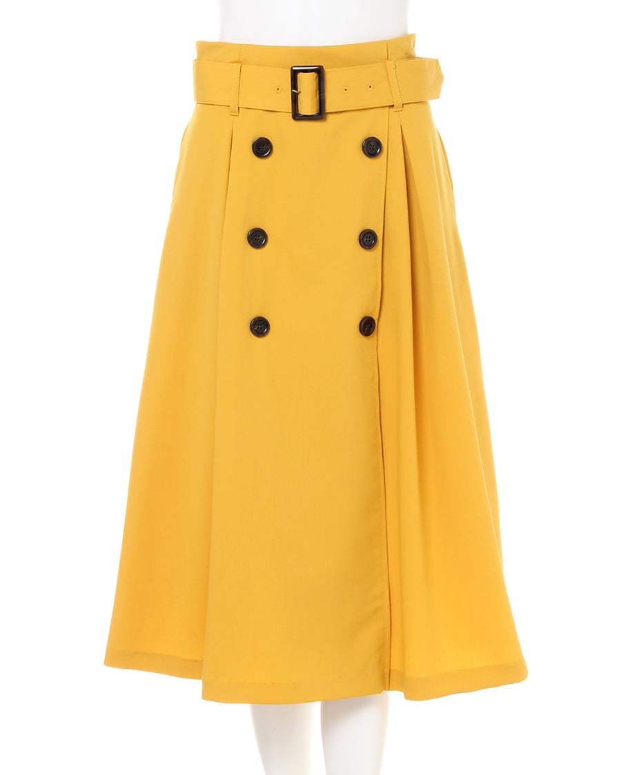大人カジュアルスタイルにぴったりの、長め丈のトレンチデザインのスカート。伸縮性のある生地で快適な穿き心地を実現、フロント部分に入れたタックが腰周りをすっきり見せ、スタイルアップも叶えてくれます。共布ベルト付きなのでウエストマークすればメリハリのある着こなしに。バックウエストはゴム仕様で着脱も楽チンです。
