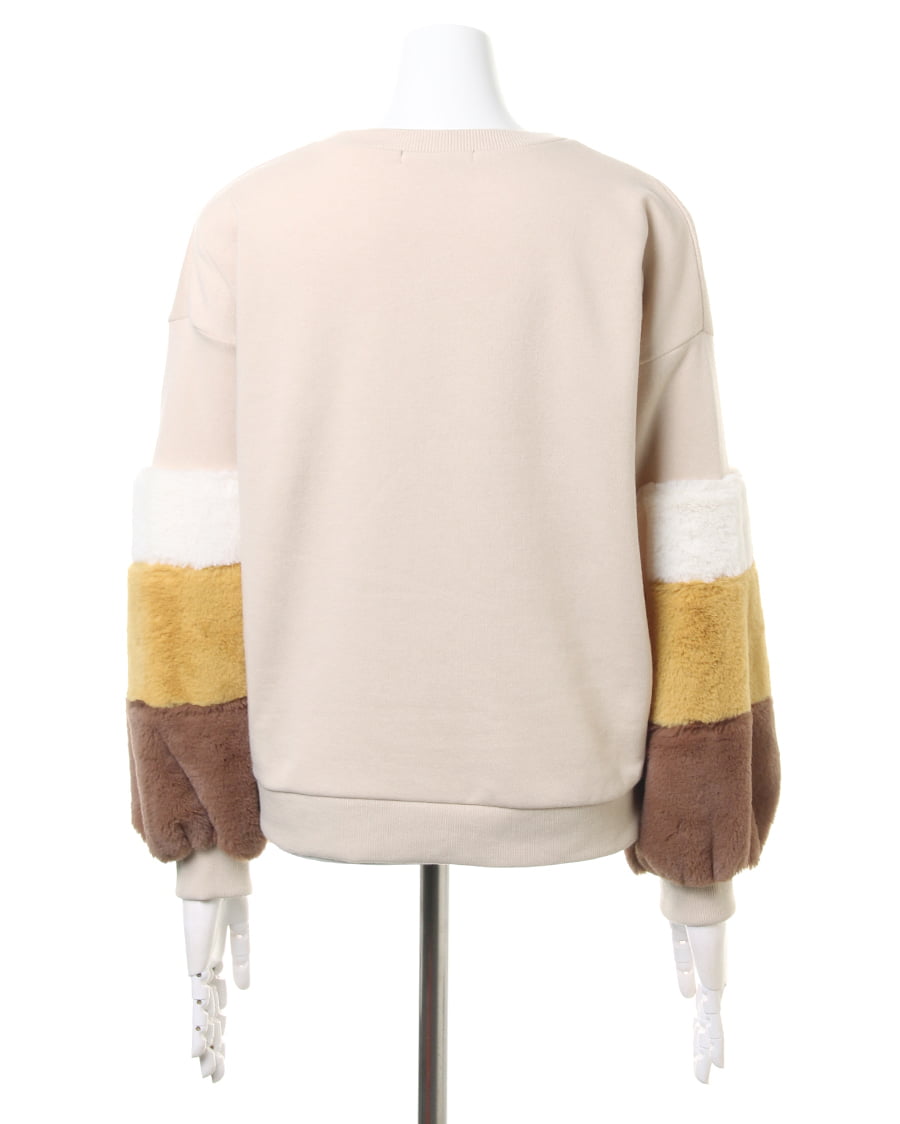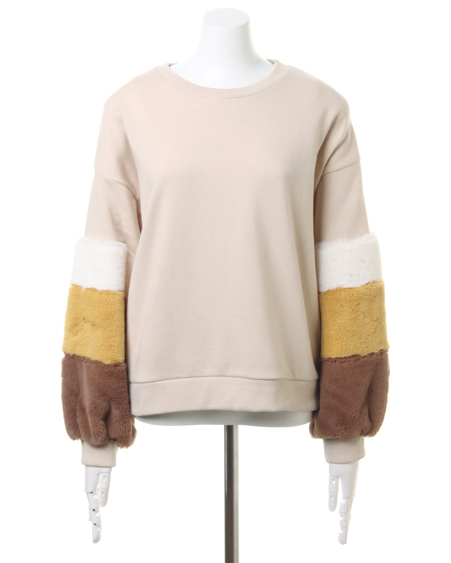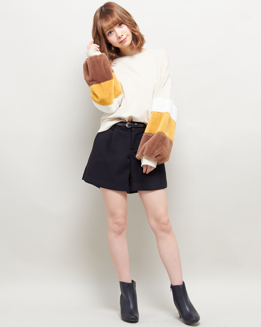 袖ファー切り替え裏毛/トップスとベルト付フェイクウールショートパンツのSET☆