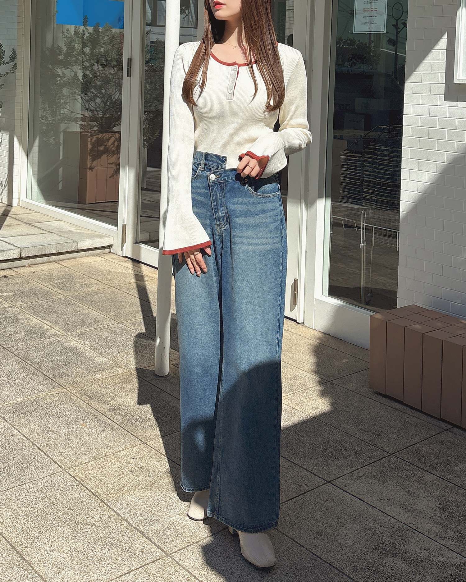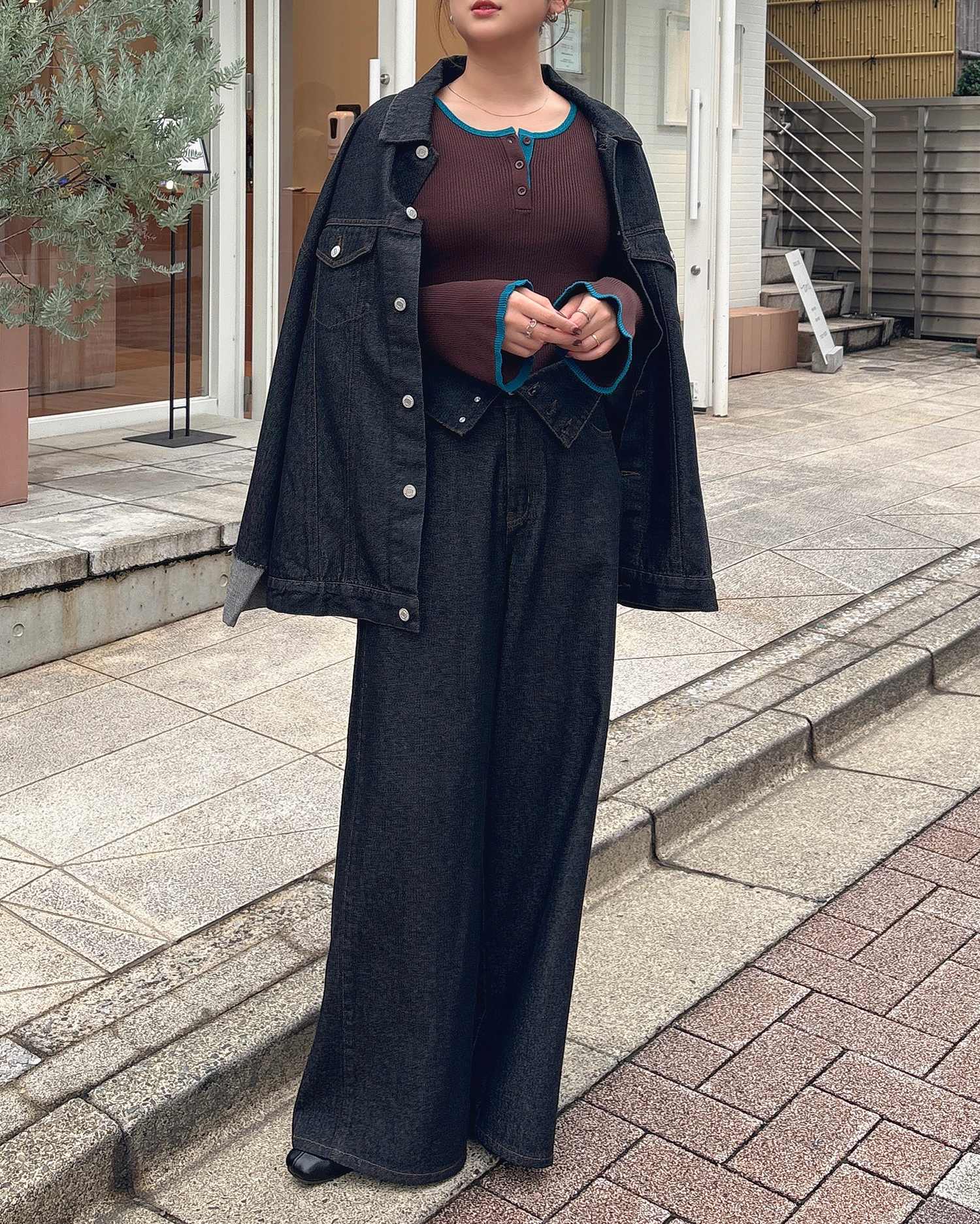 胸元もヘンリーネックでヘルシーな印象を与えます。