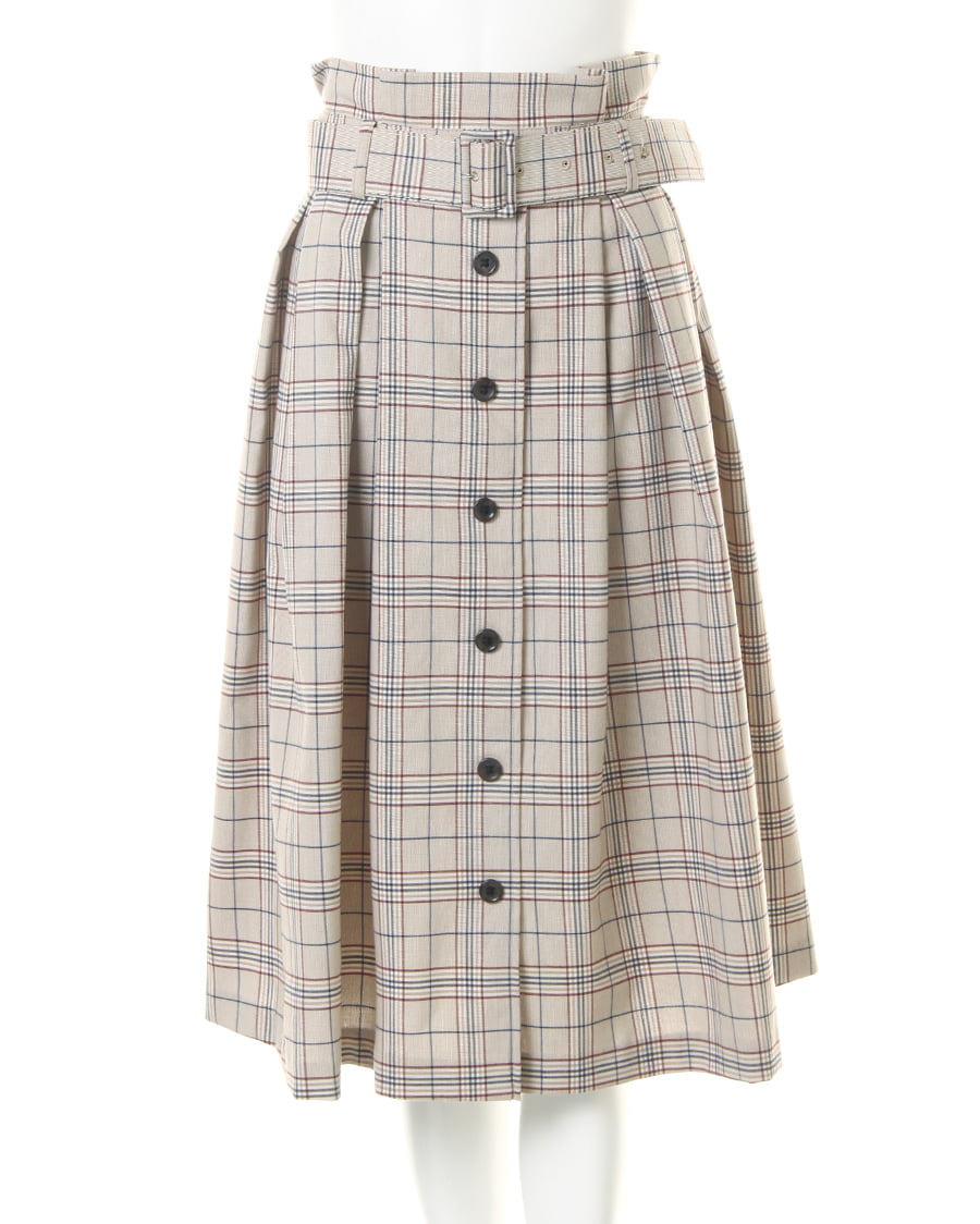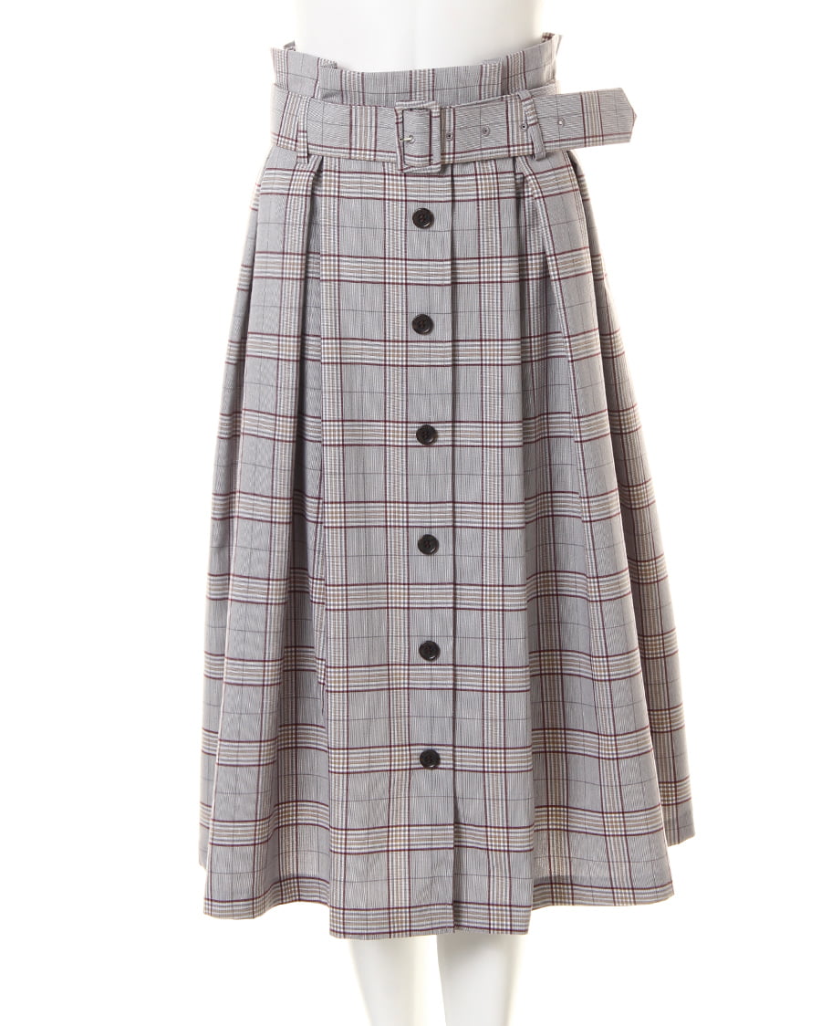 トラディショナルな雰囲気のチェック生地をボタンデザインで仕上げることでカジュアル要素をプラスしたスカート。ひざ下の丈感が上品で、オンオフ問わずに着回せます。ウエスト上部にフリルを残し、共布ベルトでマークすれば、旬のインスタイルにも重宝。裾へ向かってゆったりと広がるフレアーシルエットが魅力です。薄手の生地がこれからの季節にぴったり。パンプスを合わせてエレガントに着こなして。