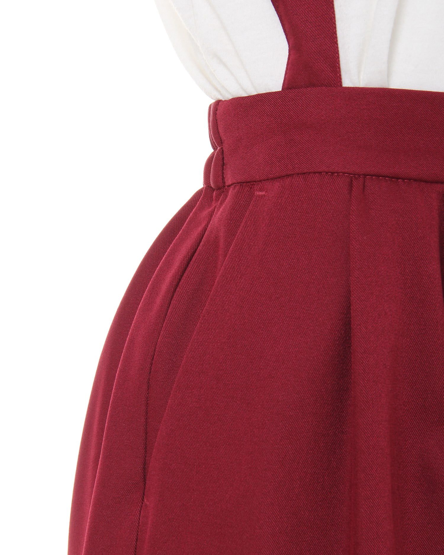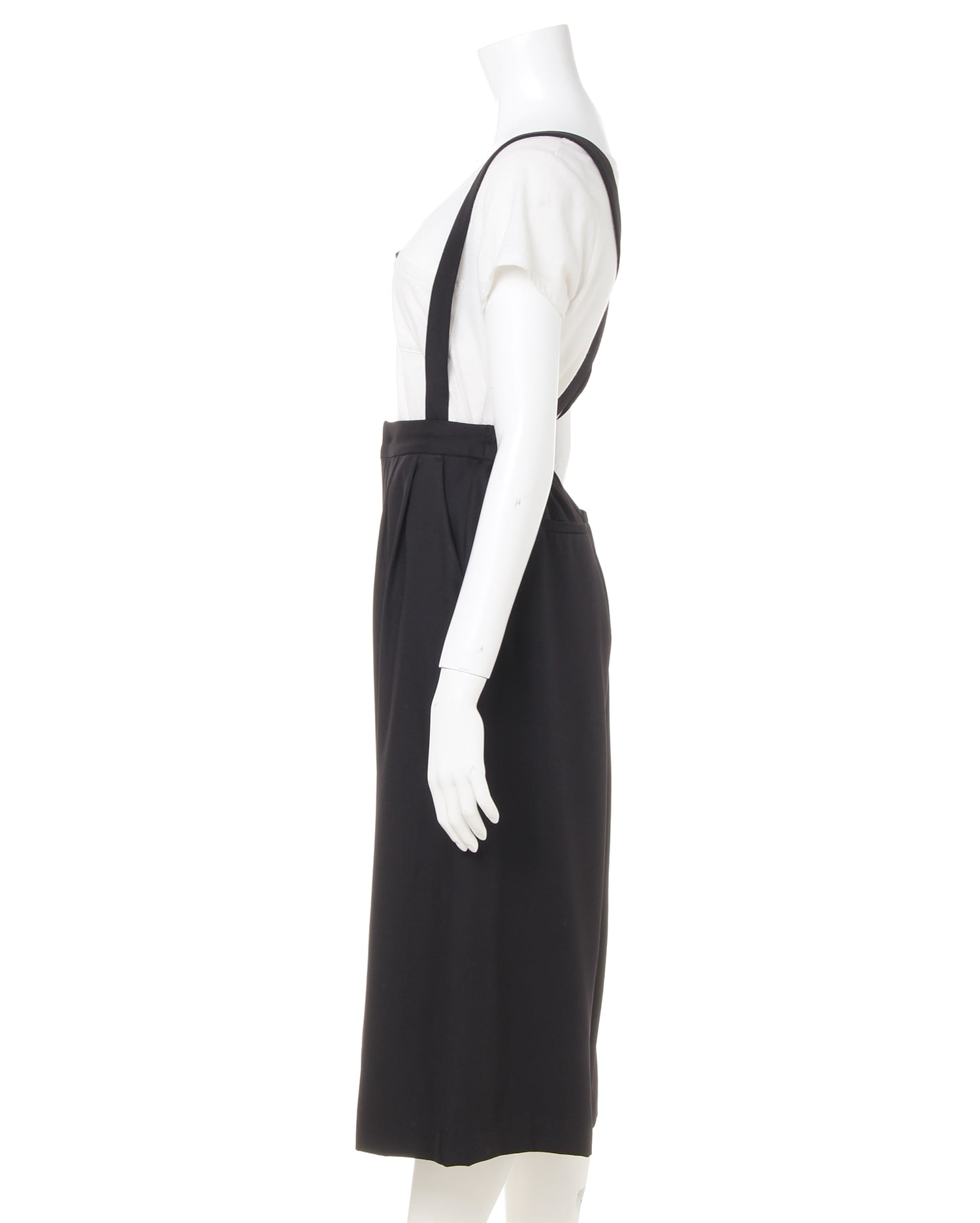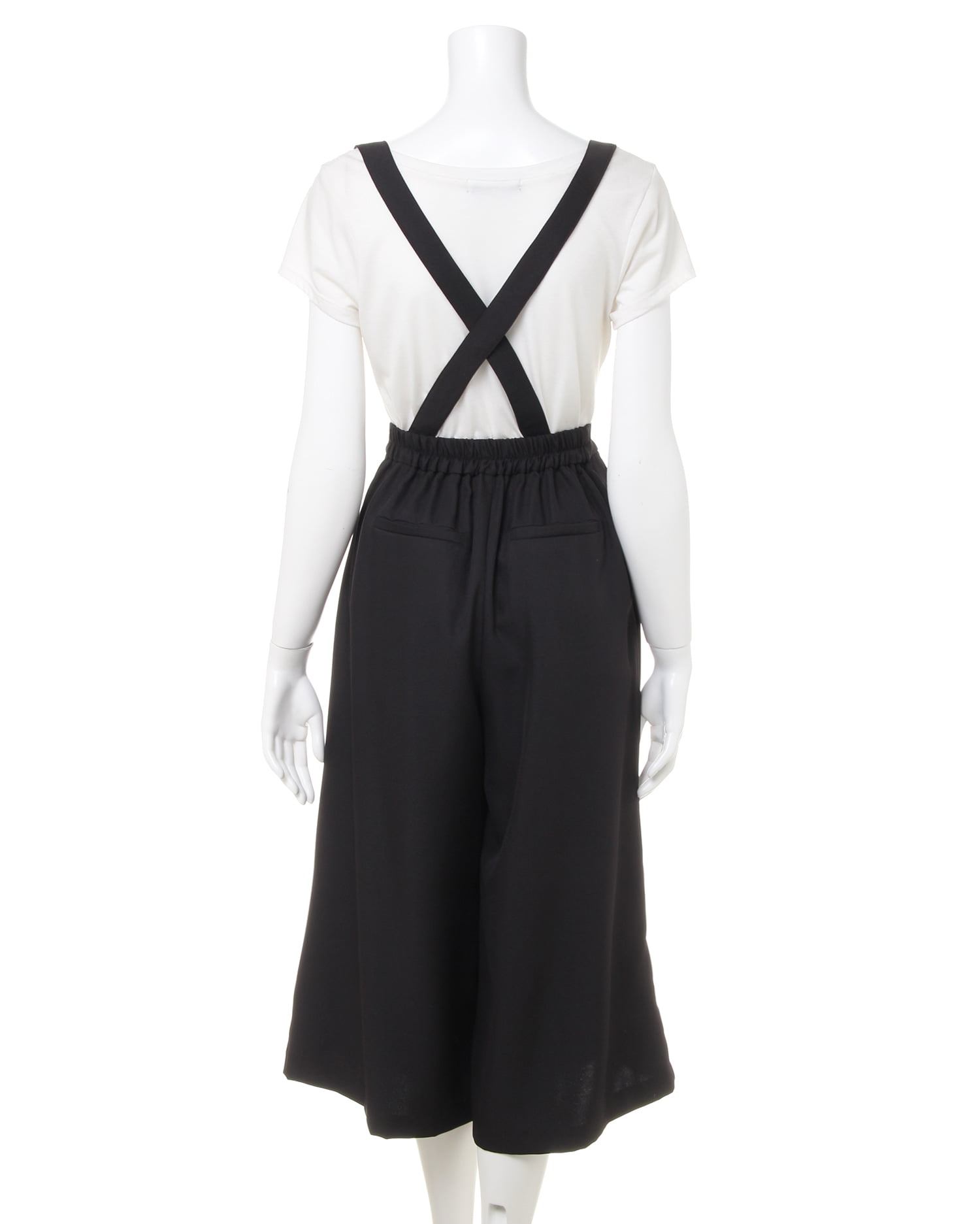 着こなしの幅が広がるサスペンダー付きのガウチョパンツ。ひざ下の程よい丈感でバランスよく着こなせます。ハリ感のある素材は伸縮性があり、脱ぎ穿きも楽チン。ウエスト部分はゴムになっているので、リラックスした着心地を楽しめます。合わせるトップス次第で様々な着こなしができるのが嬉しい。カットソーでカジュアルに、フリルブラウスでクラシカルなスタイルも◎。
