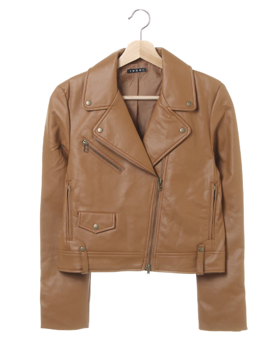 上質感のあるフェイクレザーで仕立てたライダースジャケットは、ミニマルなサイジングが女性らしく着られるアイテム。柔らかな生地と裏地付きなので、ごわつきを感じさせない着心地を実現。細部にこだわったデザインがライダース特有のハード感を抑え、バランス良くスタイリングできるのも魅力的なポイント◎。1着持っていて損のないアウターです。