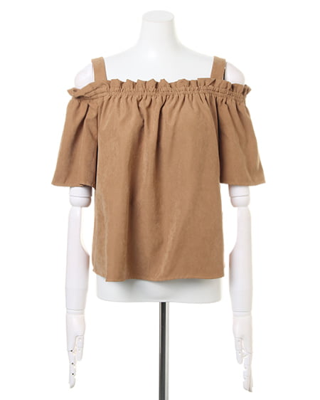 【1174-142309 フレア袖ピーチシャーリングオフショル/TOPS】