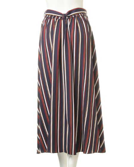 【1174-342329 サッシュ付マルチストライプ柄イレヘム/スカート】