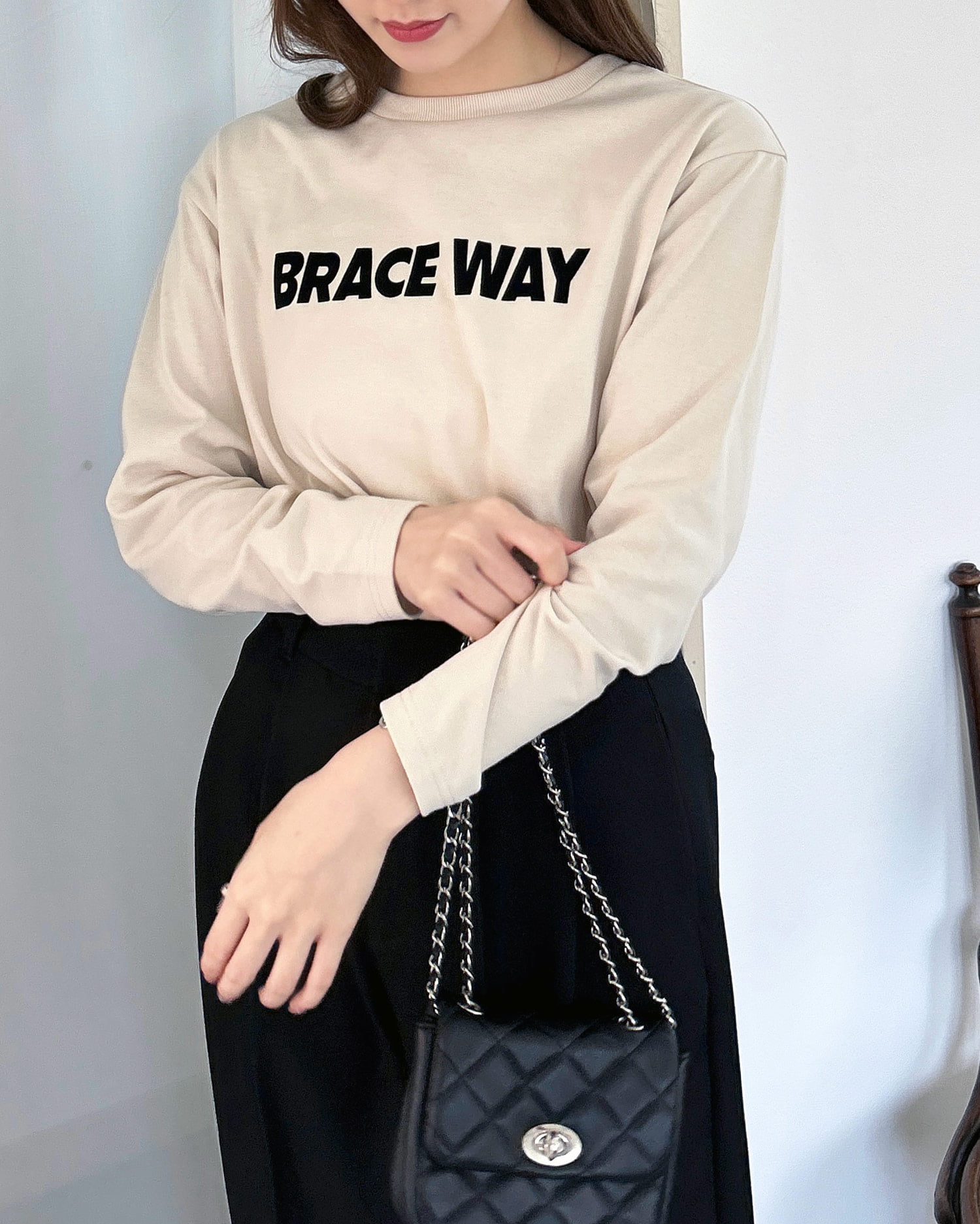 ベーシックなシルエットで着回し力抜群のロゴ入りロンT。