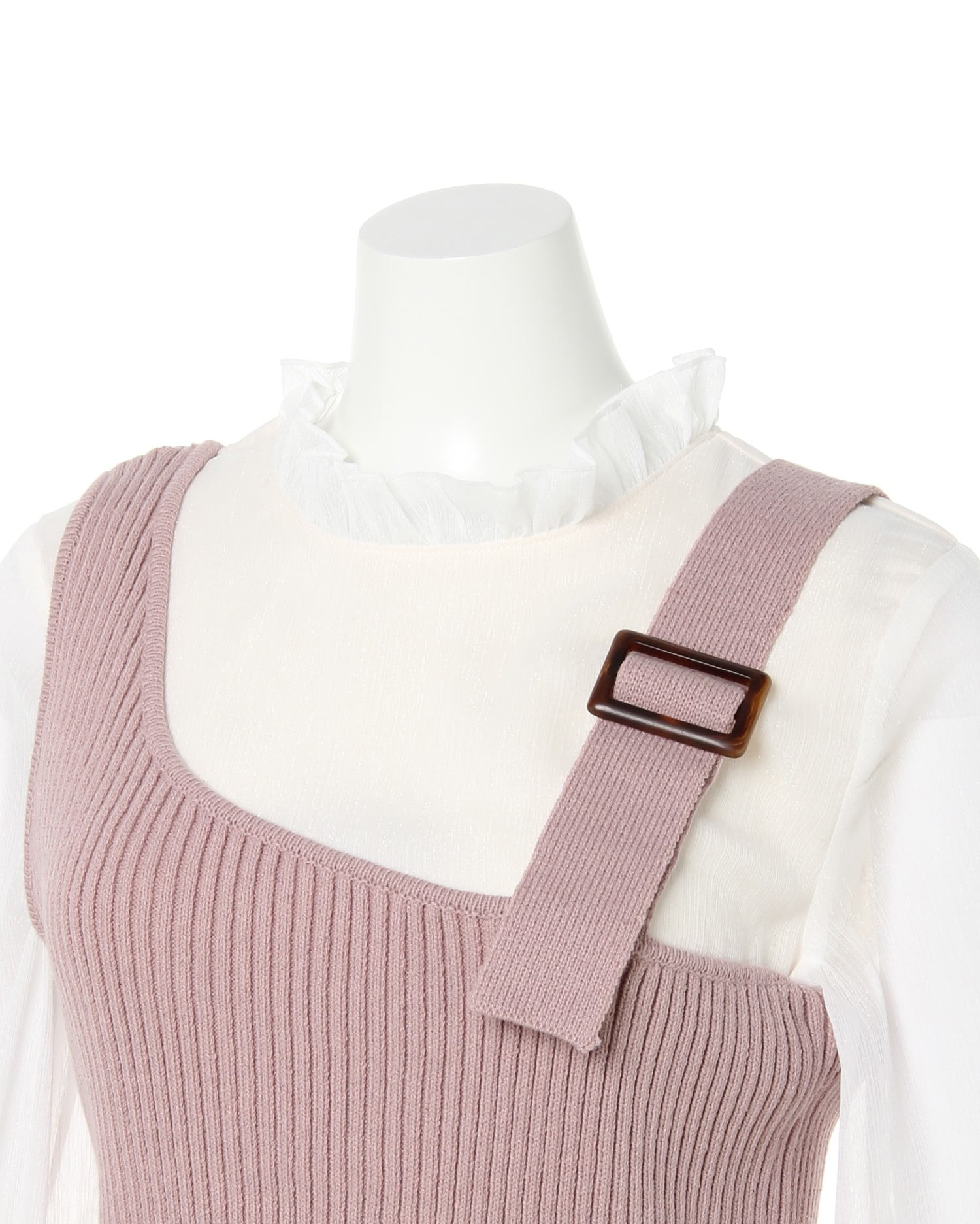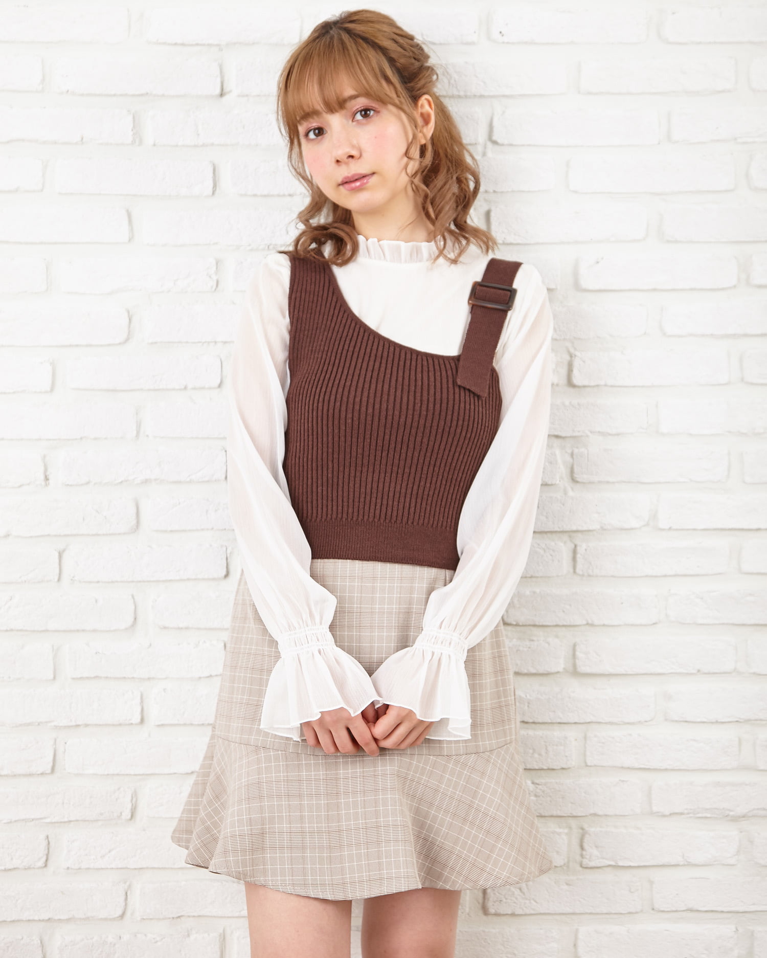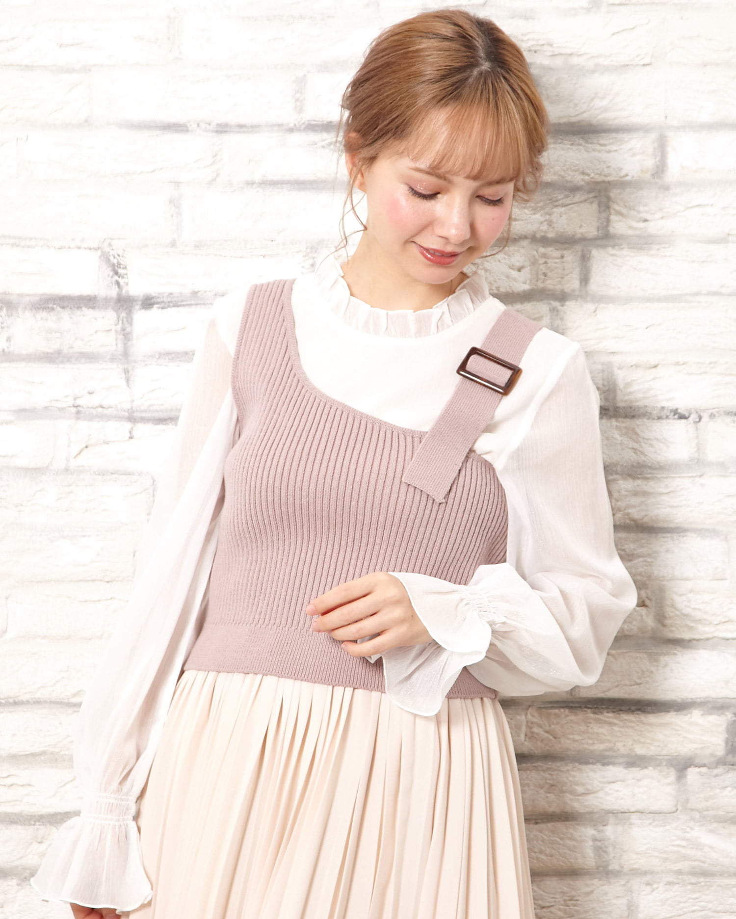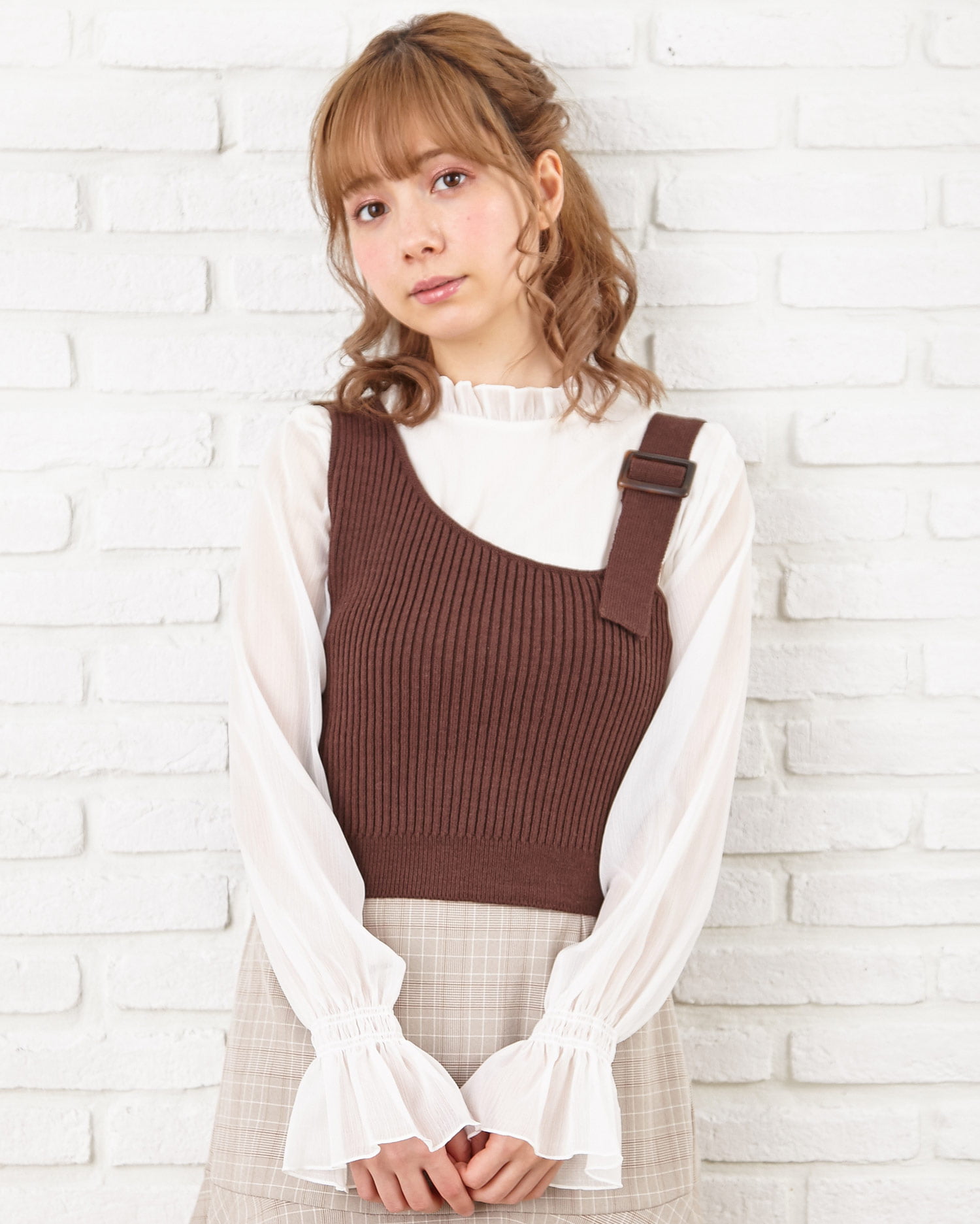 柔らかいニット素材の個性派タンクトップとラメ混のフェミニンブラウスのセットアイテムです。表面感のあるラメ混じりの薄手ブラウスは歩くたびに輝きを放ちエレガントな雰囲気をプラス。薄手の素材も身頃部分には裏地を付けているので安心して着られます。ワンショルニットはボディラインに程よく沿うリブが上半身をコンパクトに見せ、スタイルアップ効果も。コーディネイト要らずでメリハリのあるスタイルが完成します。