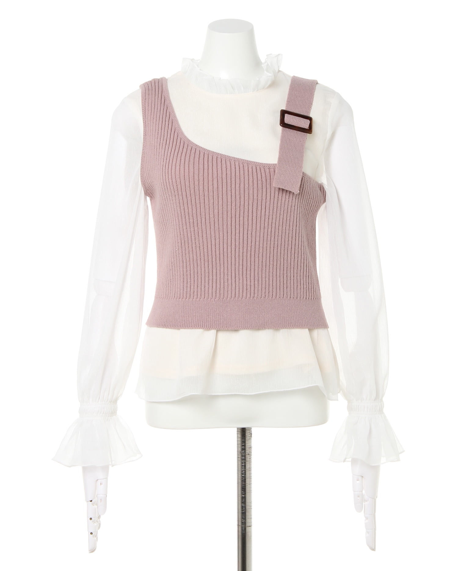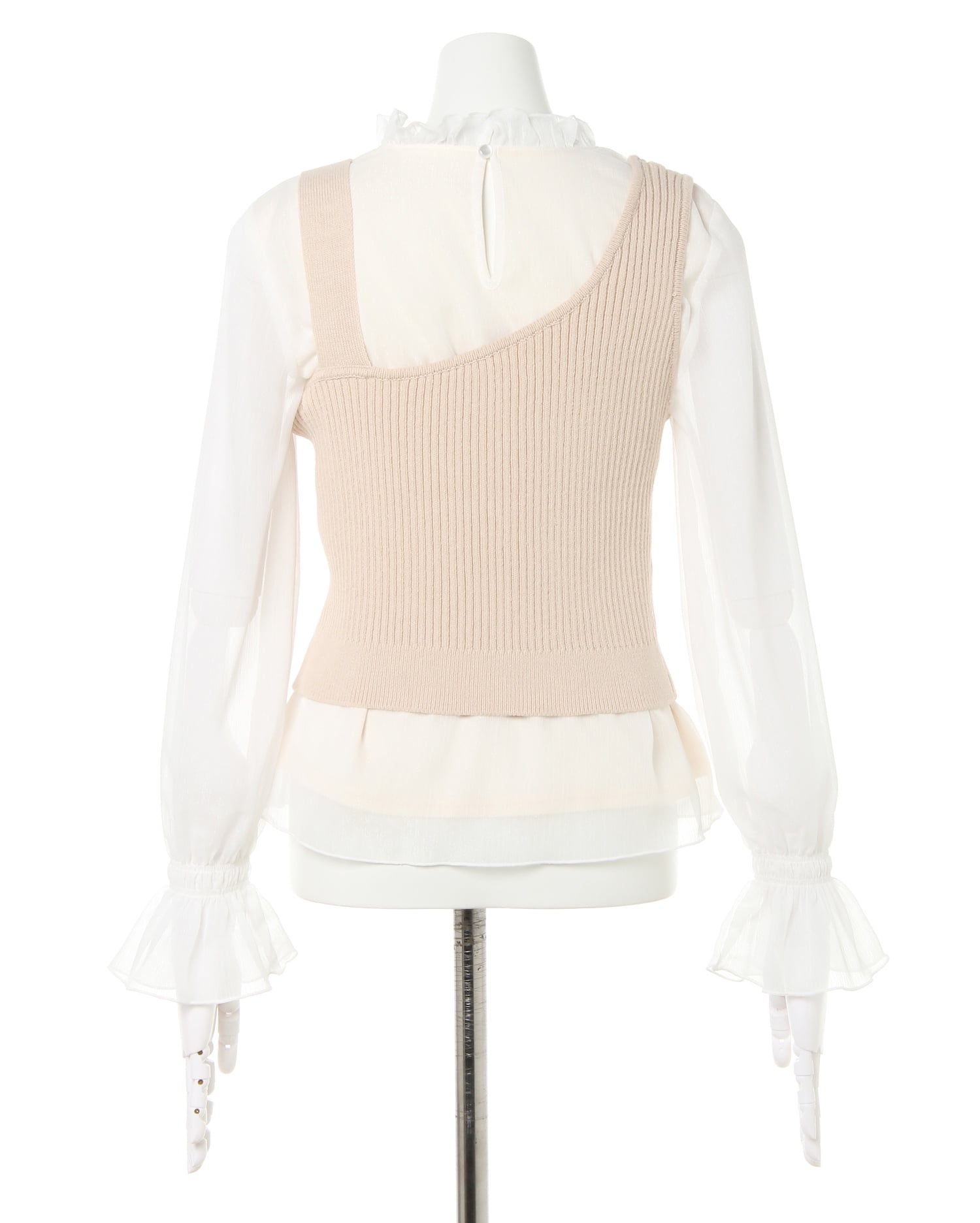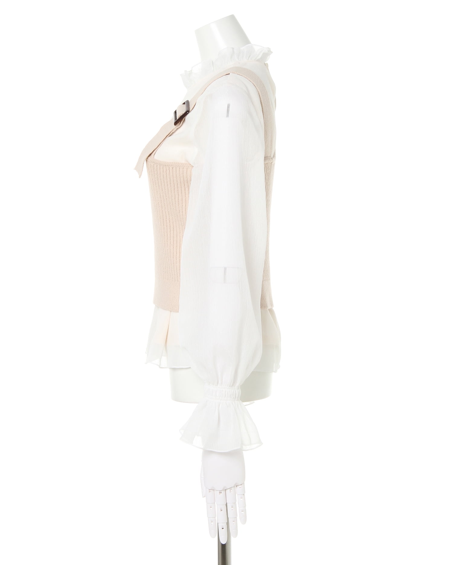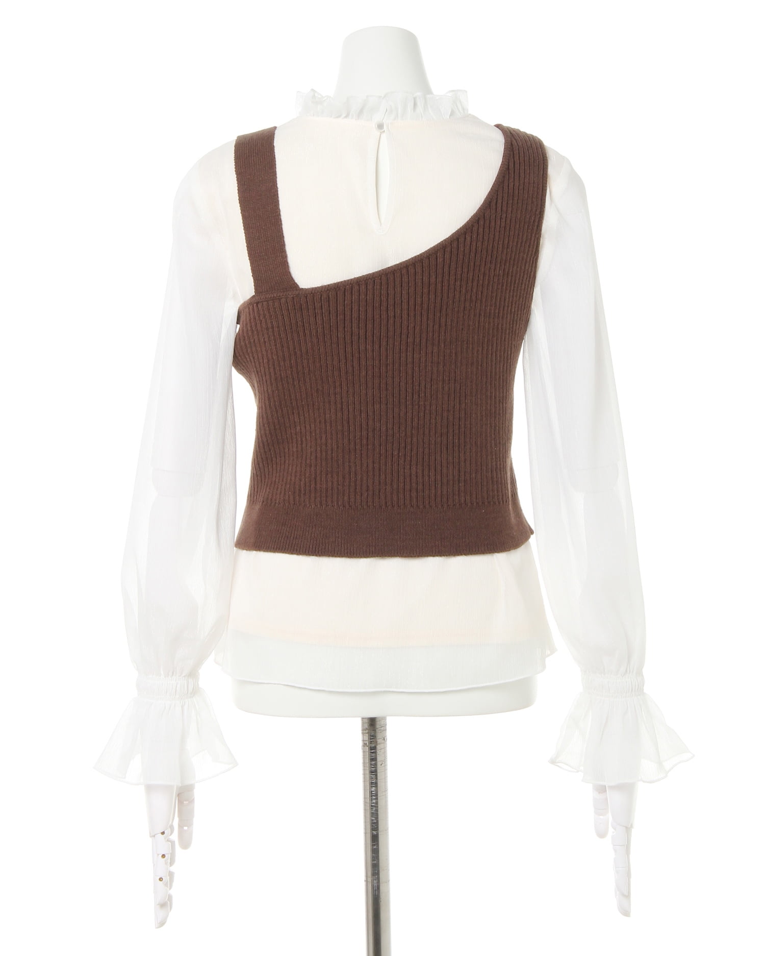 柔らかいニット素材の個性派タンクトップとラメ混のフェミニンブラウスのセットアイテムです。表面感のあるラメ混じりの薄手ブラウスは歩くたびに輝きを放ちエレガントな雰囲気をプラス。薄手の素材も身頃部分には裏地を付けているので安心して着られます。ワンショルニットはボディラインに程よく沿うリブが上半身をコンパクトに見せ、スタイルアップ効果も。コーディネイト要らずでメリハリのあるスタイルが完成します。