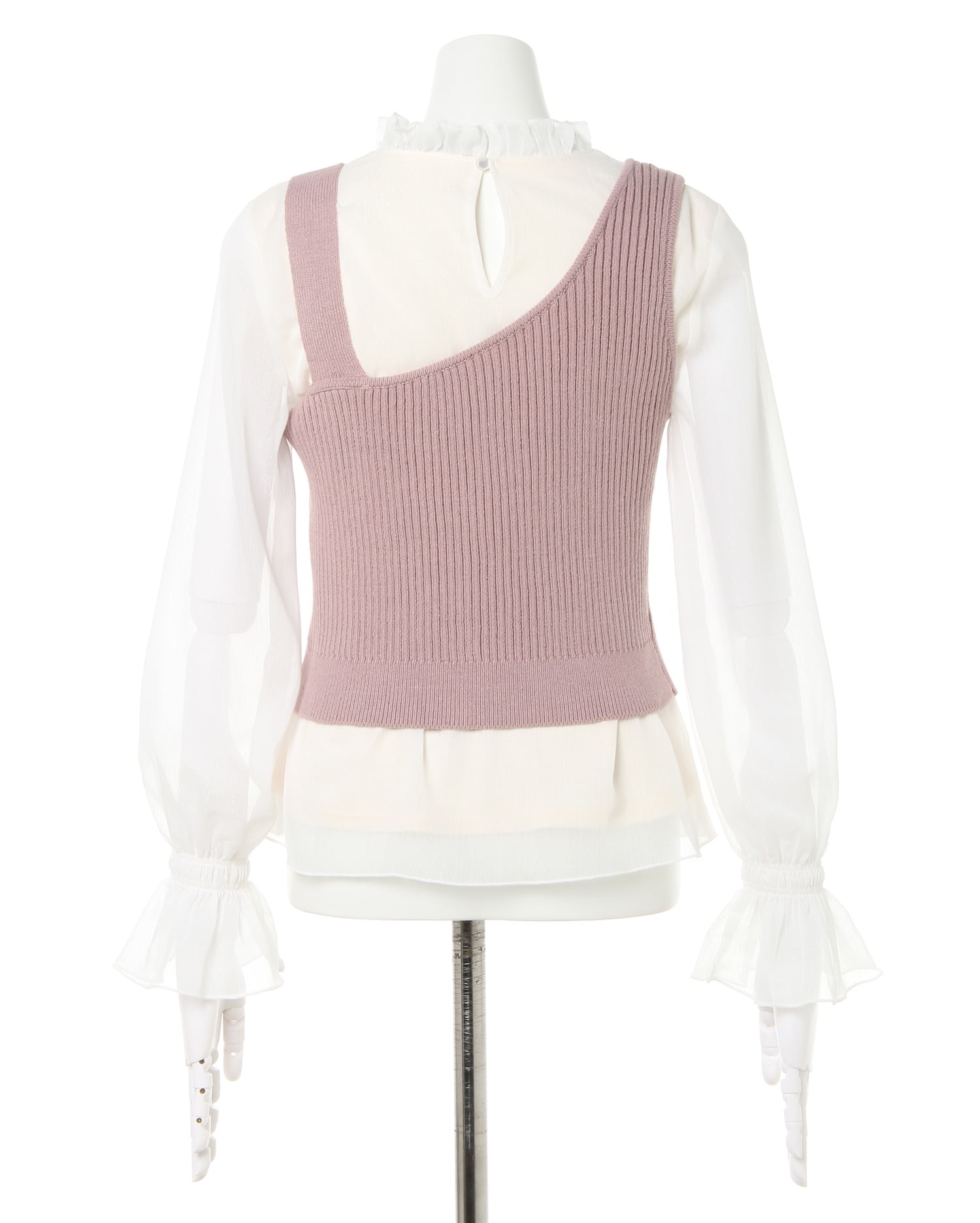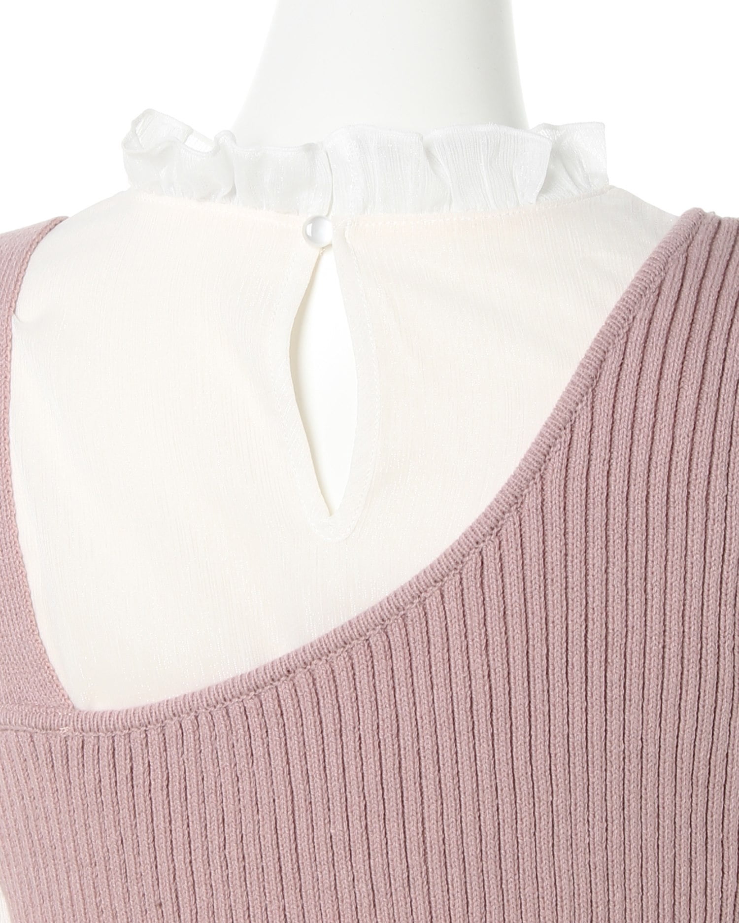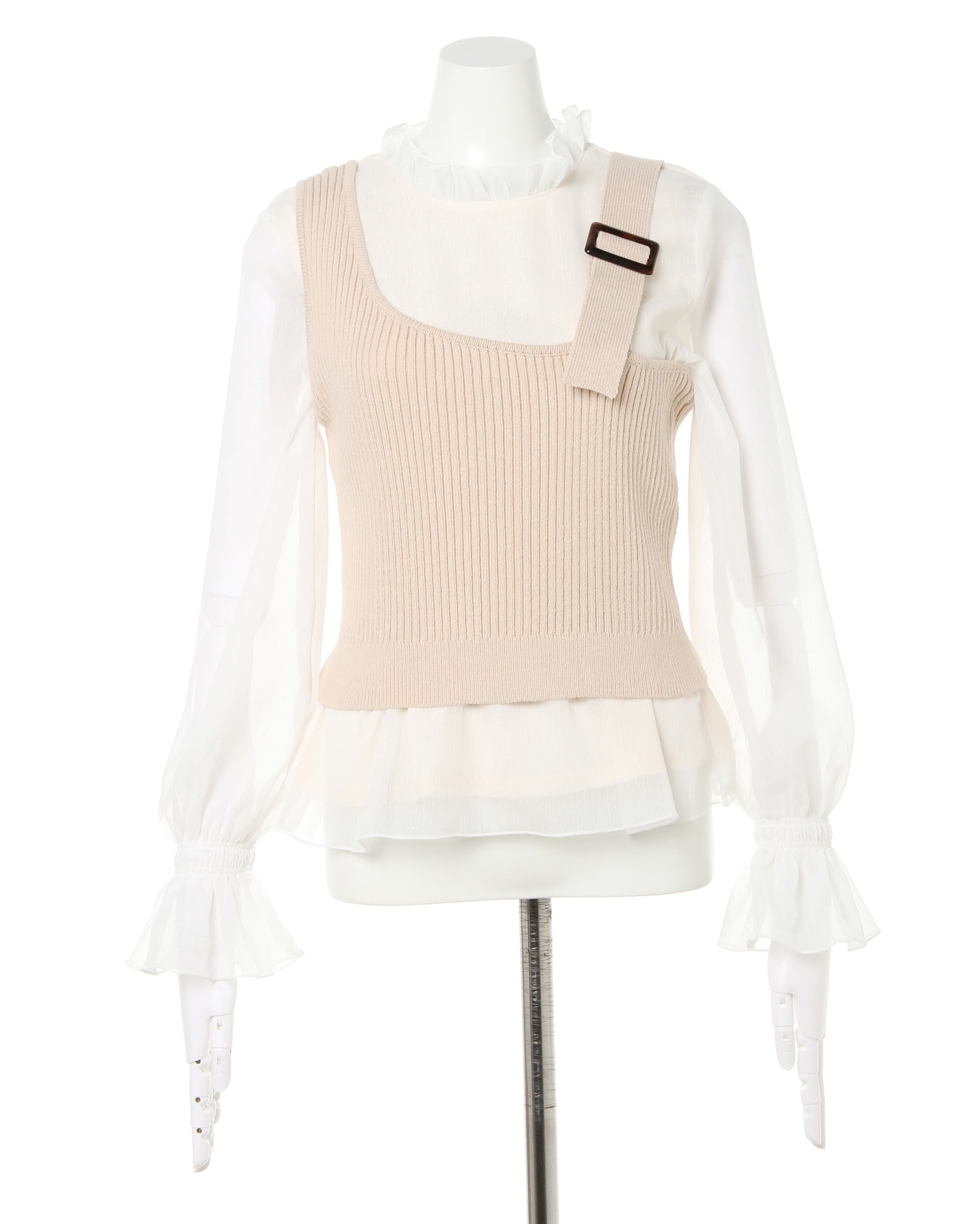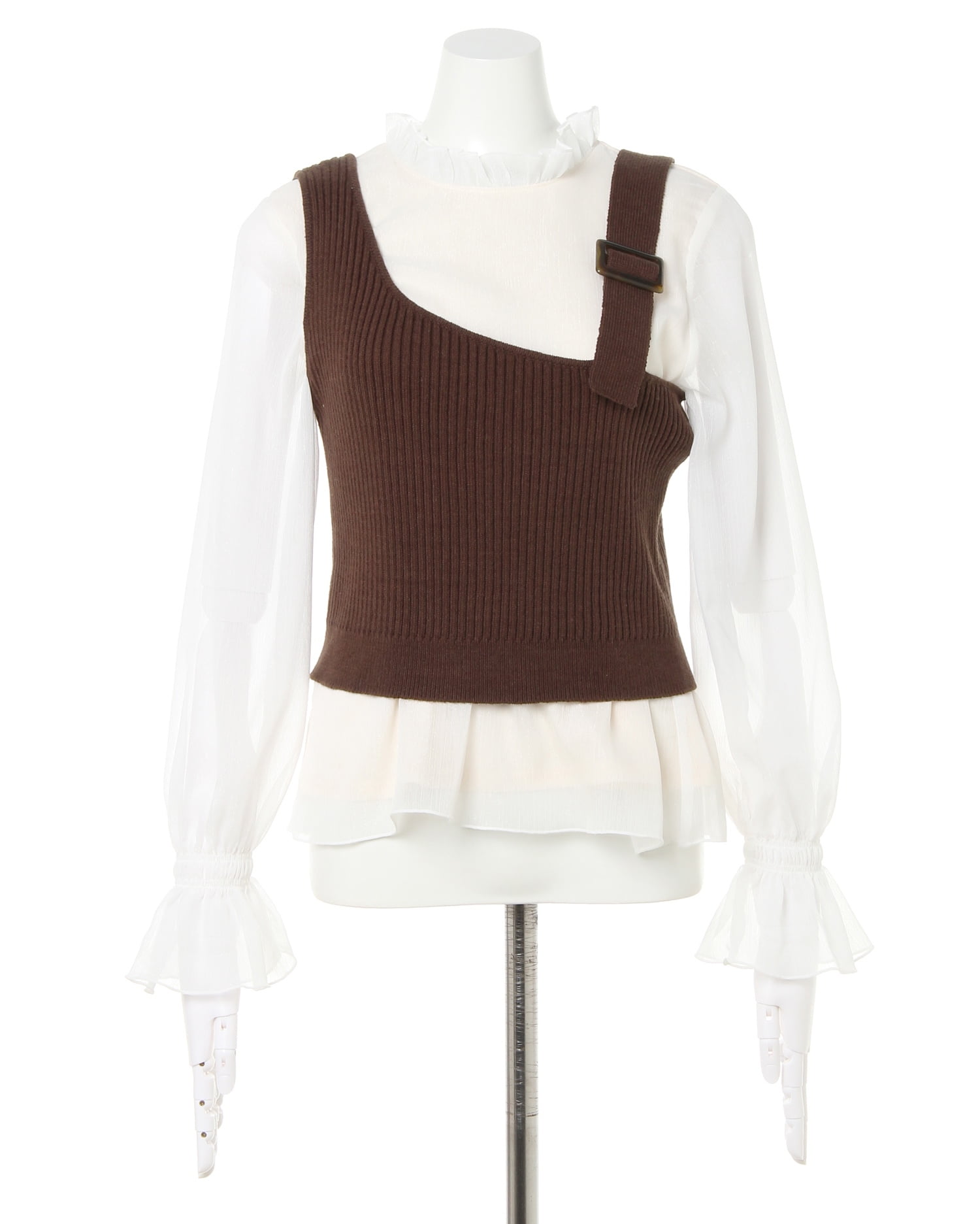 柔らかいニット素材の個性派タンクトップとラメ混のフェミニンブラウスのセットアイテムです。表面感のあるラメ混じりの薄手ブラウスは歩くたびに輝きを放ちエレガントな雰囲気をプラス。薄手の素材も身頃部分には裏地を付けているので安心して着られます。ワンショルニットはボディラインに程よく沿うリブが上半身をコンパクトに見せ、スタイルアップ効果も。コーディネイト要らずでメリハリのあるスタイルが完成します。