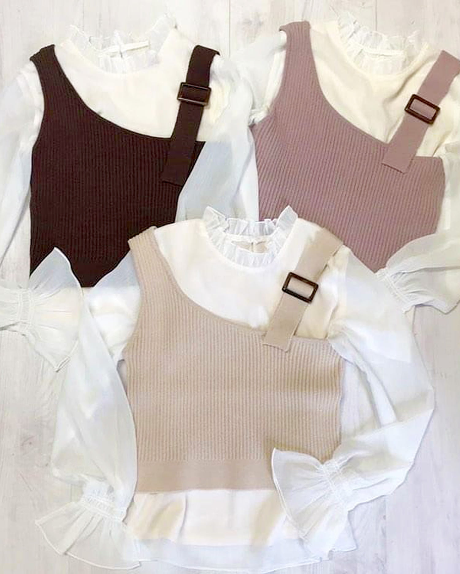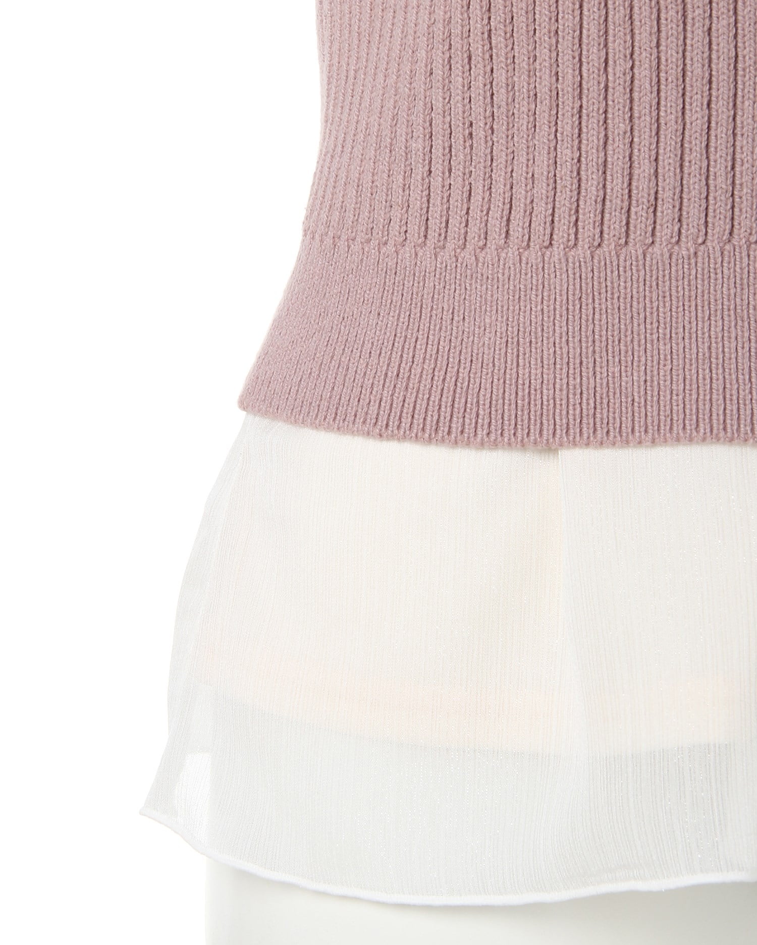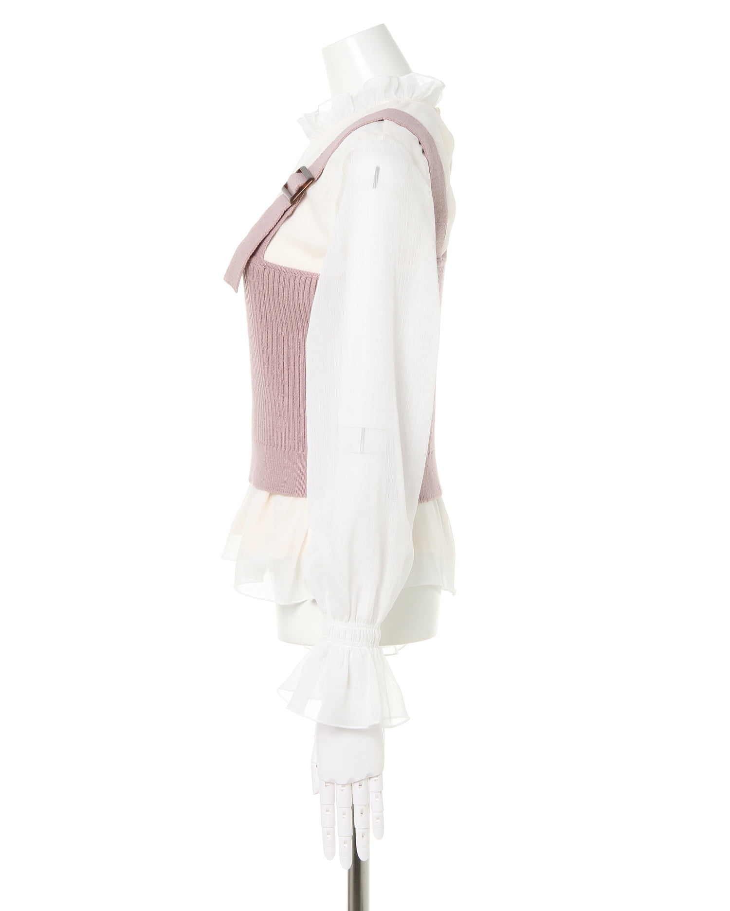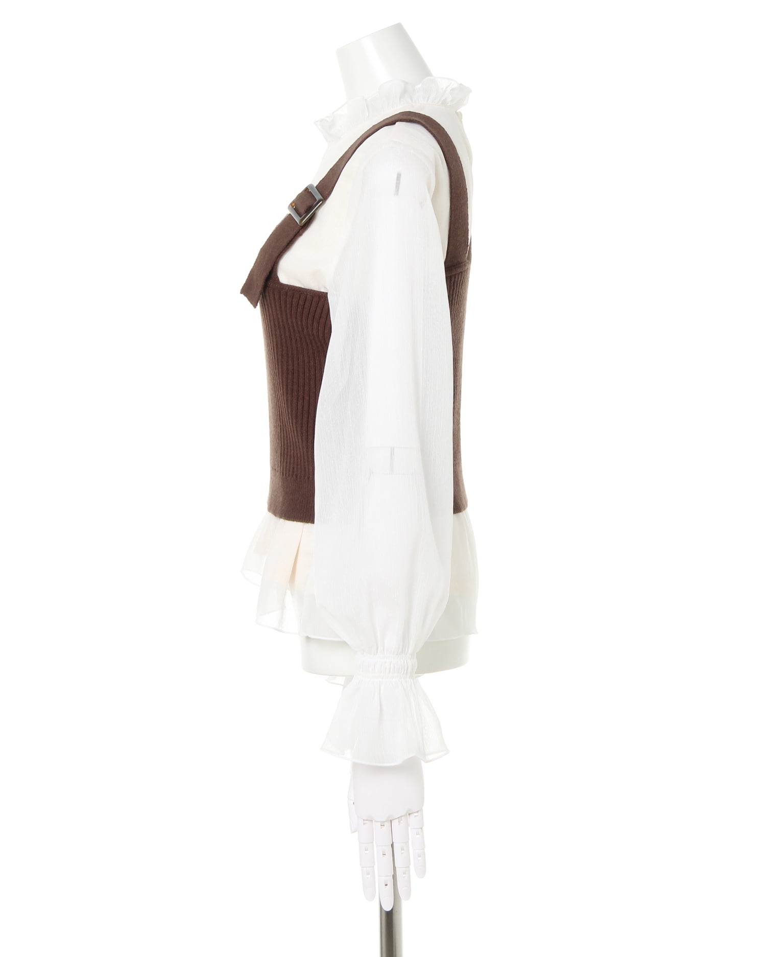 柔らかいニット素材の個性派タンクトップとラメ混のフェミニンブラウスのセットアイテムです。表面感のあるラメ混じりの薄手ブラウスは歩くたびに輝きを放ちエレガントな雰囲気をプラス。薄手の素材も身頃部分には裏地を付けているので安心して着られます。ワンショルニットはボディラインに程よく沿うリブが上半身をコンパクトに見せ、スタイルアップ効果も。コーディネイト要らずでメリハリのあるスタイルが完成します。