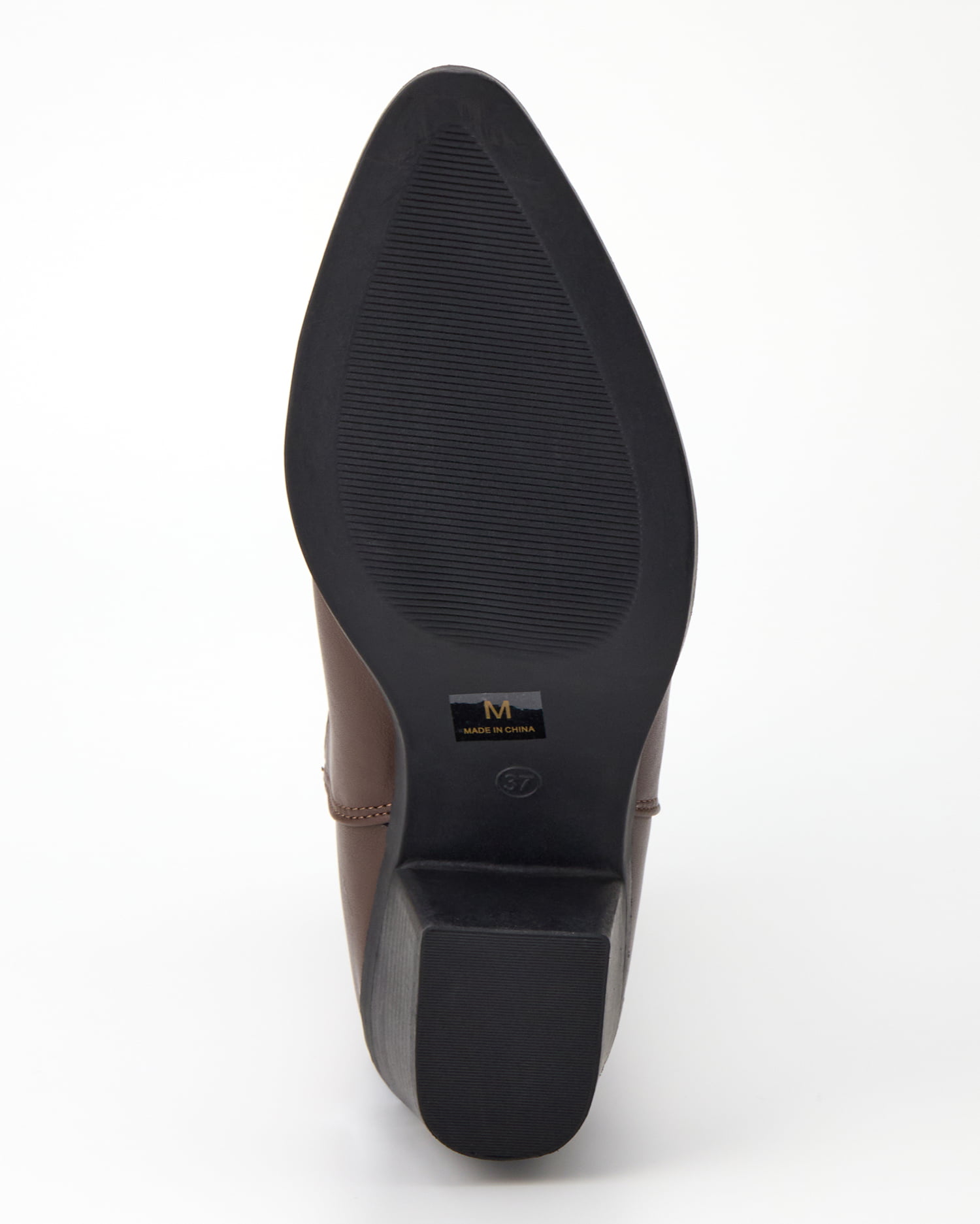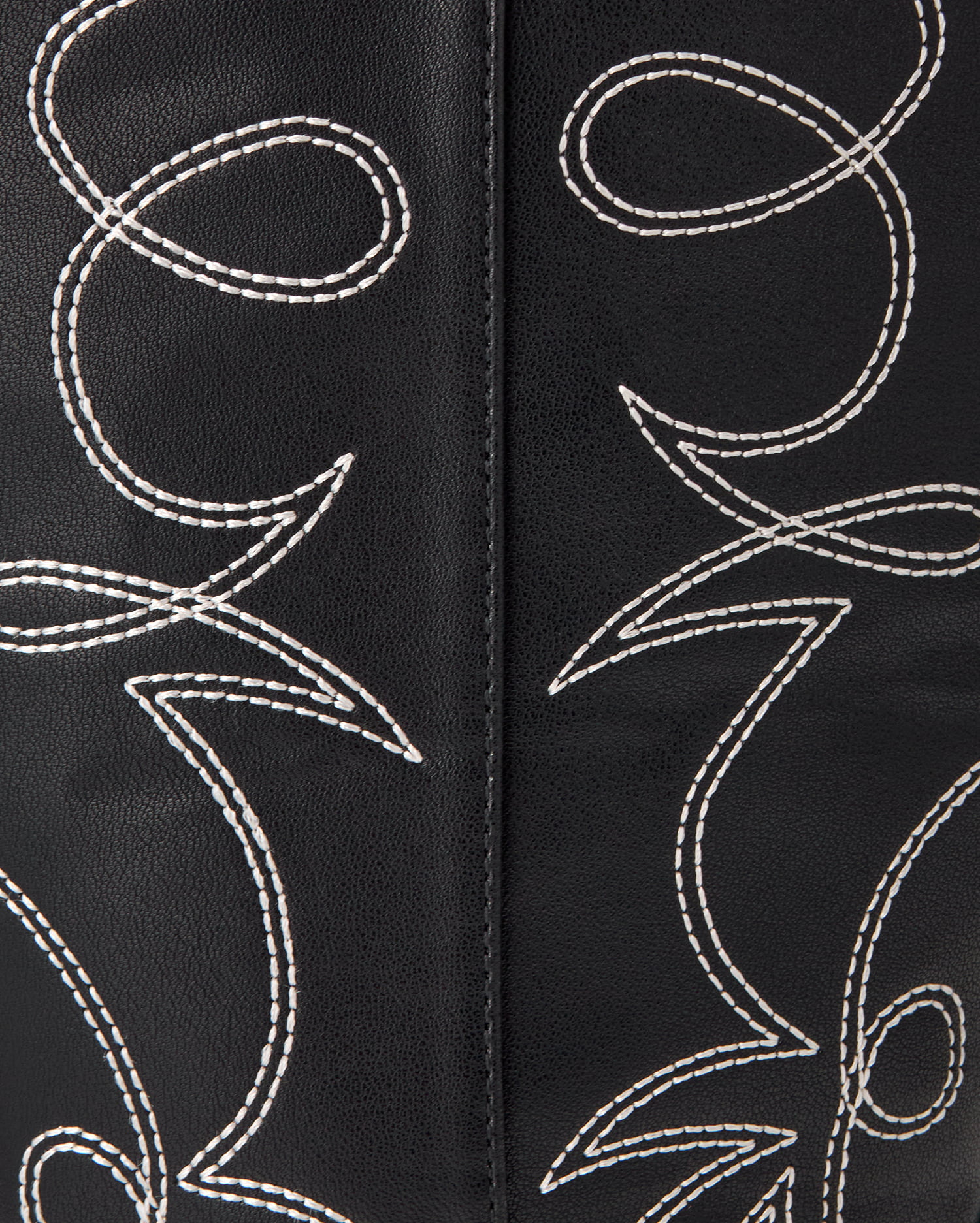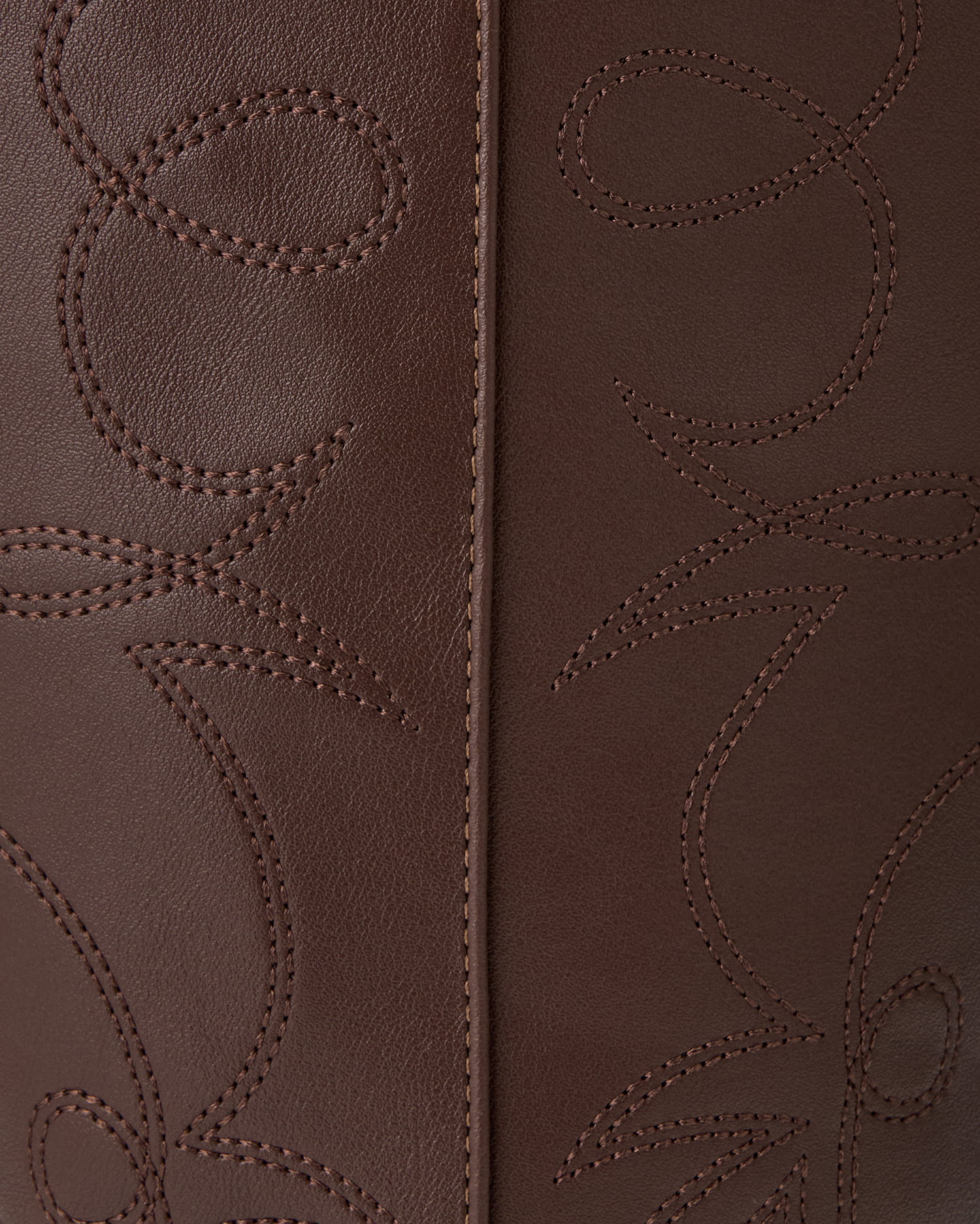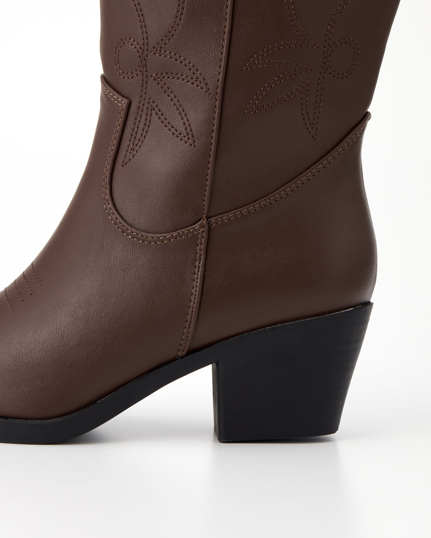 光沢を抑えたしなやかなフェイクレザーとステッチ刺繍がポイントのブーツ。