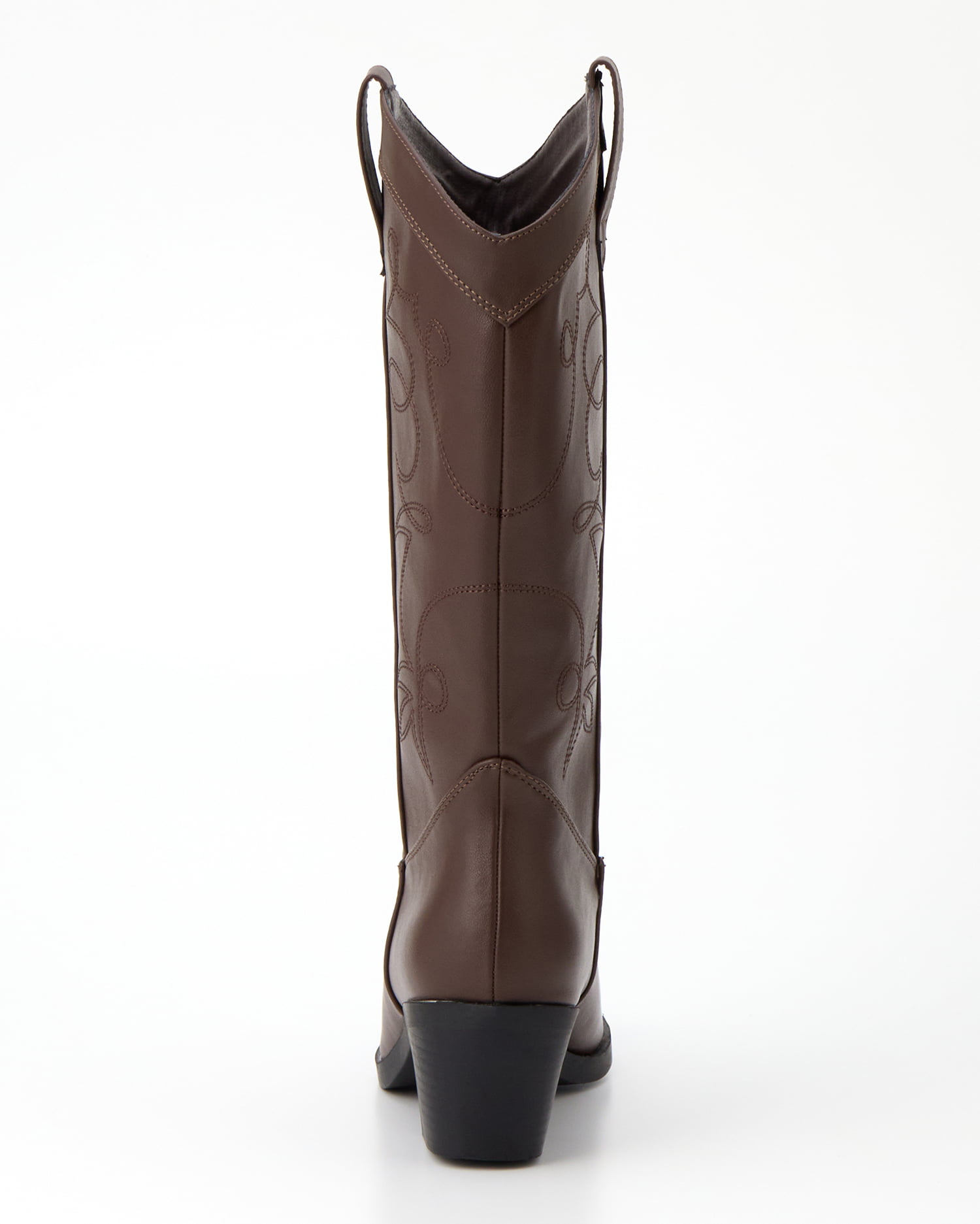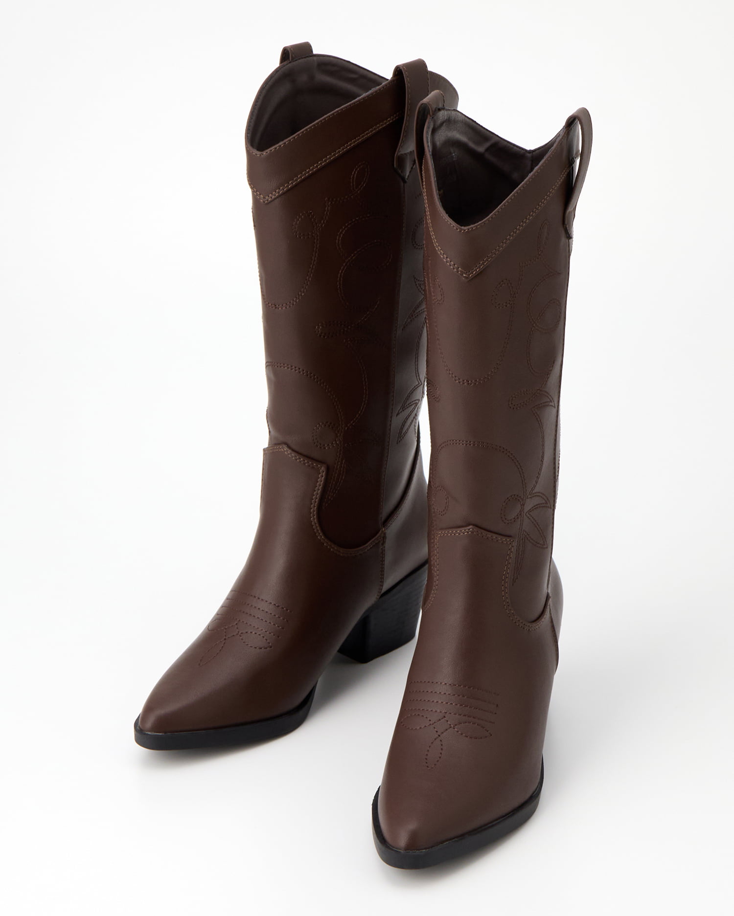 【クラシックなウエスタンスタイルにモダンなエッジを加え、都会的な雰囲気を演出したトレンドブーツ】