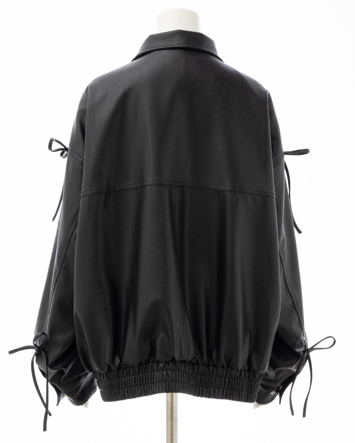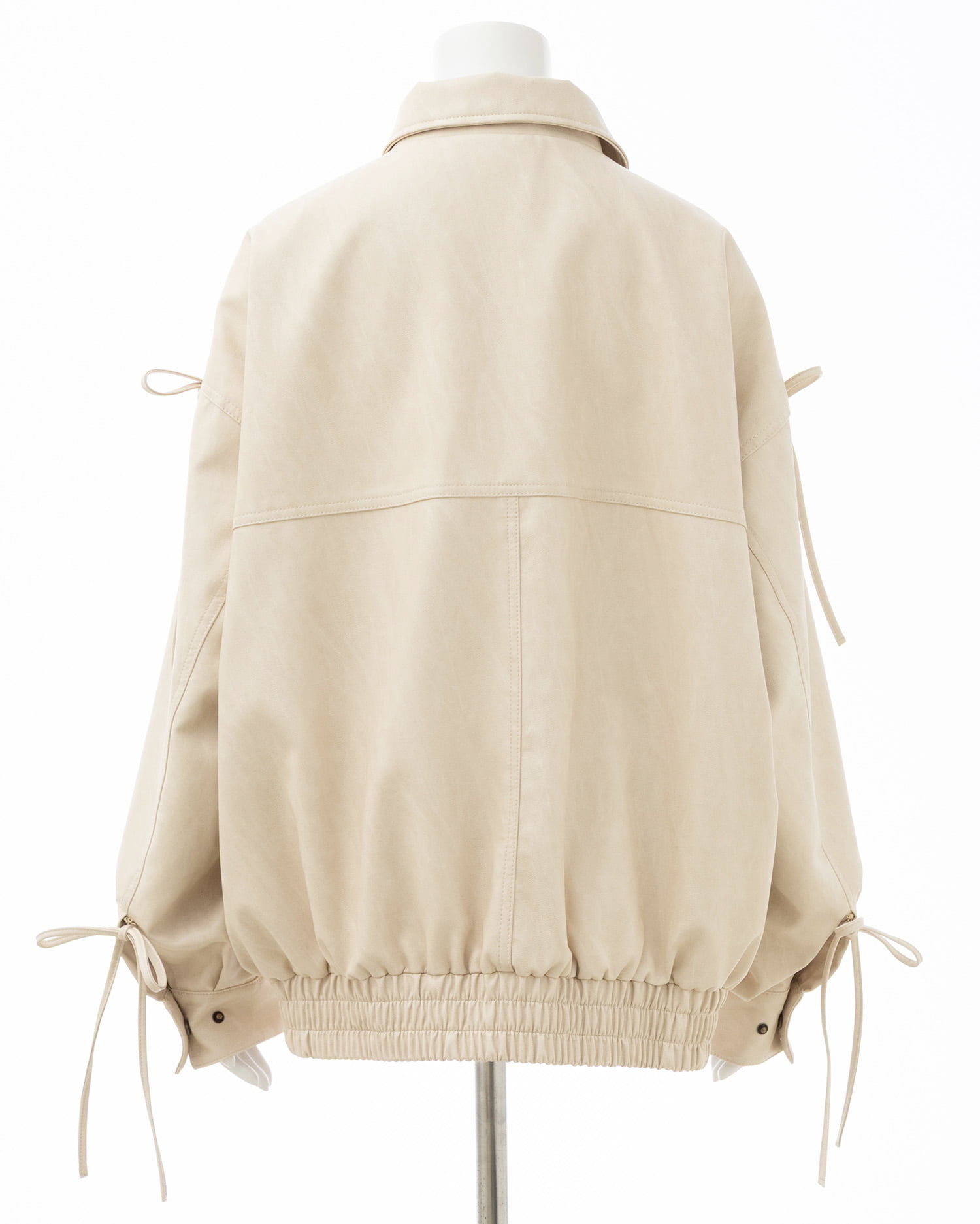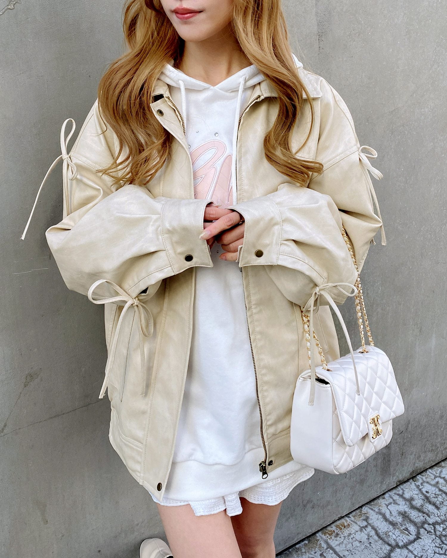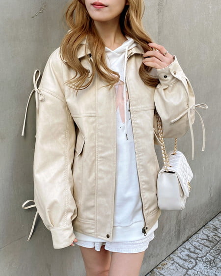 【リボンがキュートな印象をプラスしてくれるフェイクレザーブルゾン】