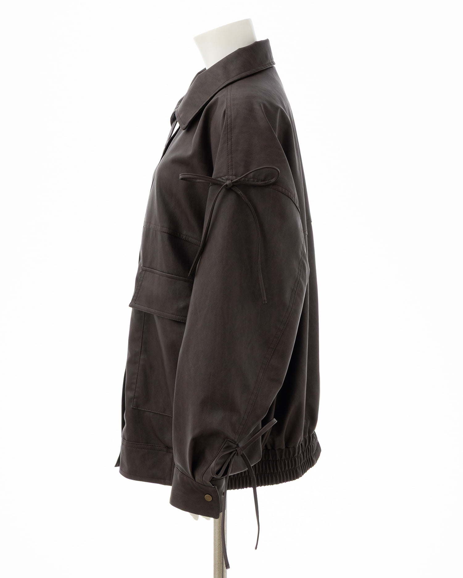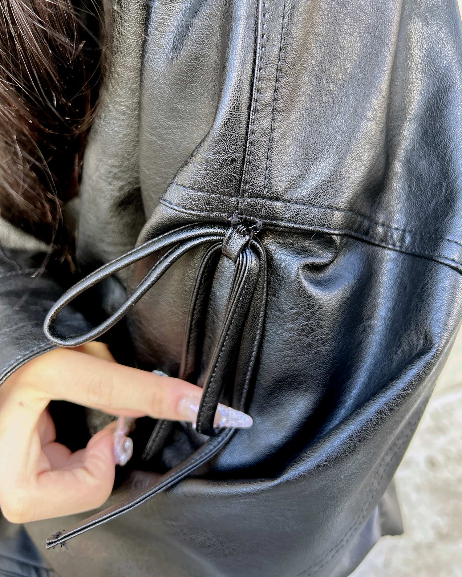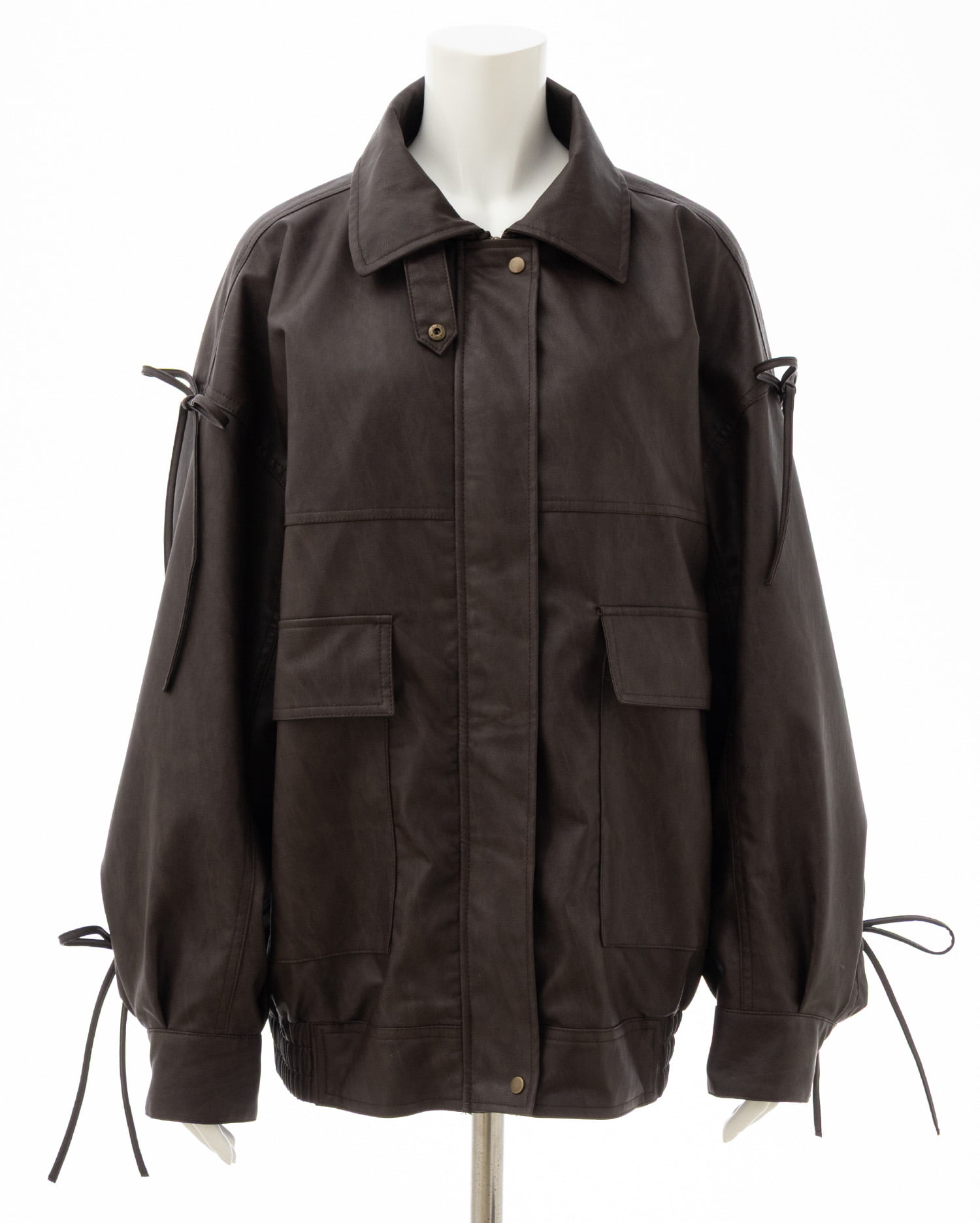 【リボンがキュートな印象をプラスしてくれるフェイクレザーブルゾン】