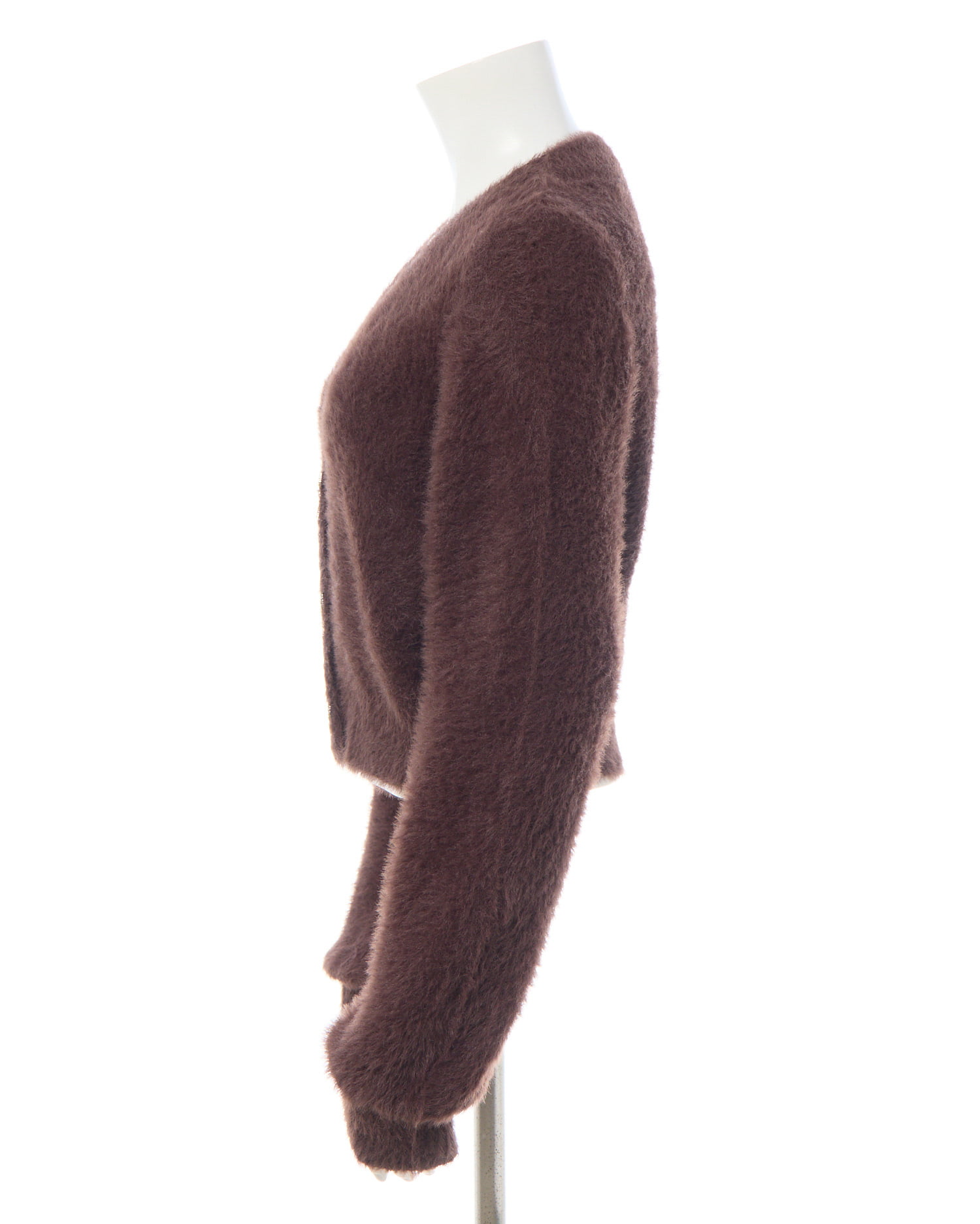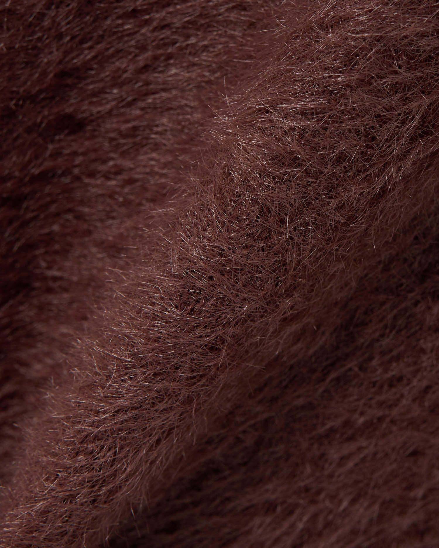 毛足の長い艶やかな素材が、コーディネートを品よく、やわらかな表情に。