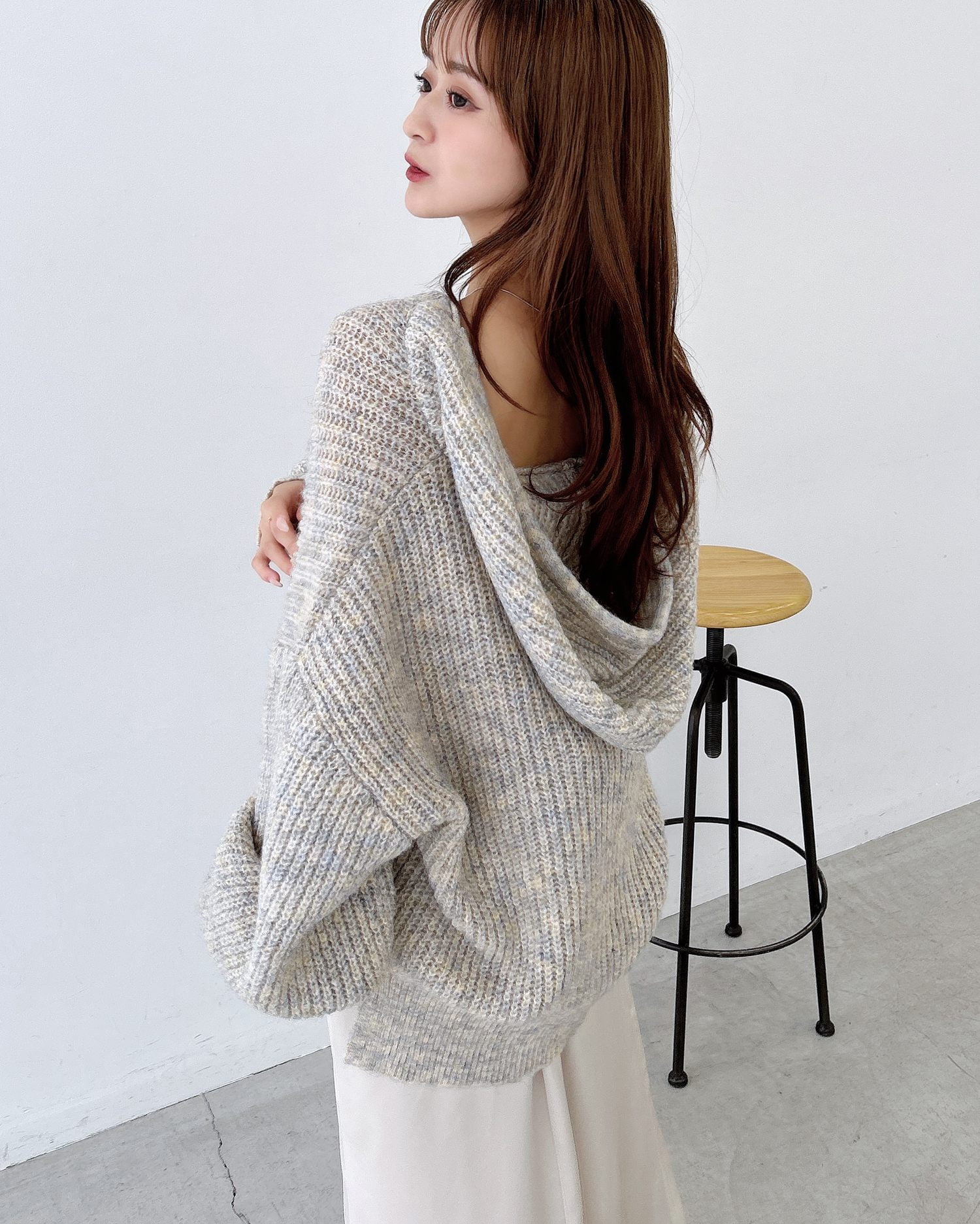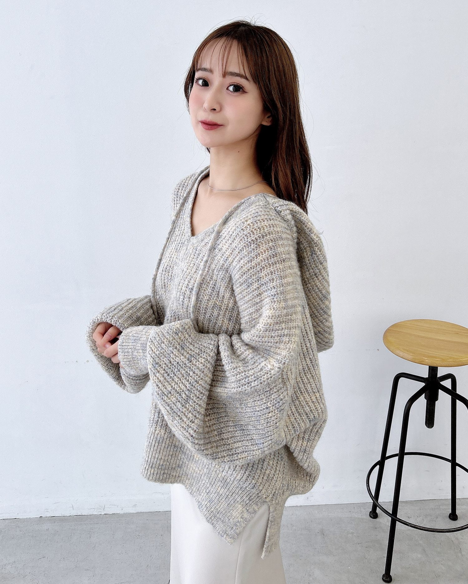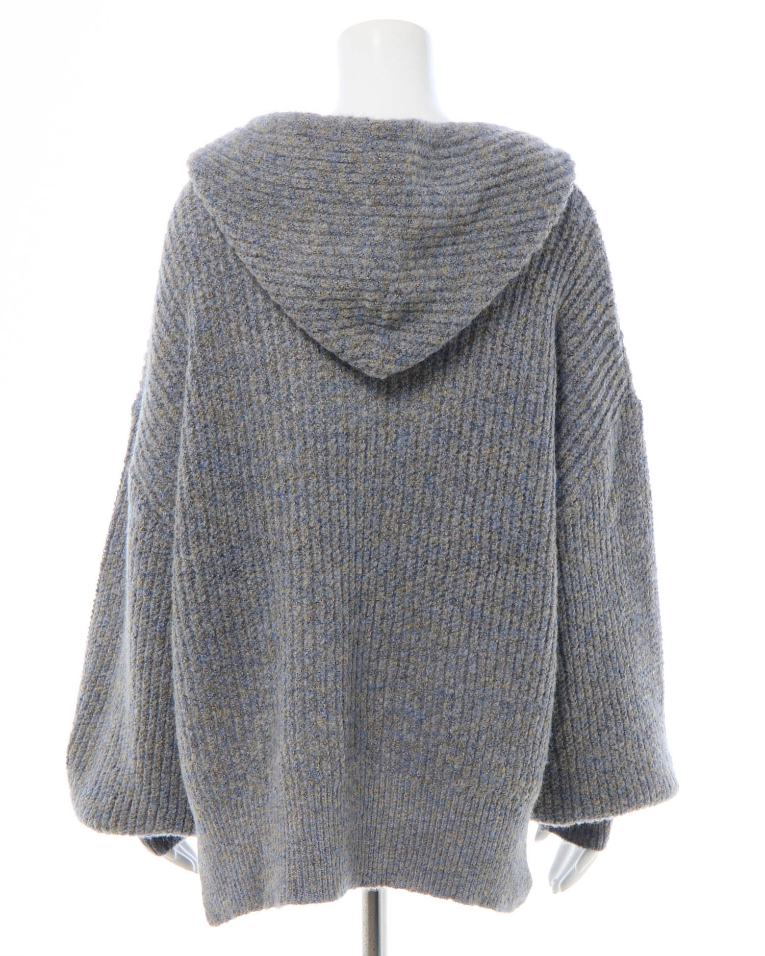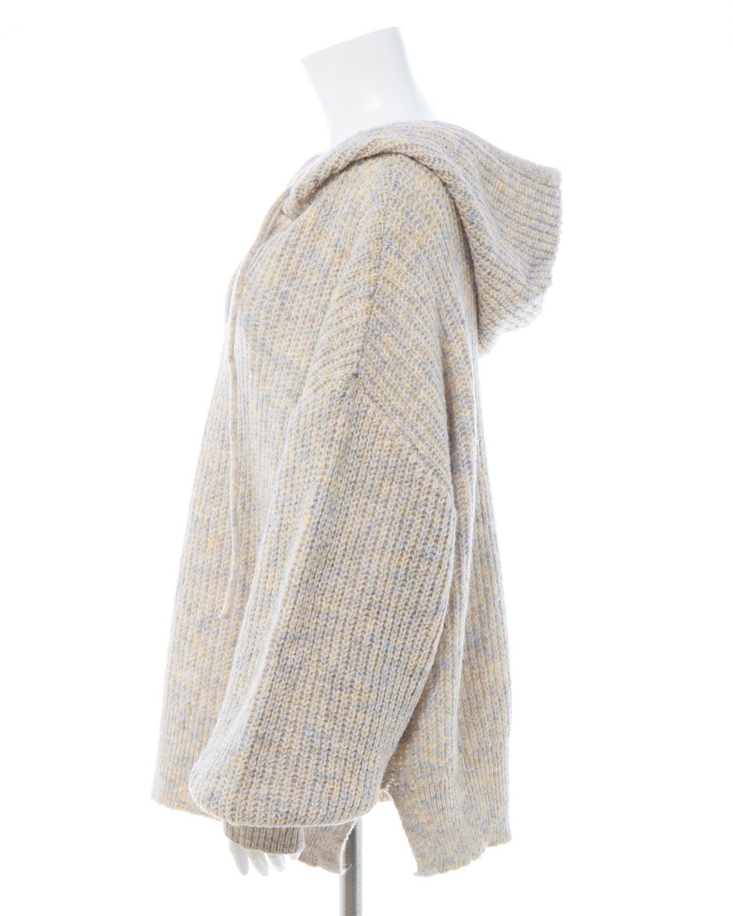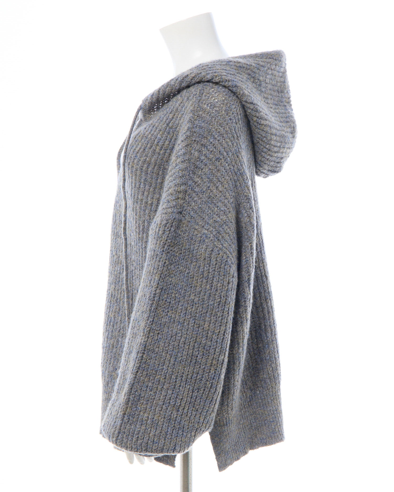 大きなフードがポイントの大人カジュアルなニットパーカーです。