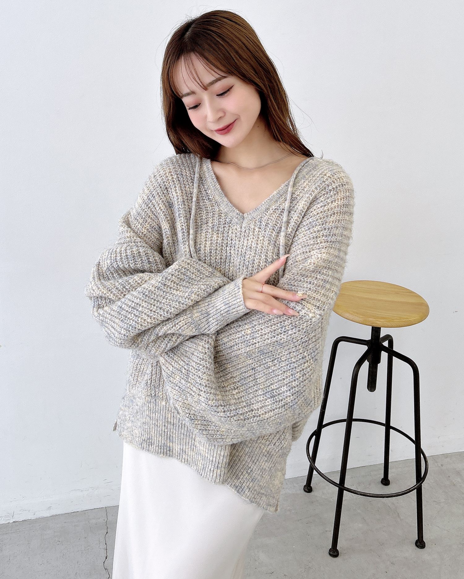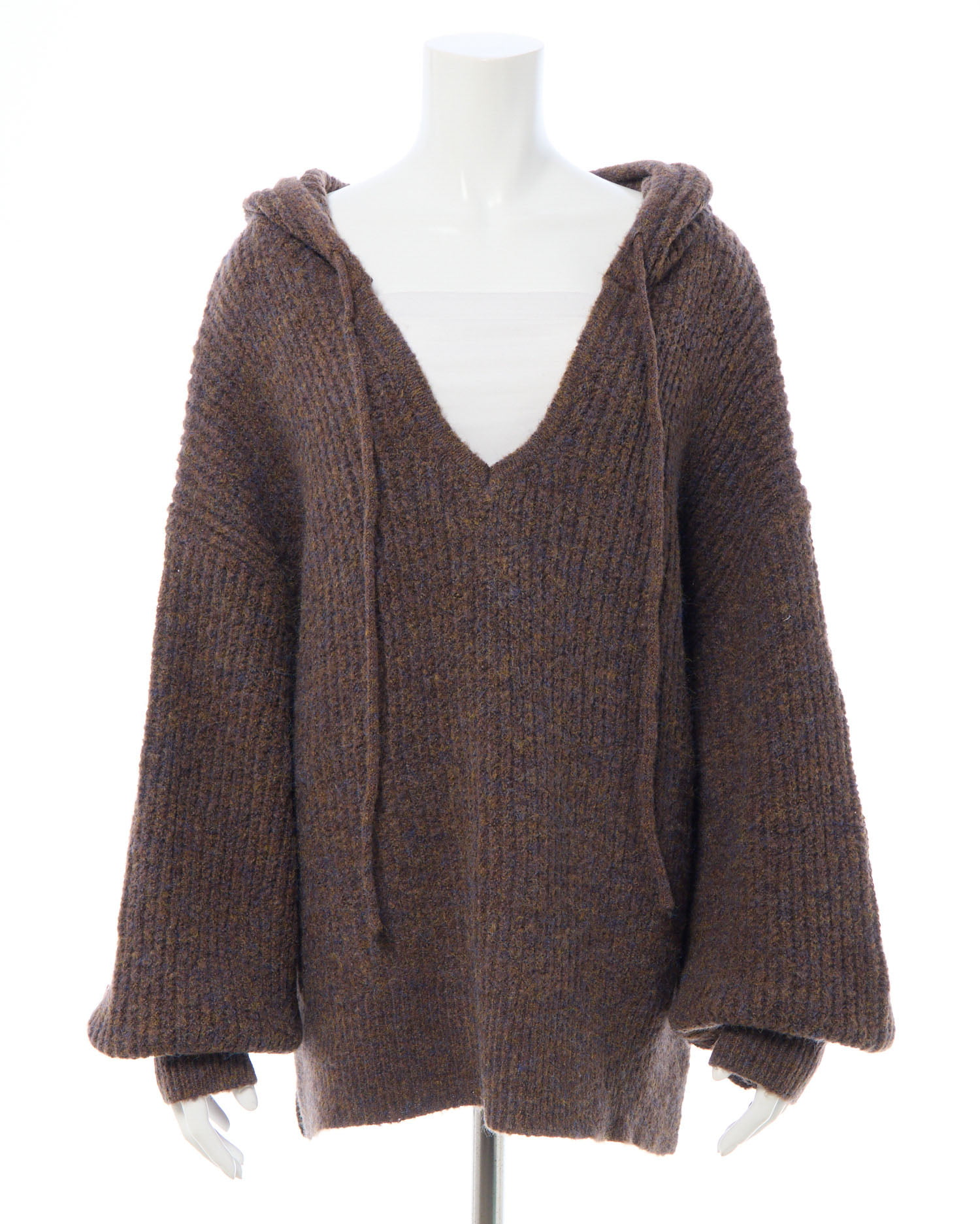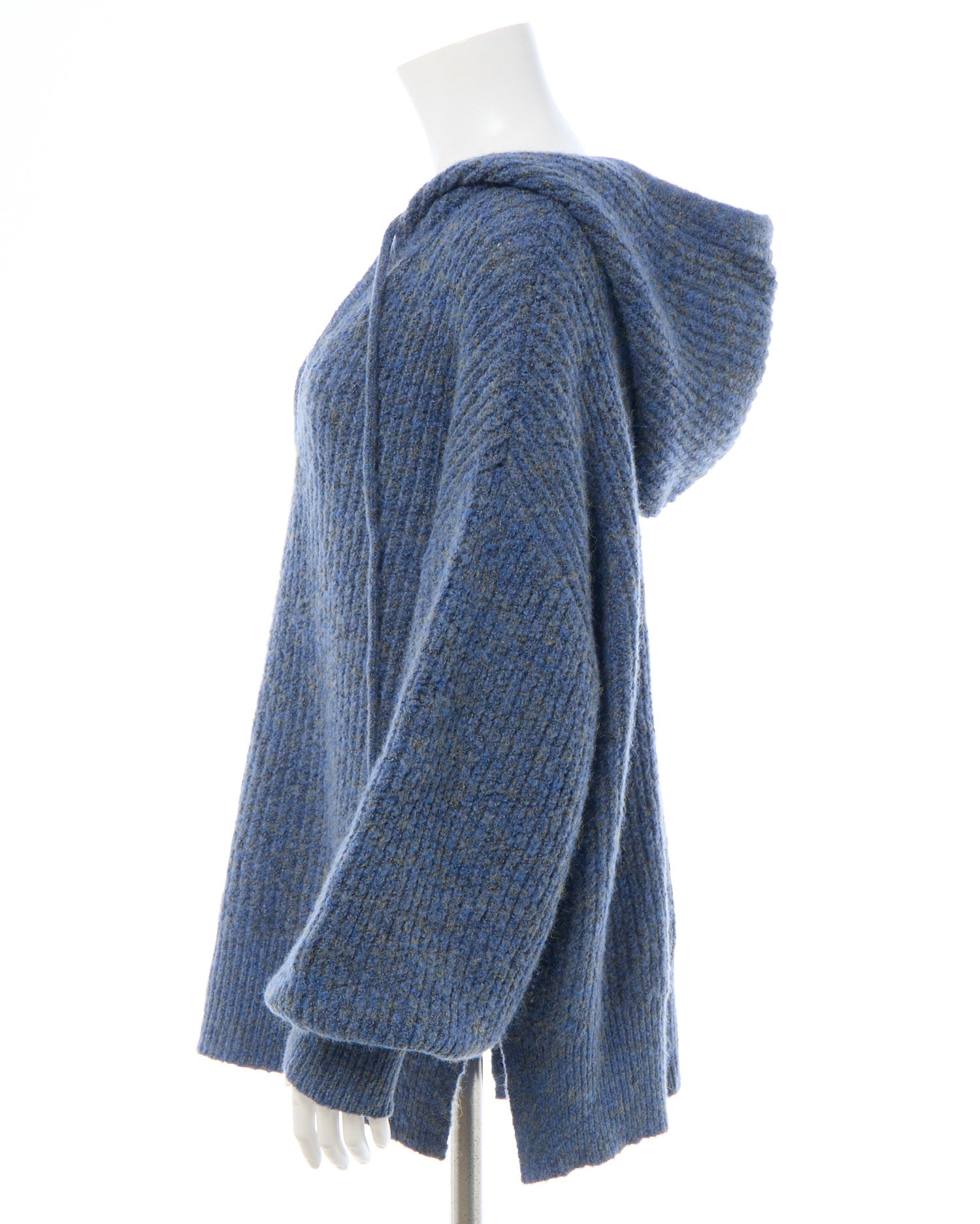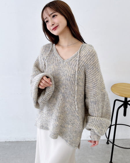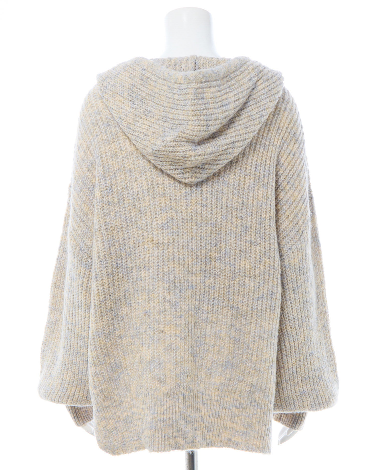 大きなフードがポイントの大人カジュアルなニットパーカーです。