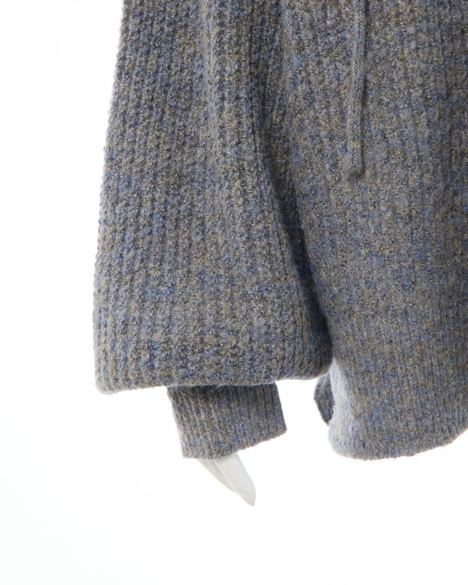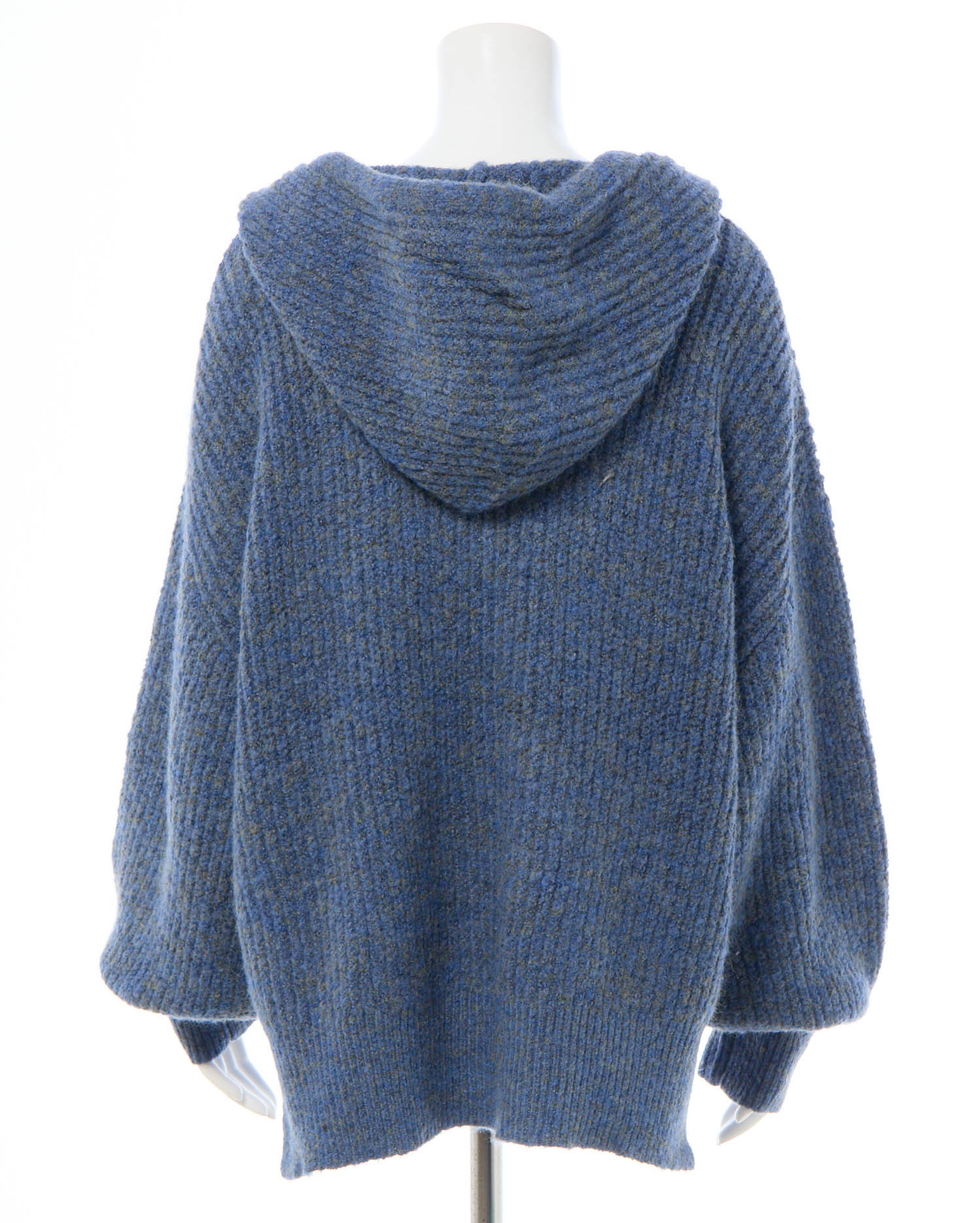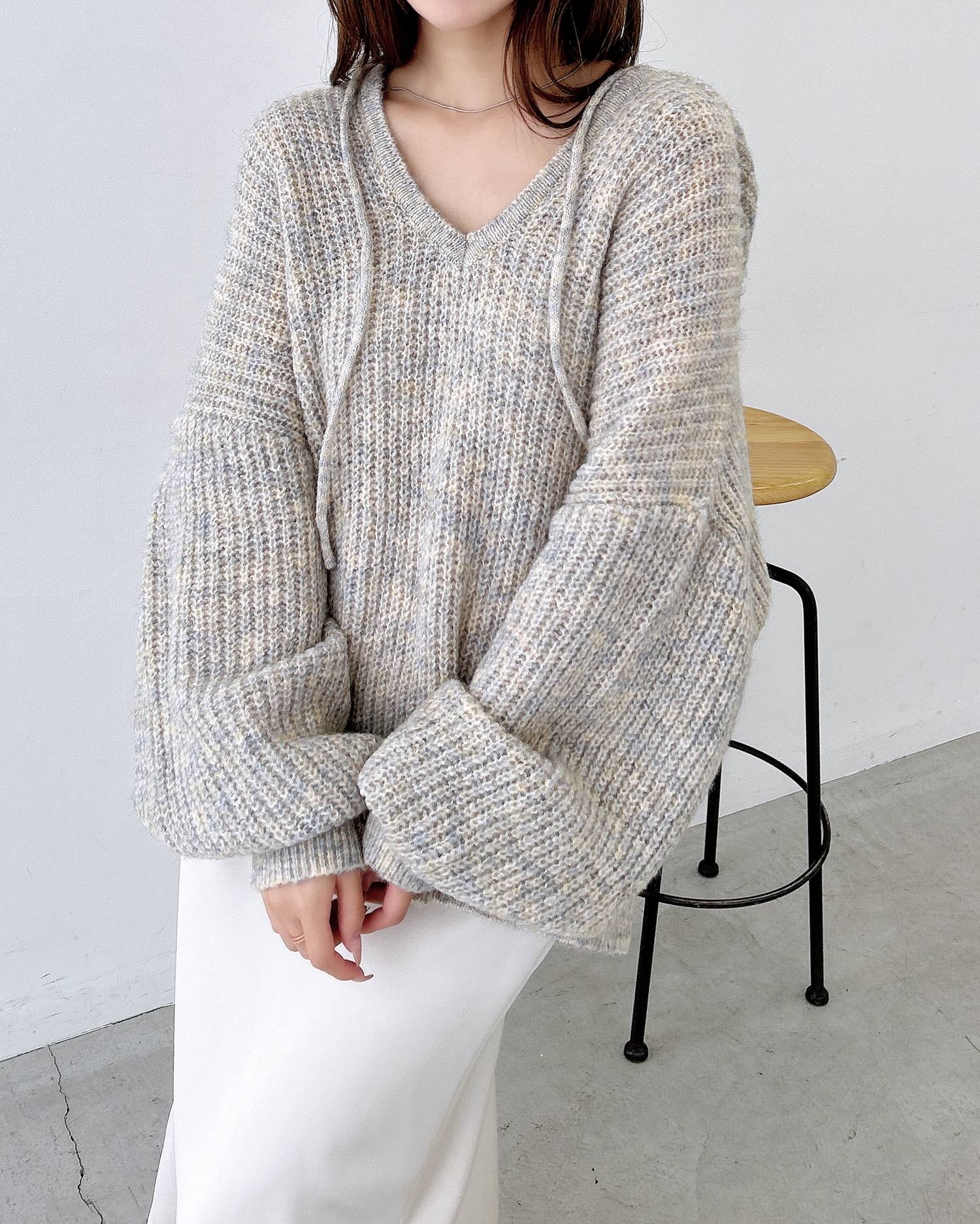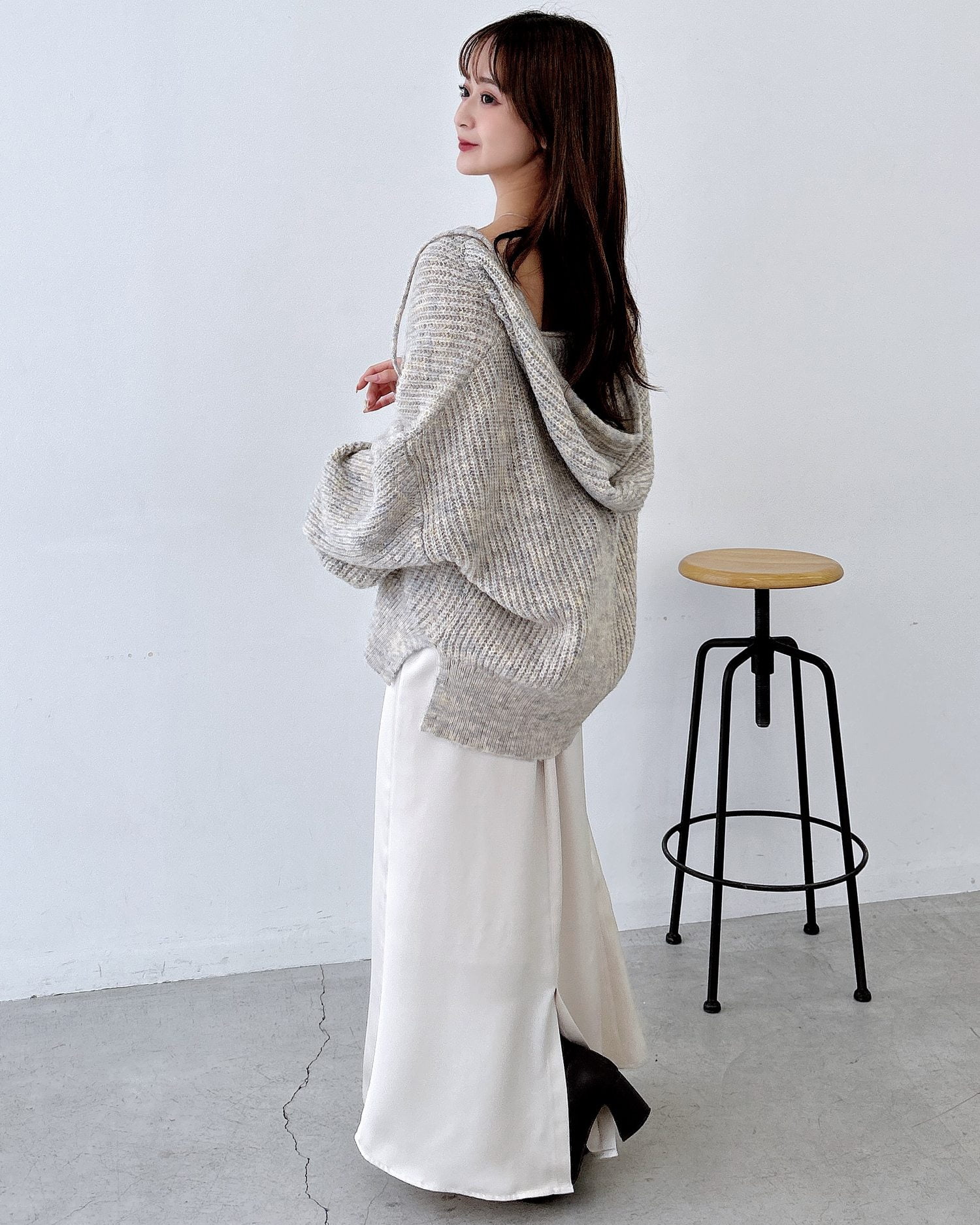 大きなフードがポイントの大人カジュアルなニットパーカーです。