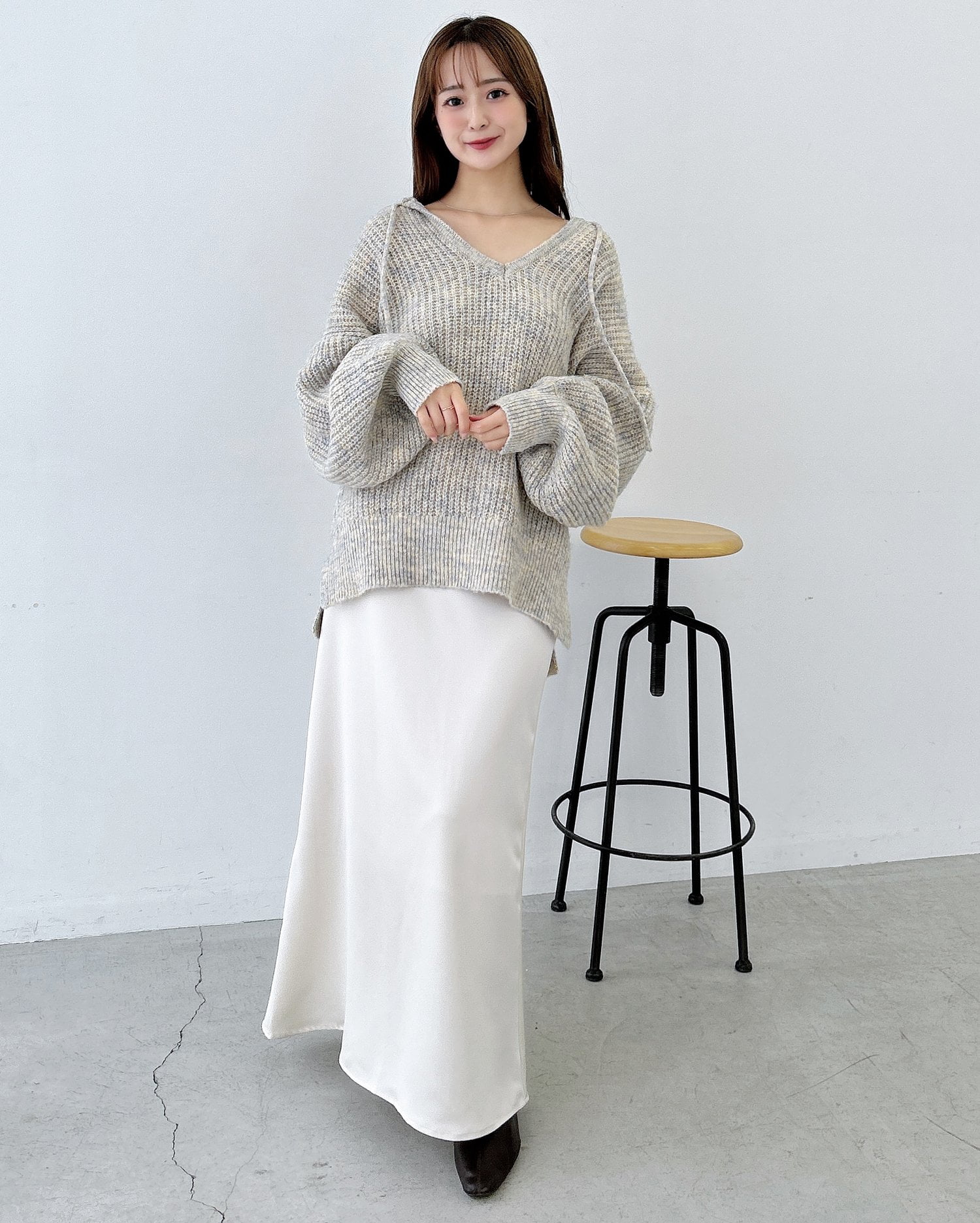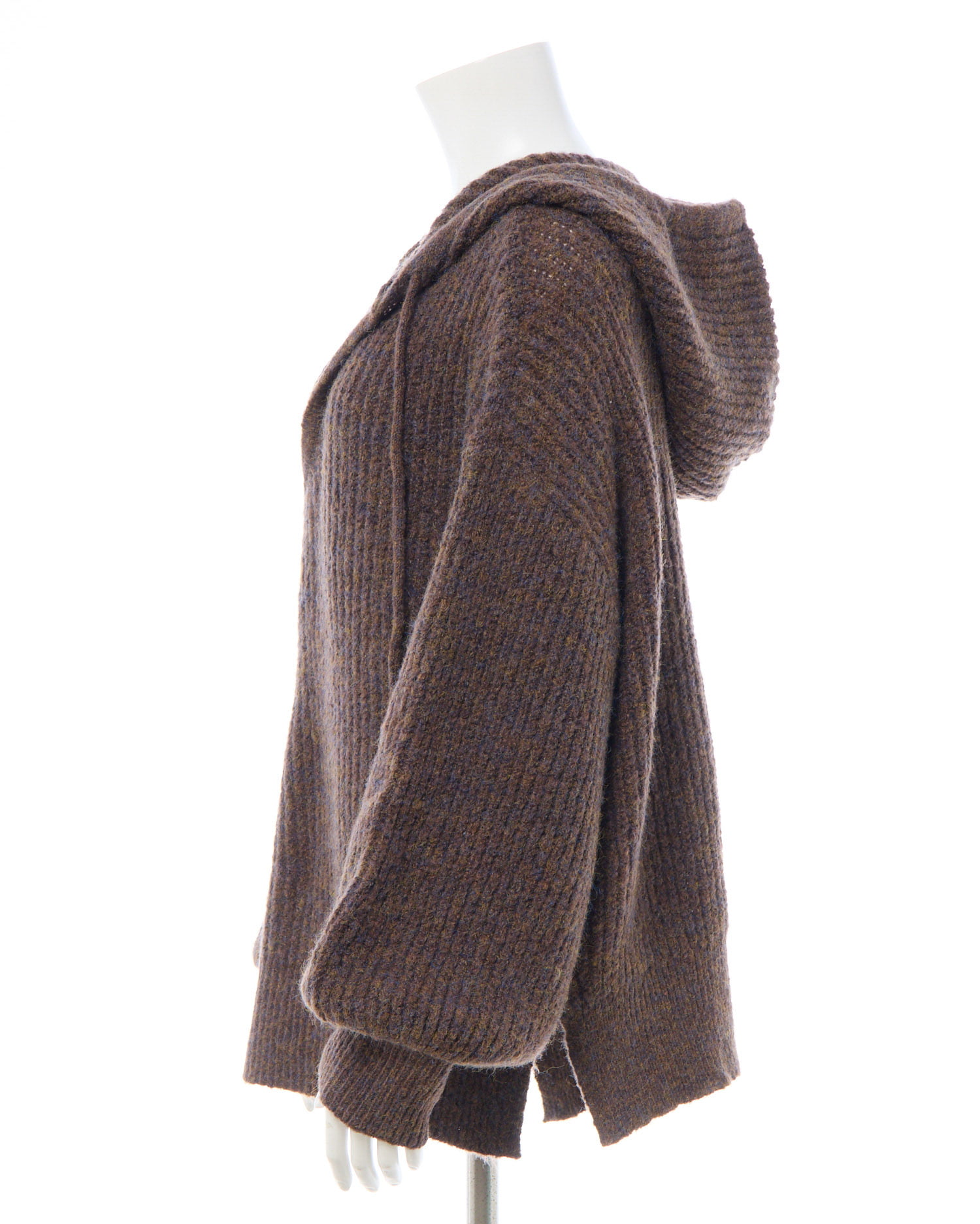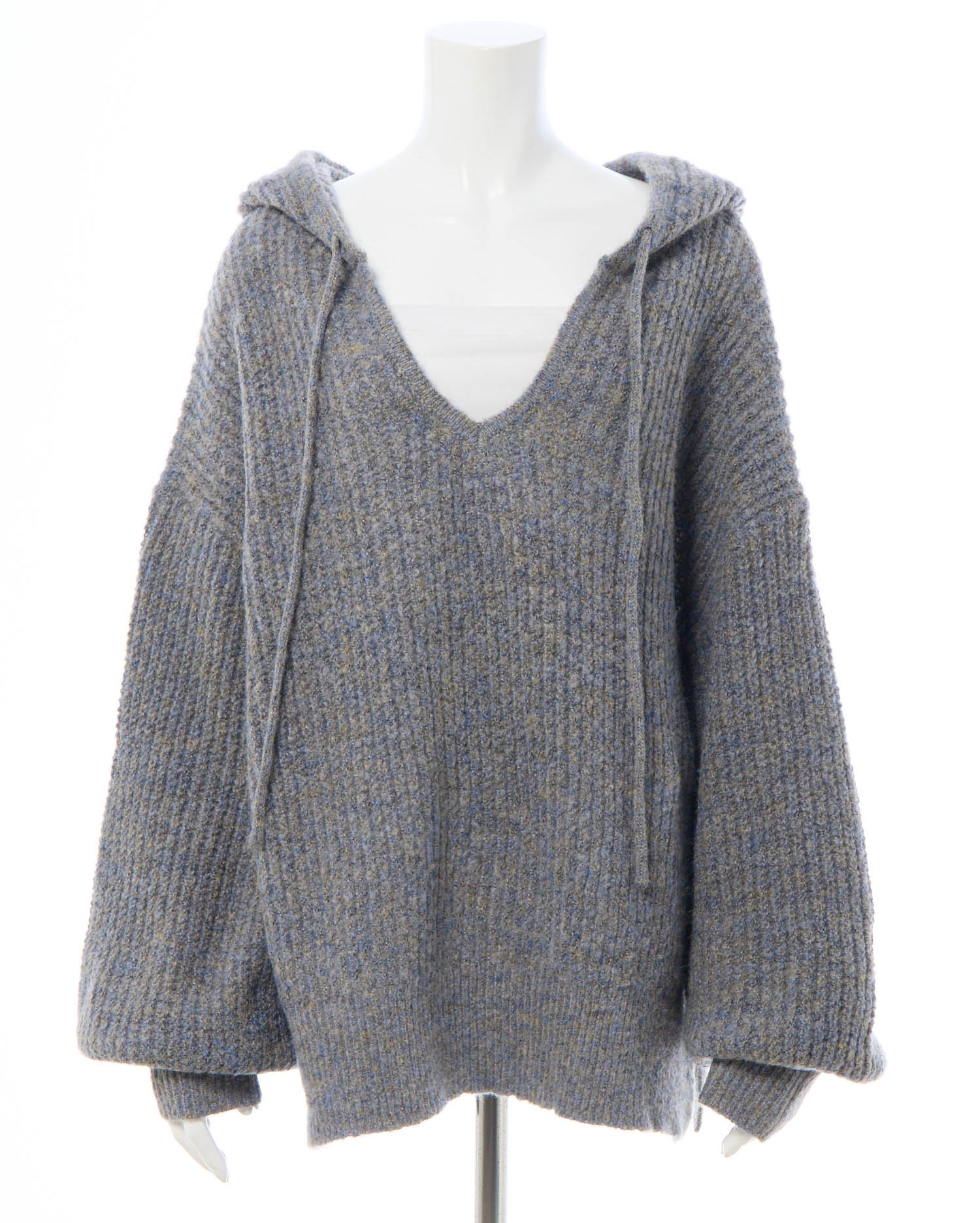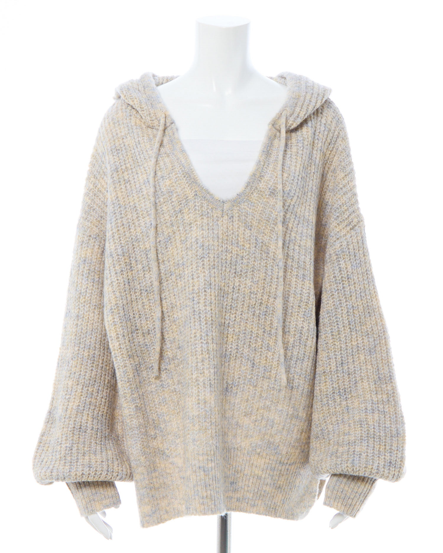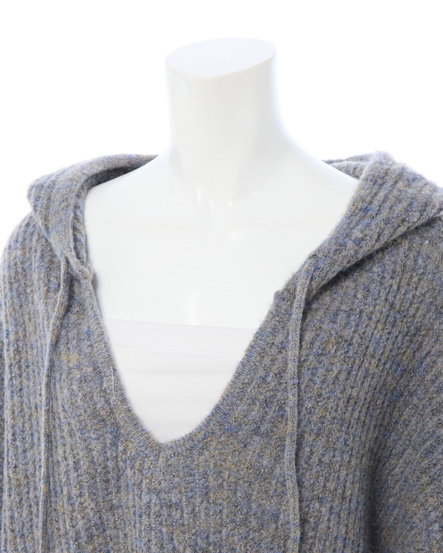 大きなフードがポイントの大人カジュアルなニットパーカーです。