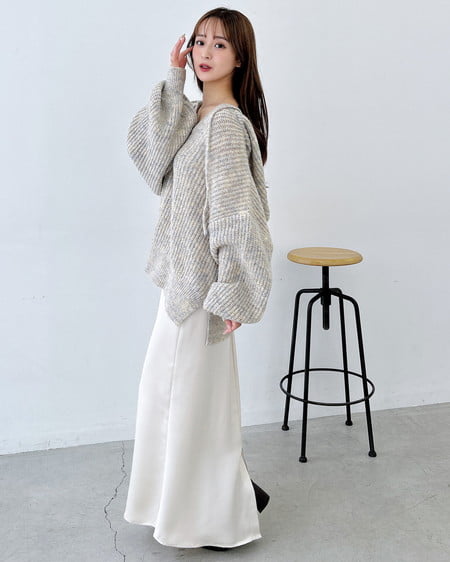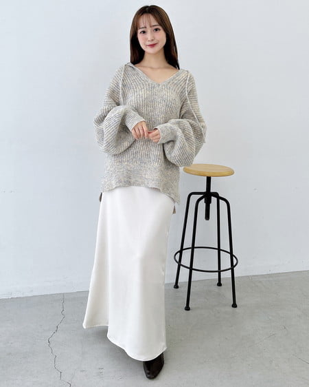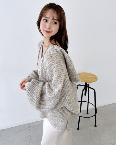 広めに開いたVネックが顔周りをすっきり見せてくれます◎