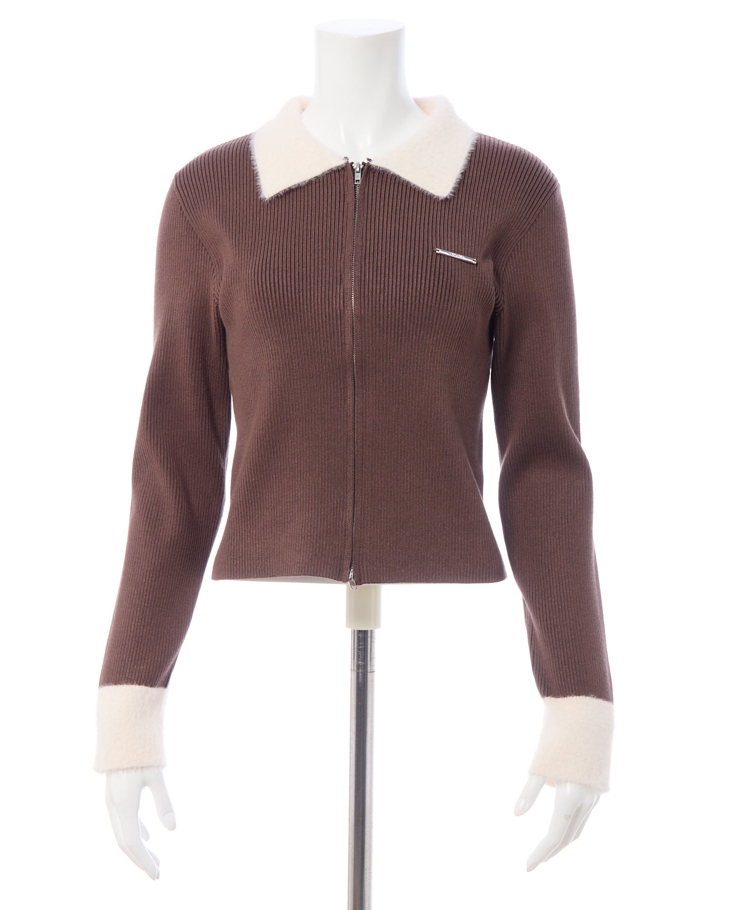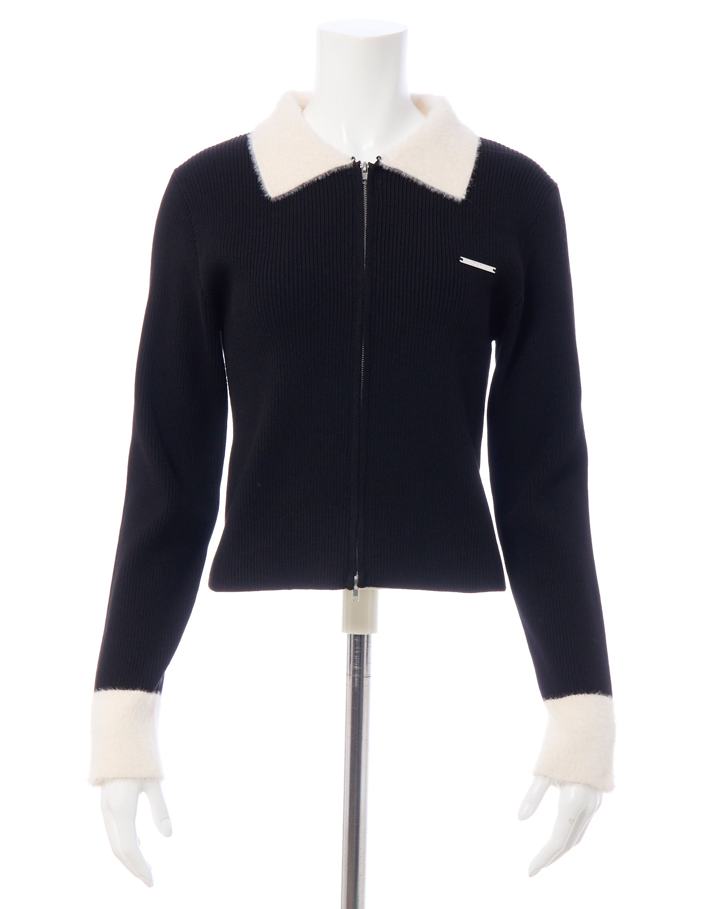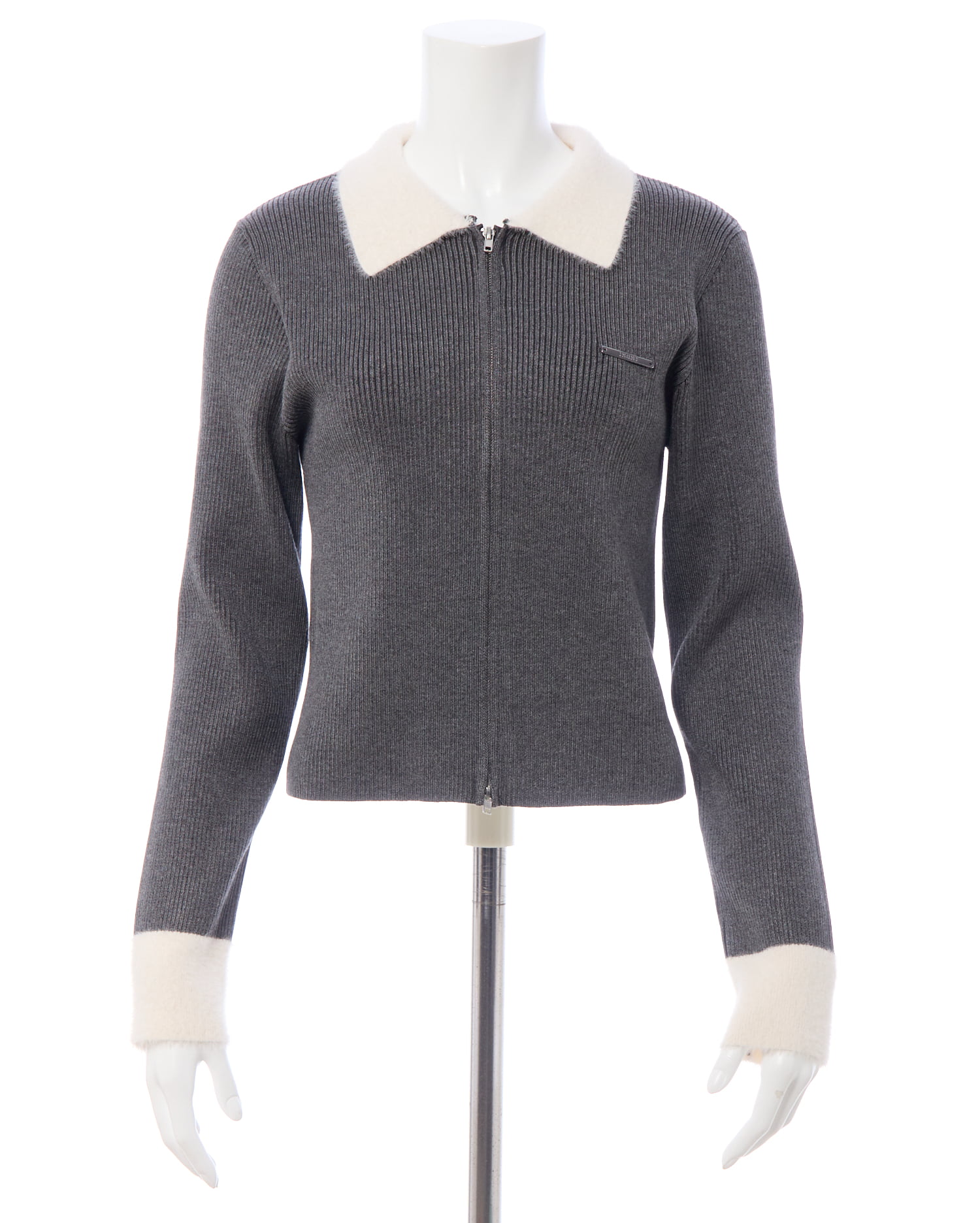【ダブルジップがトレンド感満載!フェザー襟リブニット】