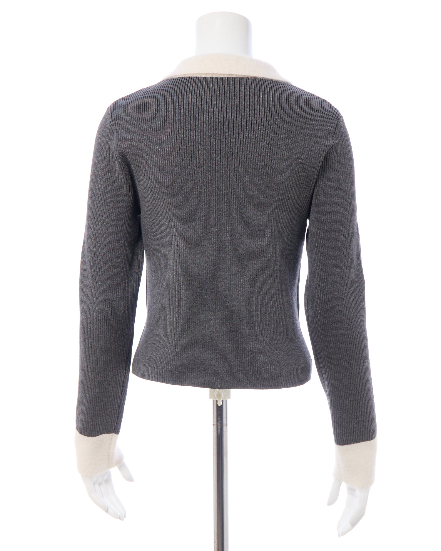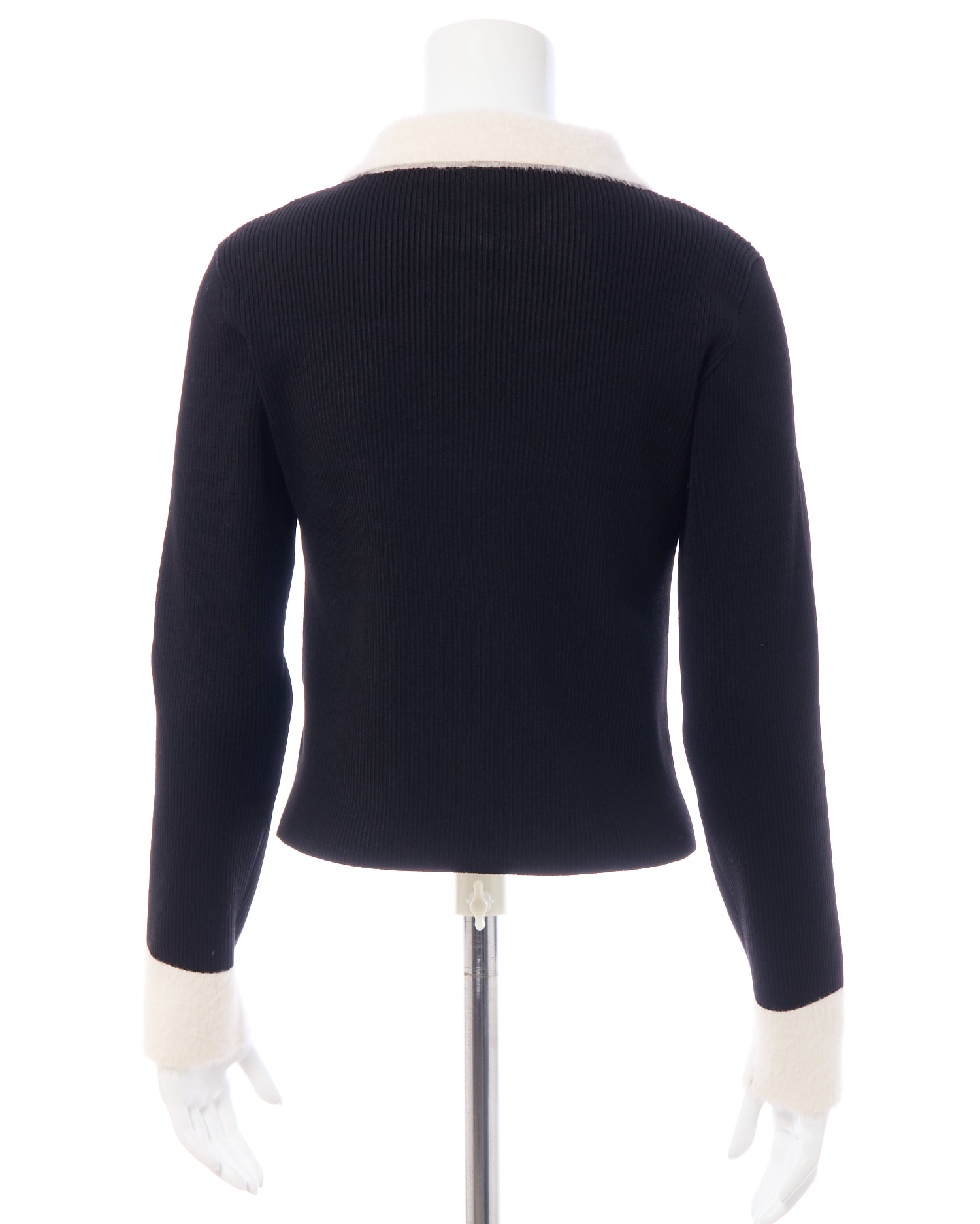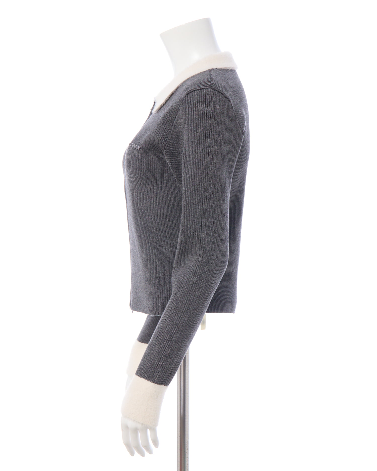 【ダブルジップがトレンド感満載!フェザー襟リブニット】