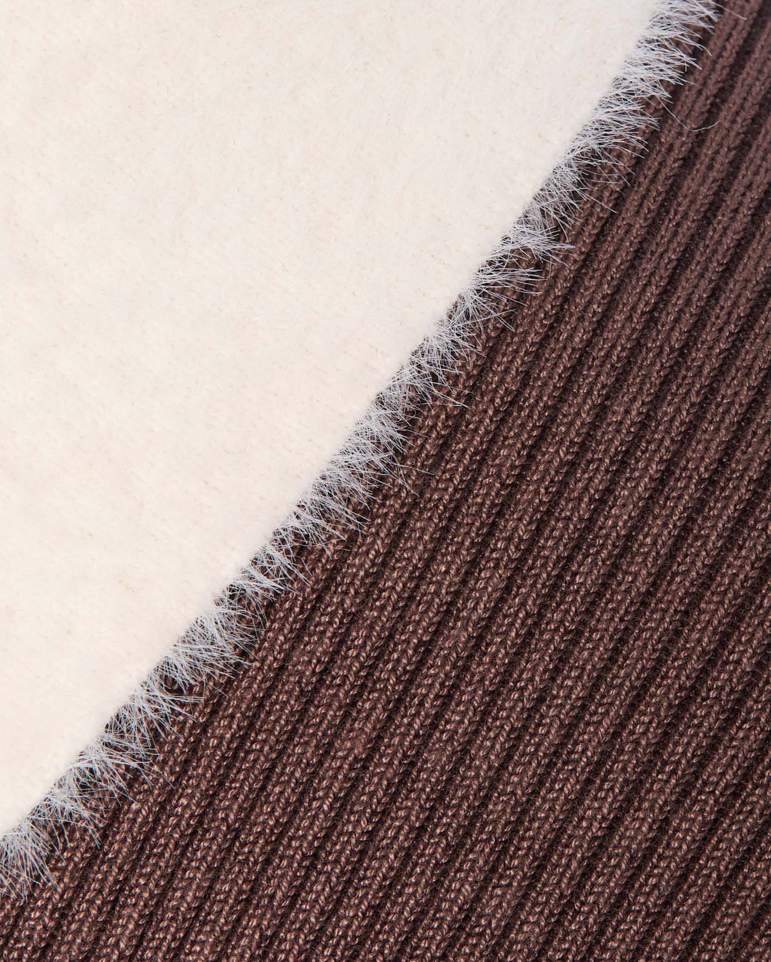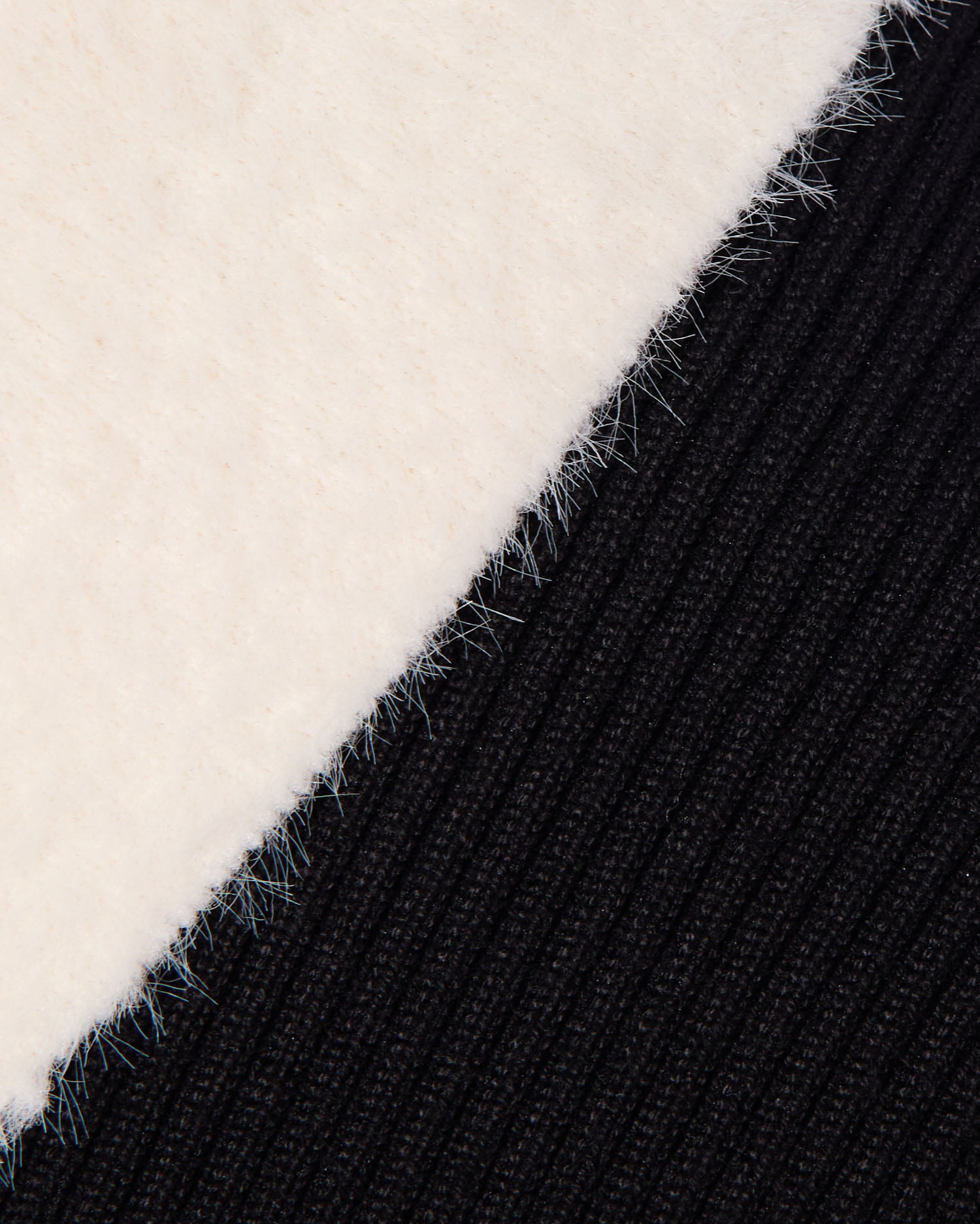 配色のフェザー襟に合わせて綺麗めにミニスカートと合わせるも良し◎