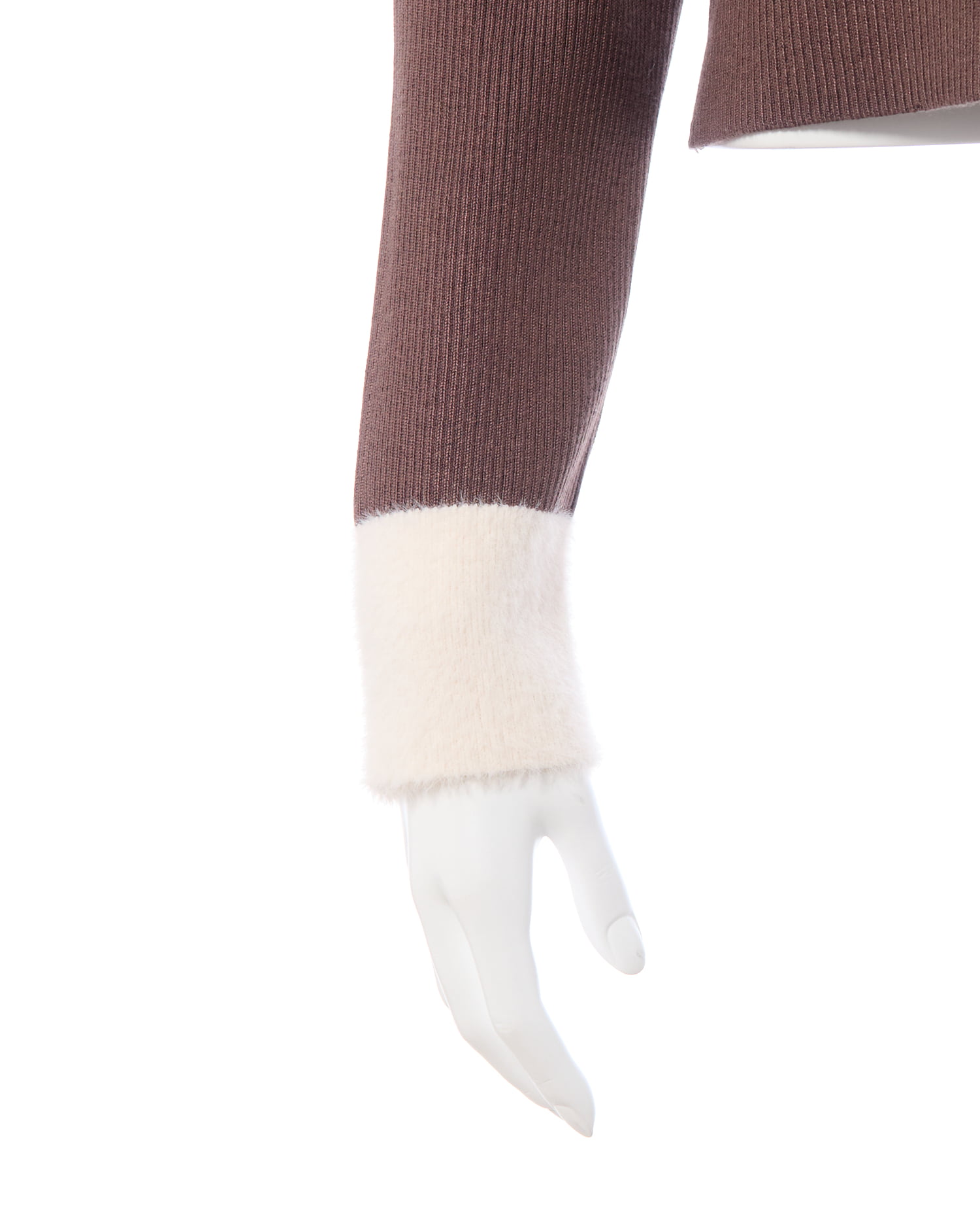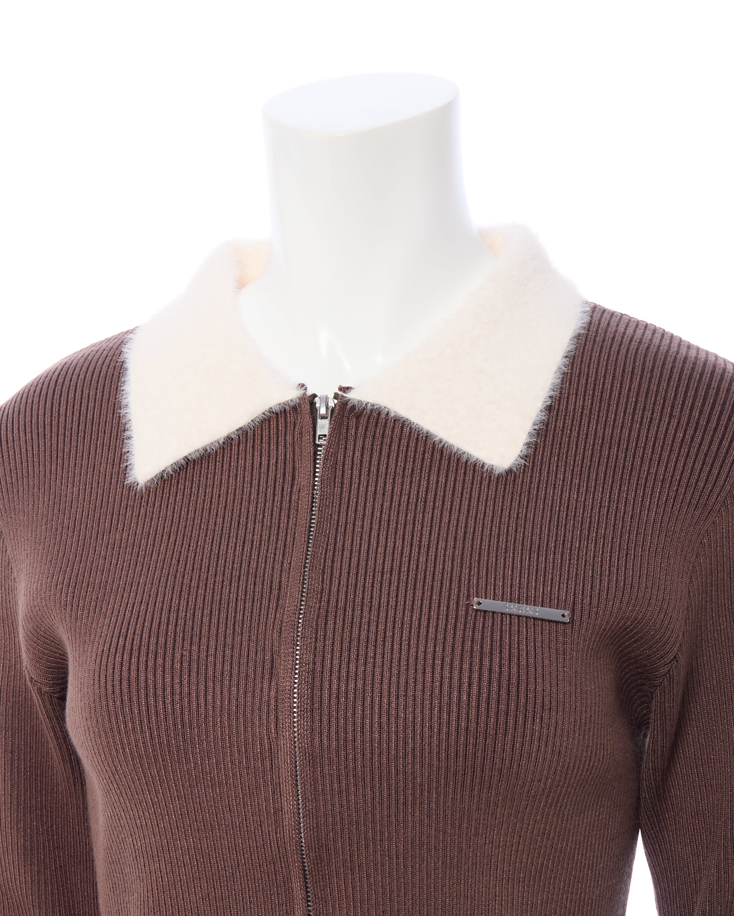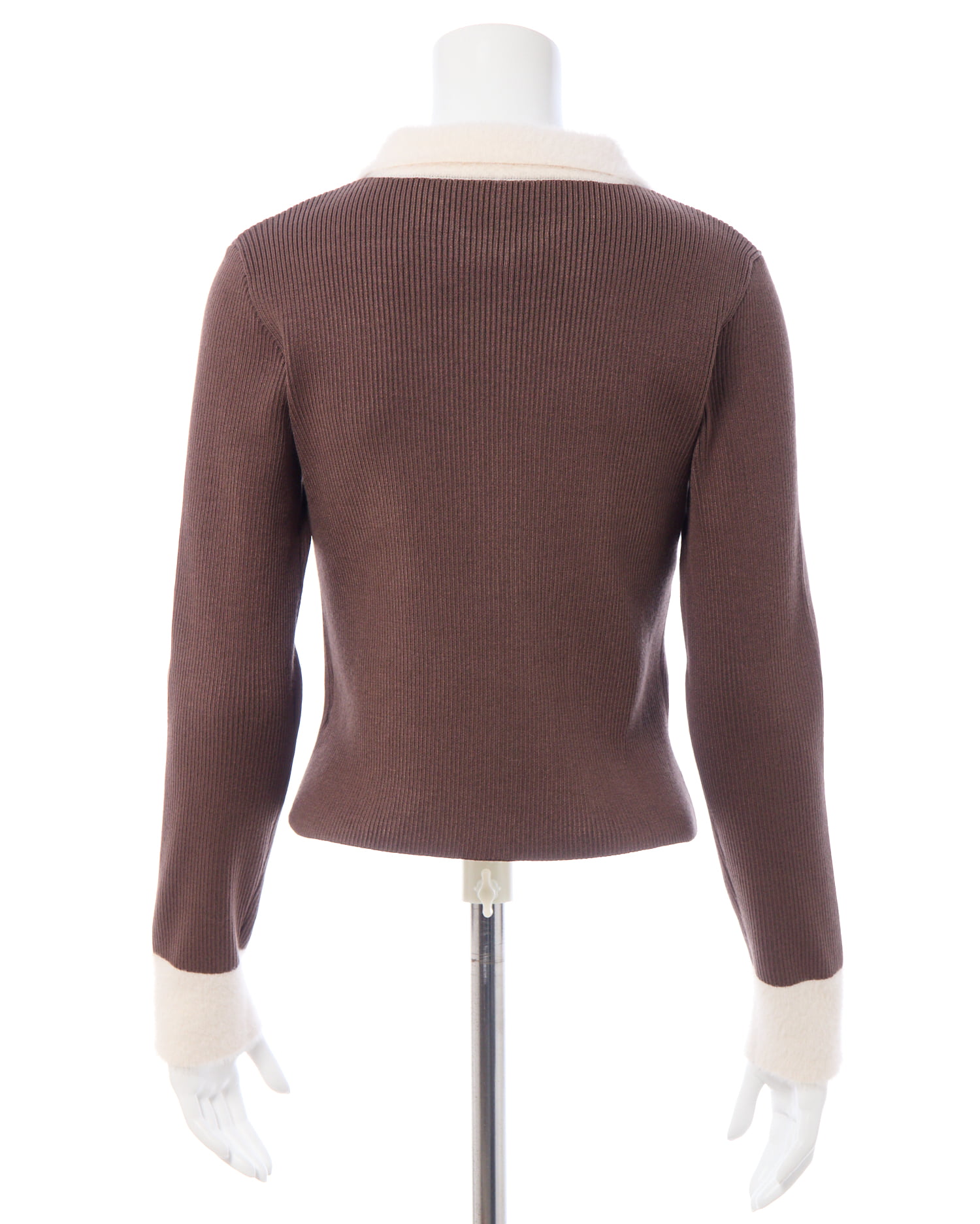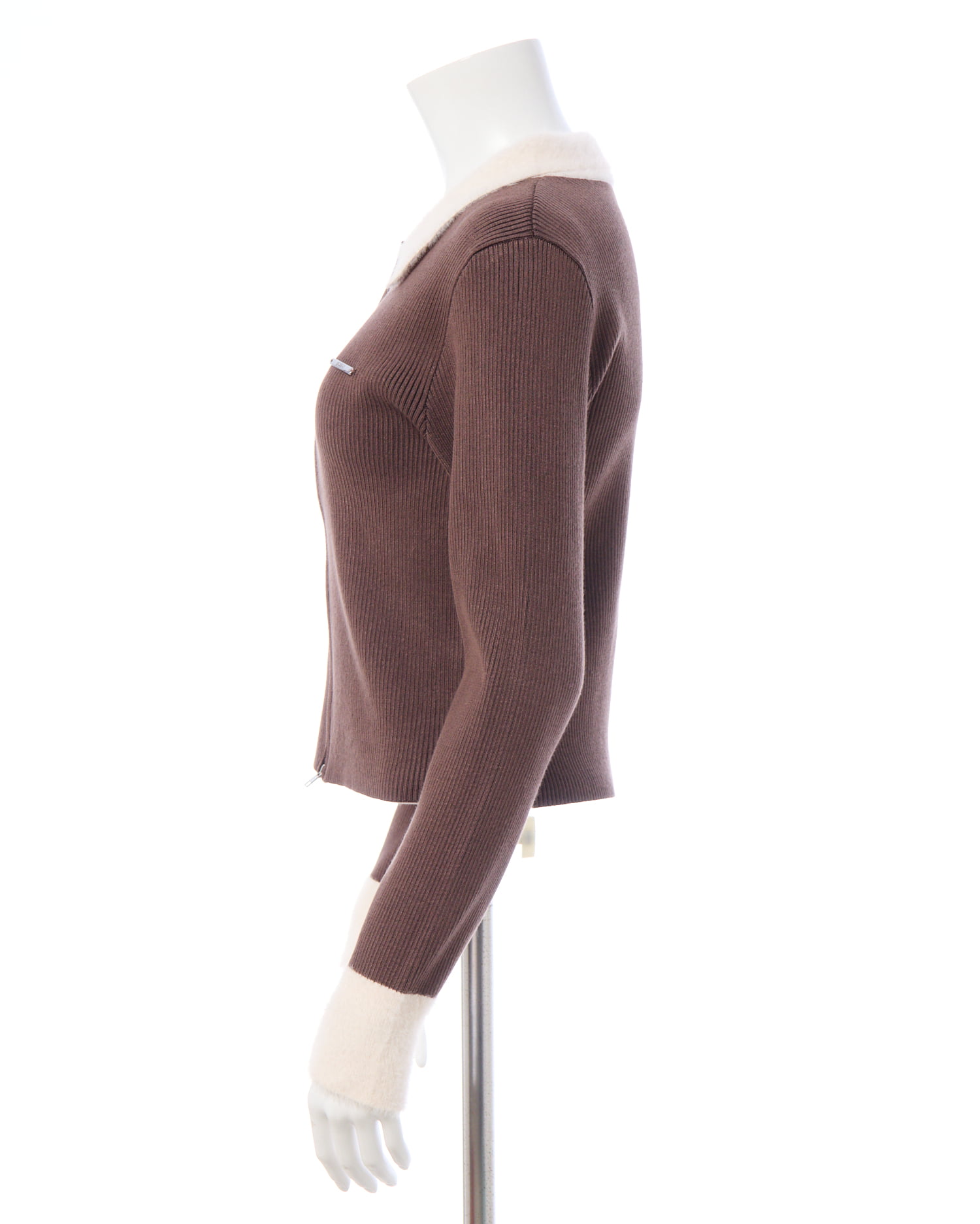 ふわふわのフェザー襟が付いたトレンドのダブルジップカーディガンが登場。