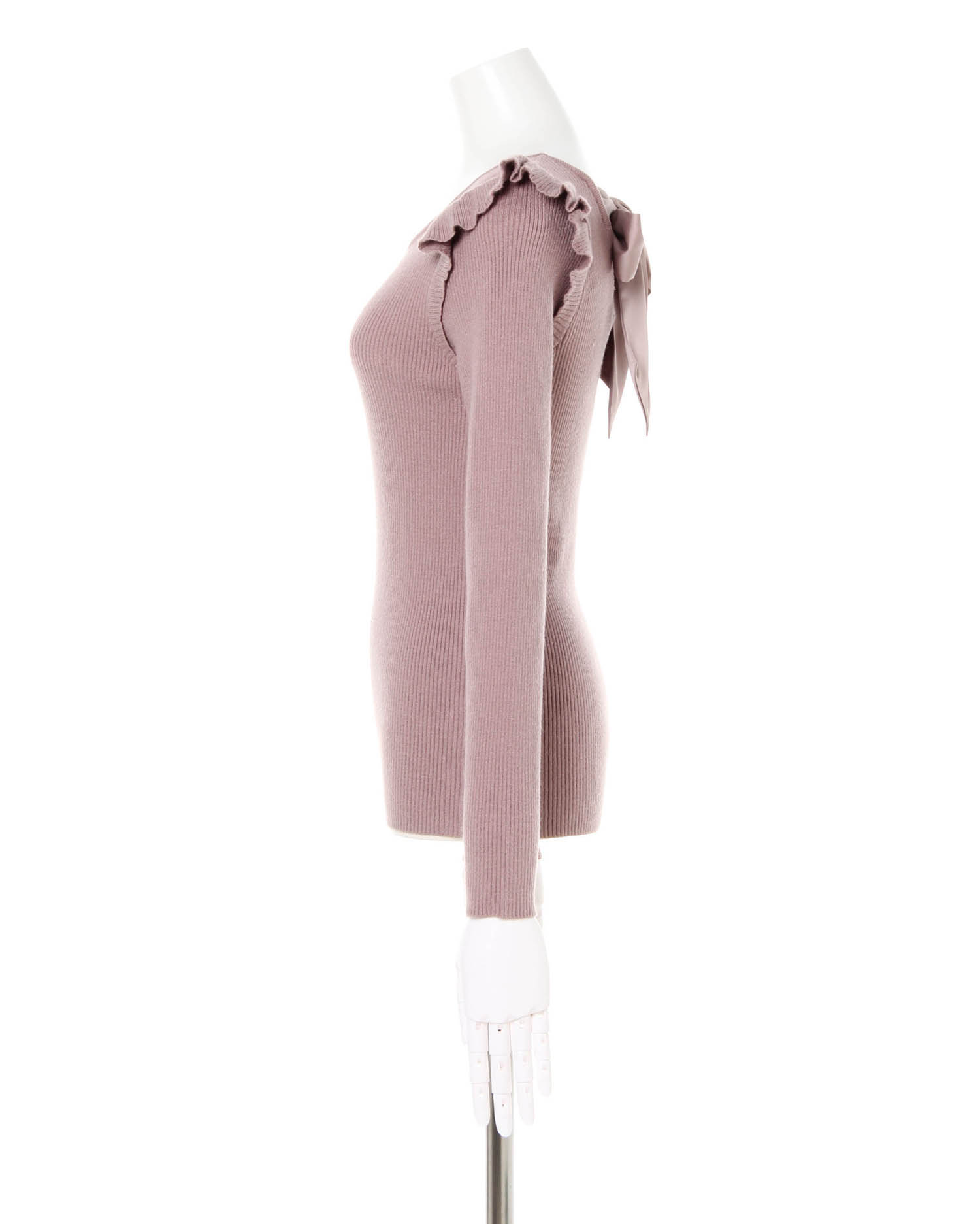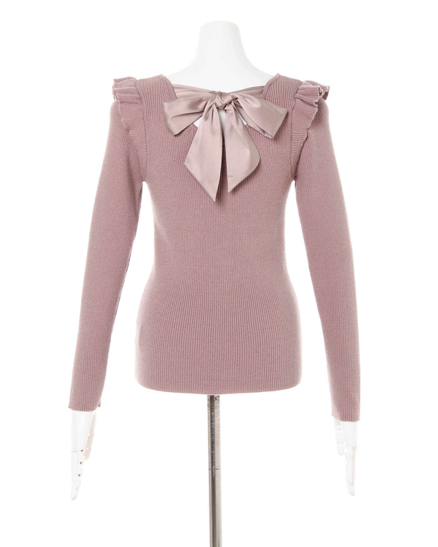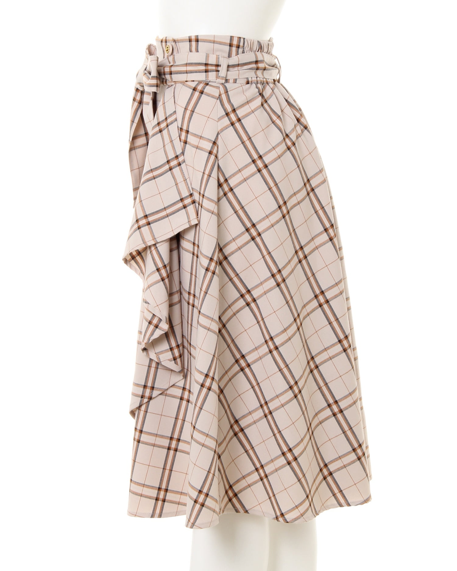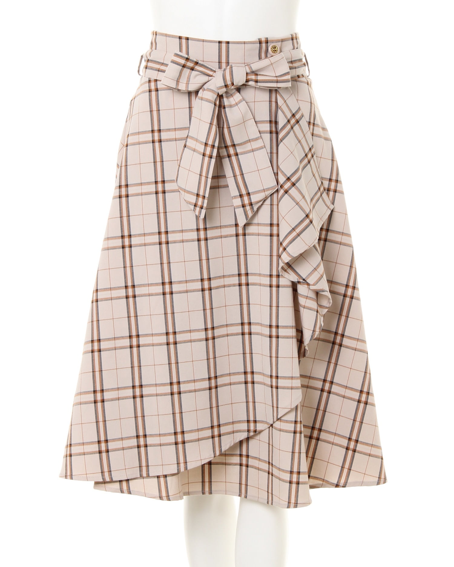 肩フリルBACKリボンニットとチェック柄ラッフルミディ/スカートのSET☆