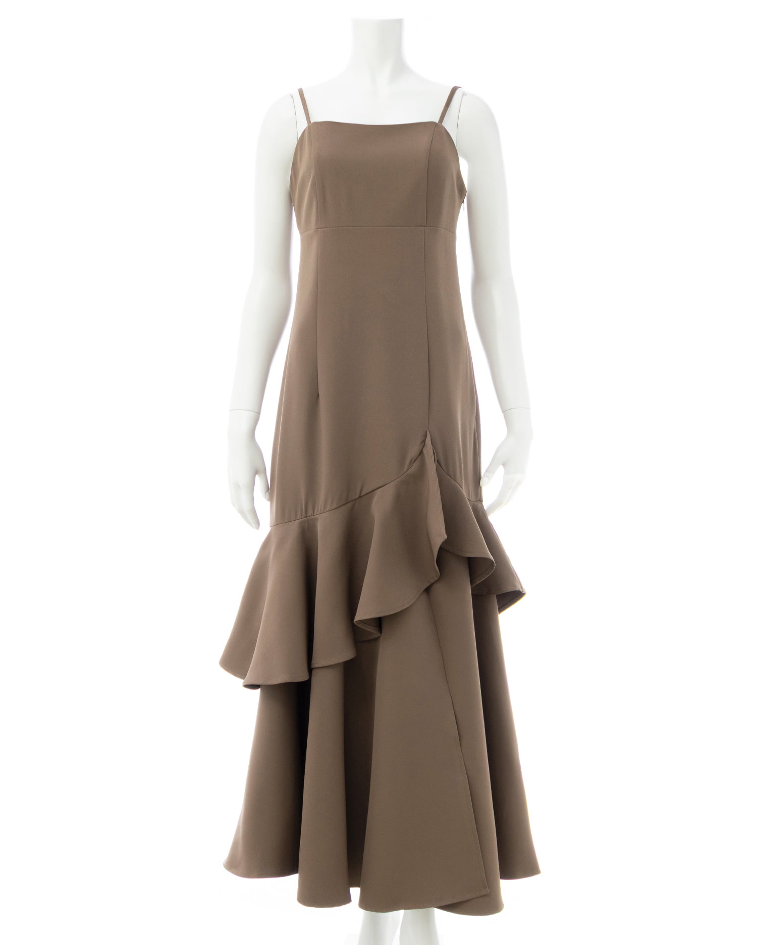 アシンメトリーのフリルがレディなキャミソールワンピース。