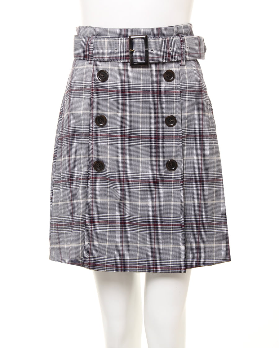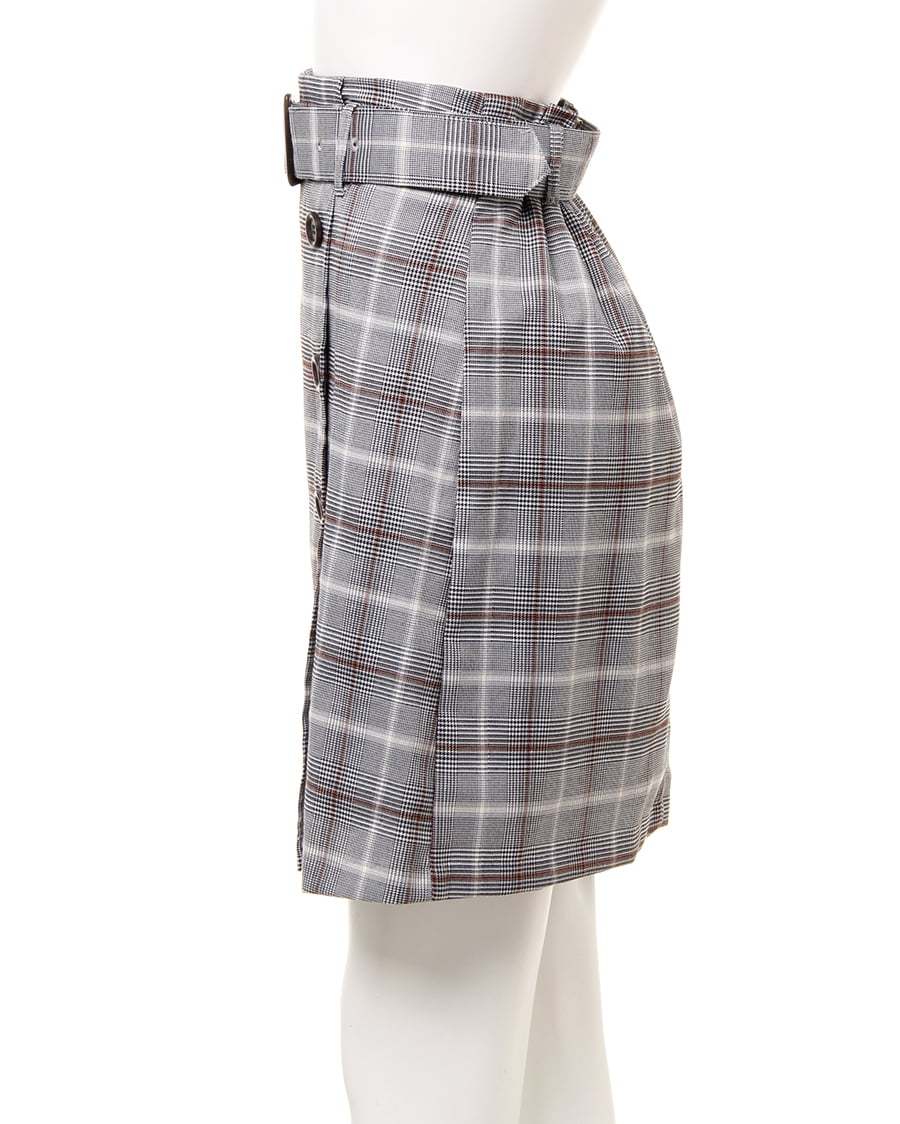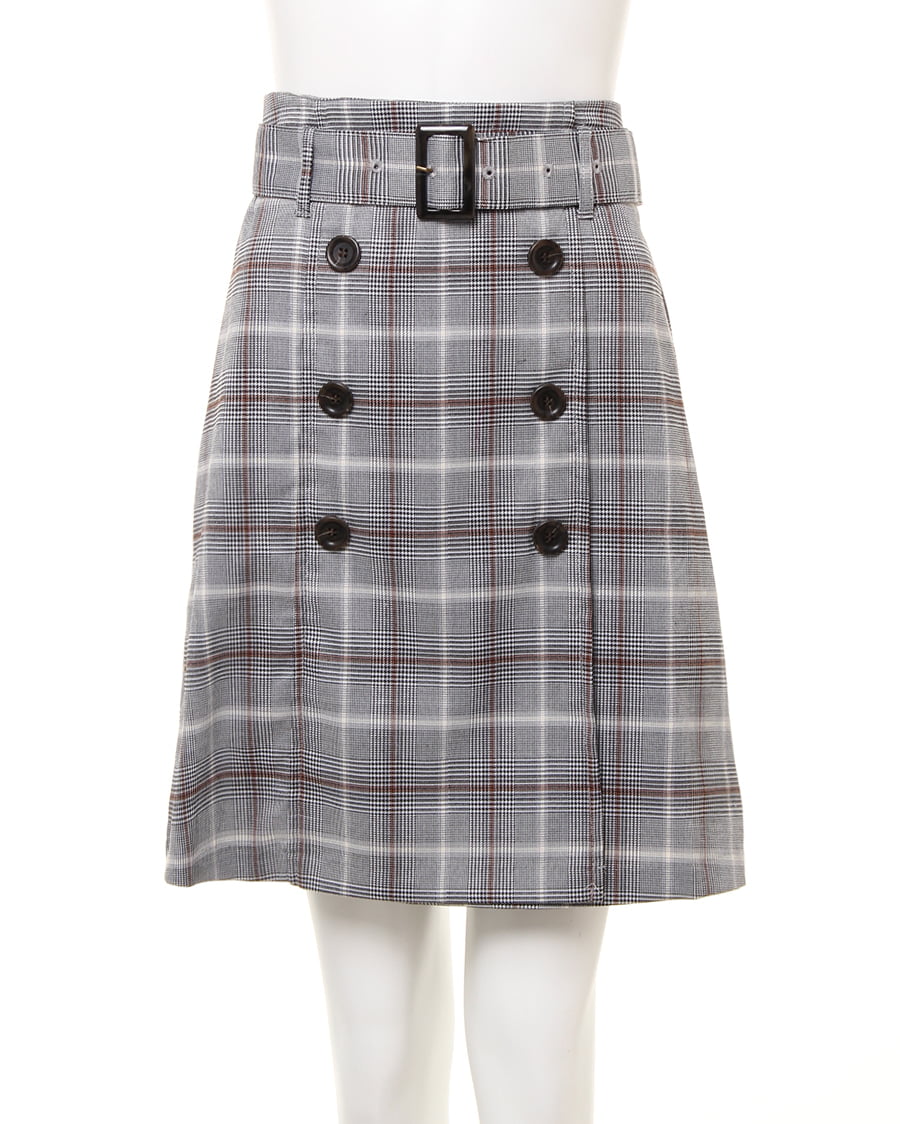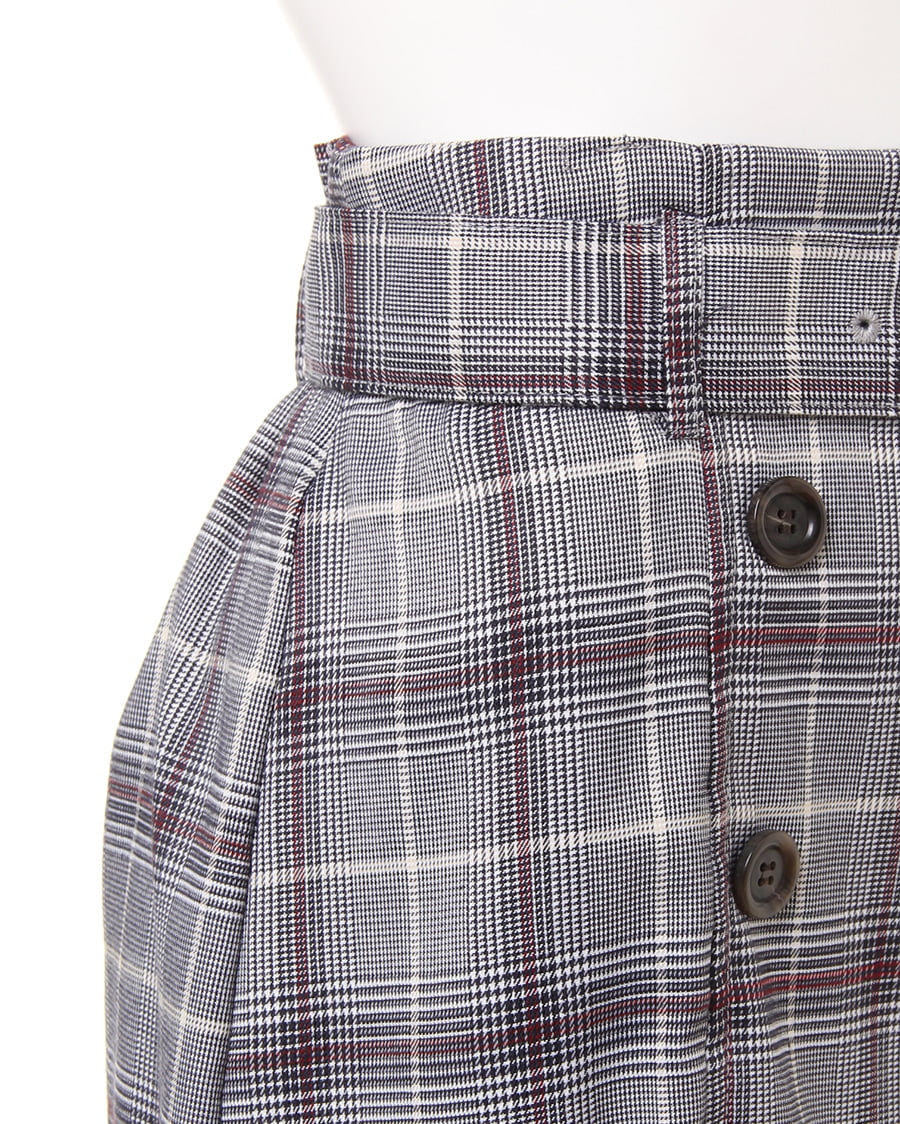 トラディショナルな印象のチェック柄のスカートは、シンプルコーデにプラスするだけで今年らしいスタイルにブラッシュアップしてくれる存在感のある1枚。フロントのボタンやスクエアのバックルが、どこか懐かしい雰囲気をあおります。さらっとした肌触りがこれからの季節にぴったり。裾に向かって広がる台形シルエットは、穿くだけでスタイルアップ効果向上。スタイリングの幅が広がる優秀アイテムです。【セット内容】スカート、ベルト