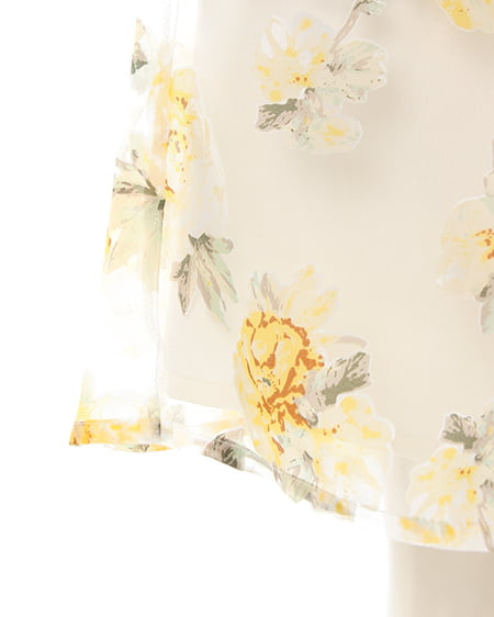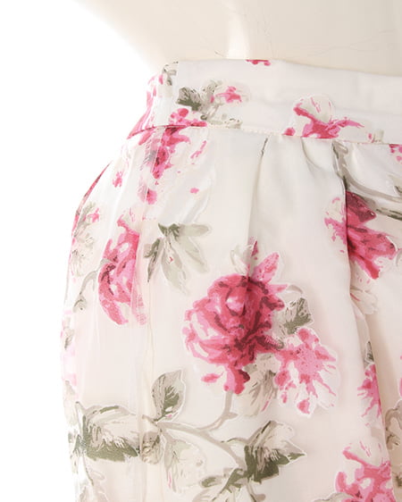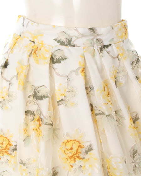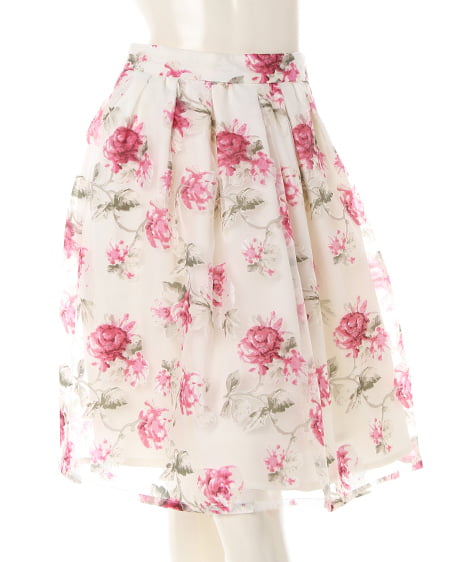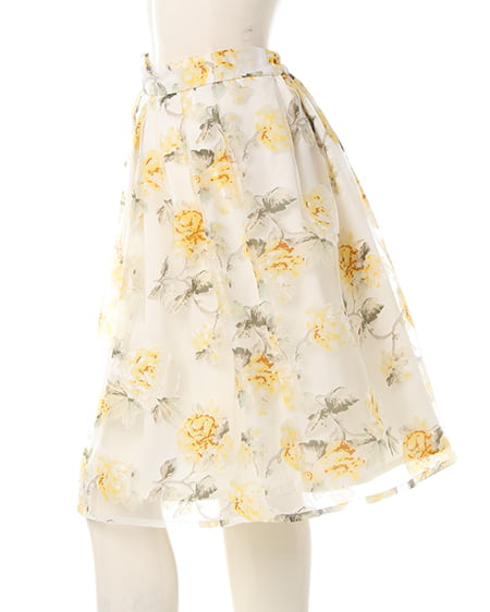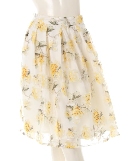 春にピッタリなフェミニンな一着。ふわっとしたフレアシルエットが女性らしい花柄スカートは素材感がポイント。透け感のあるオーガンジー素材を使用し軽やかな印象に仕上げています。バックファスナー付きで着脱もしやすくデイリーに最適です。薄手のニットやシフォンブラウスと合わせれば華やかで季節先取りなスタイルが完成します。