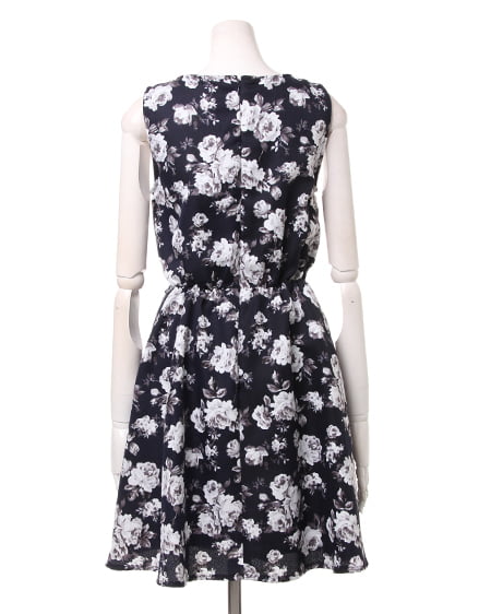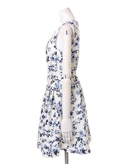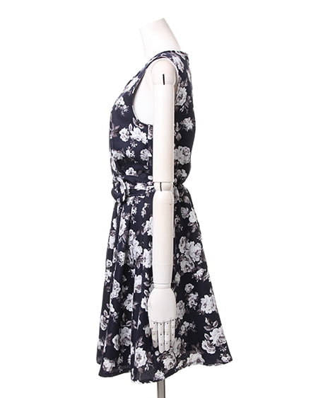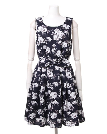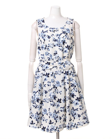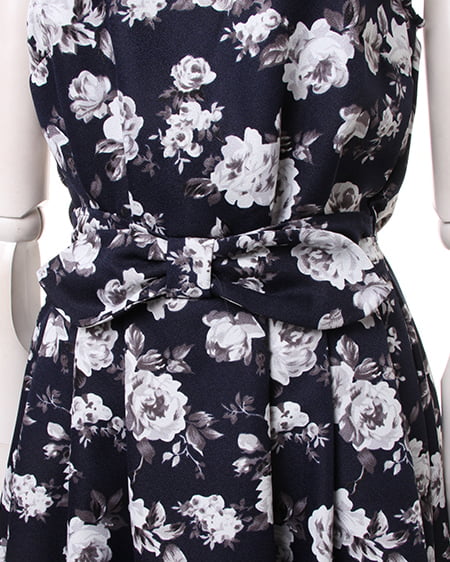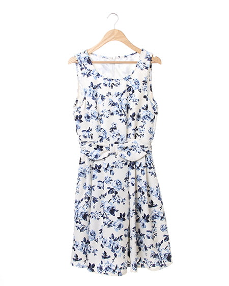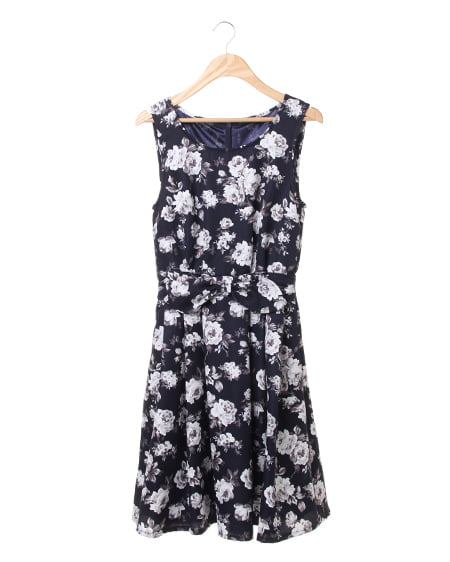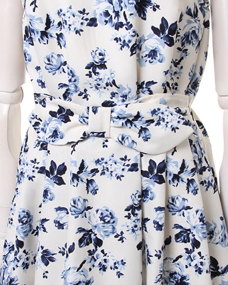 【 1151-580264 ウエストリボン花柄/ワンピース】