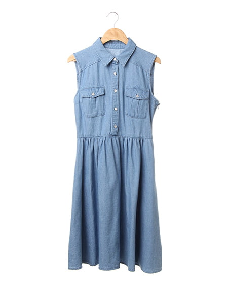 女の子シルエットに仕上げたカジュアルな一着。風合いのいいデニム素材を用いたノースリーブのシャツワンピはガーリーな着こなしに最適。ウエスタンライクなショルダーヨークやスナップボタンなどダンガリーシャツのデザインはそのままに、フェミニンなフォルムで女性らしさをプラスしました。一枚ではもちろん、カーディガンとのレイヤードもオススメ。レギュラーより長めの着丈で落ち着き感のあるスタイルを演出できます。